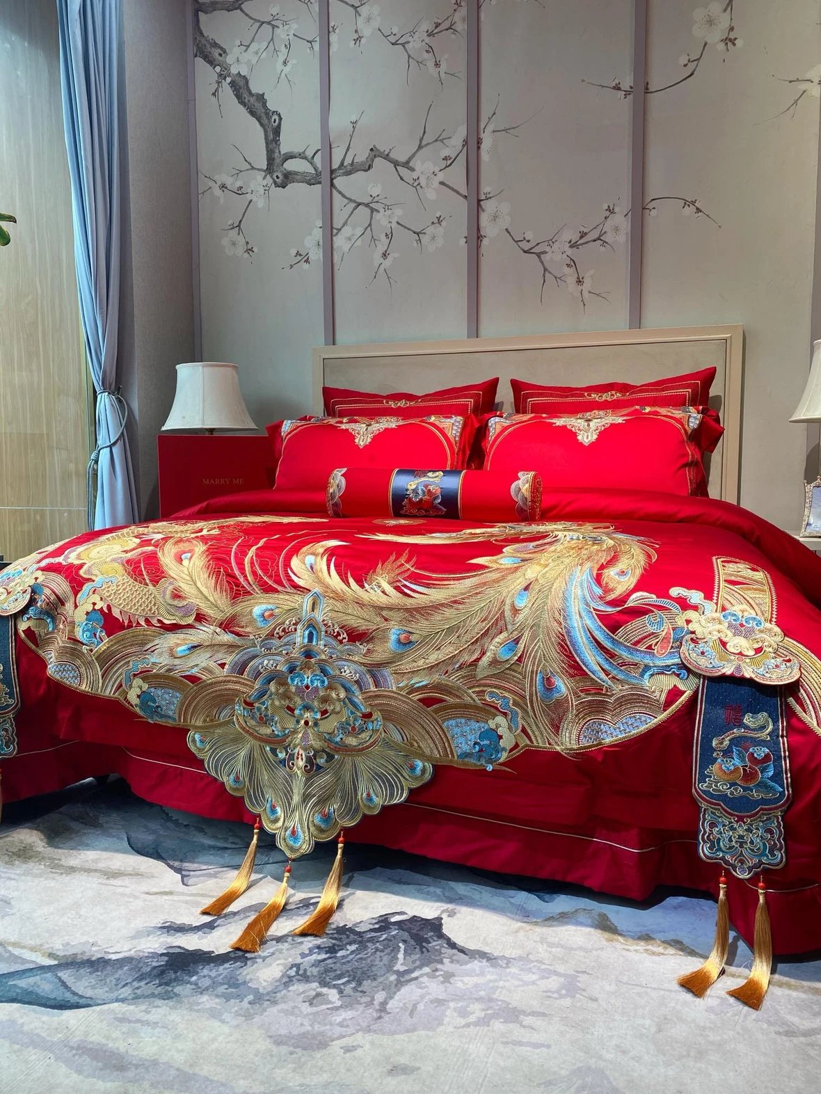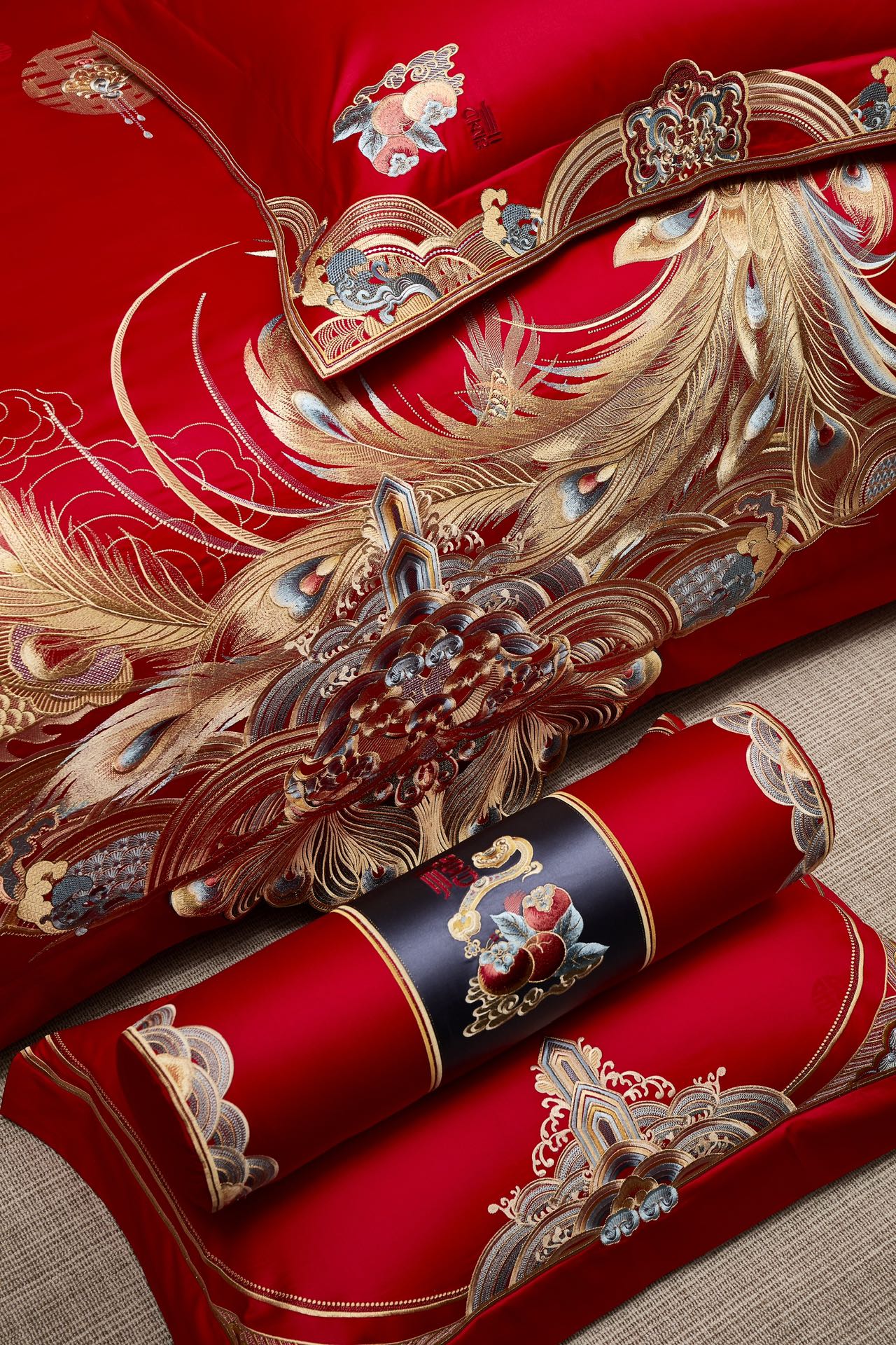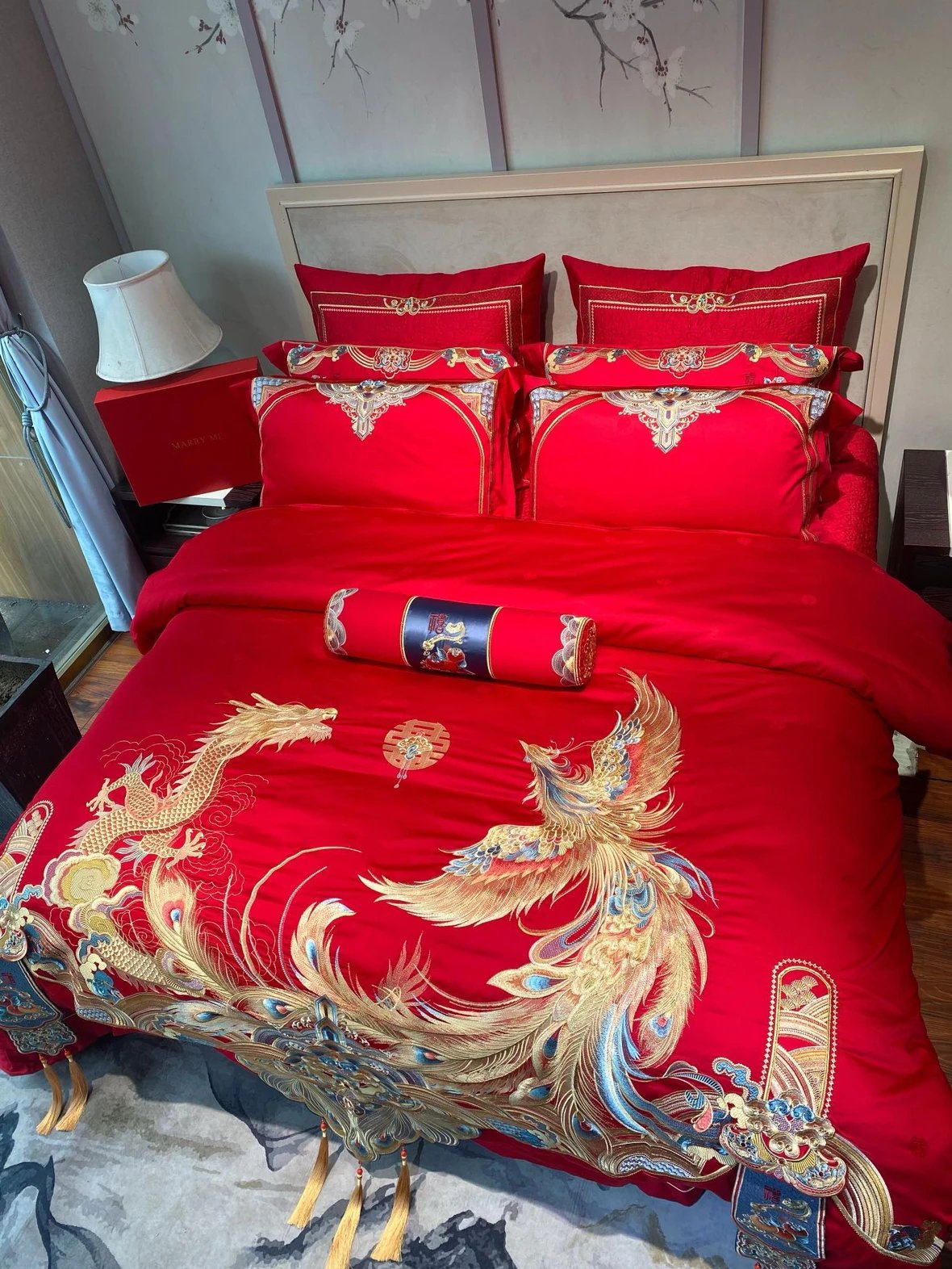 【高端婚庆】龙翔凤瑞w奢华重工刺绣100支新疆长绒棉婚礼四件套十件套