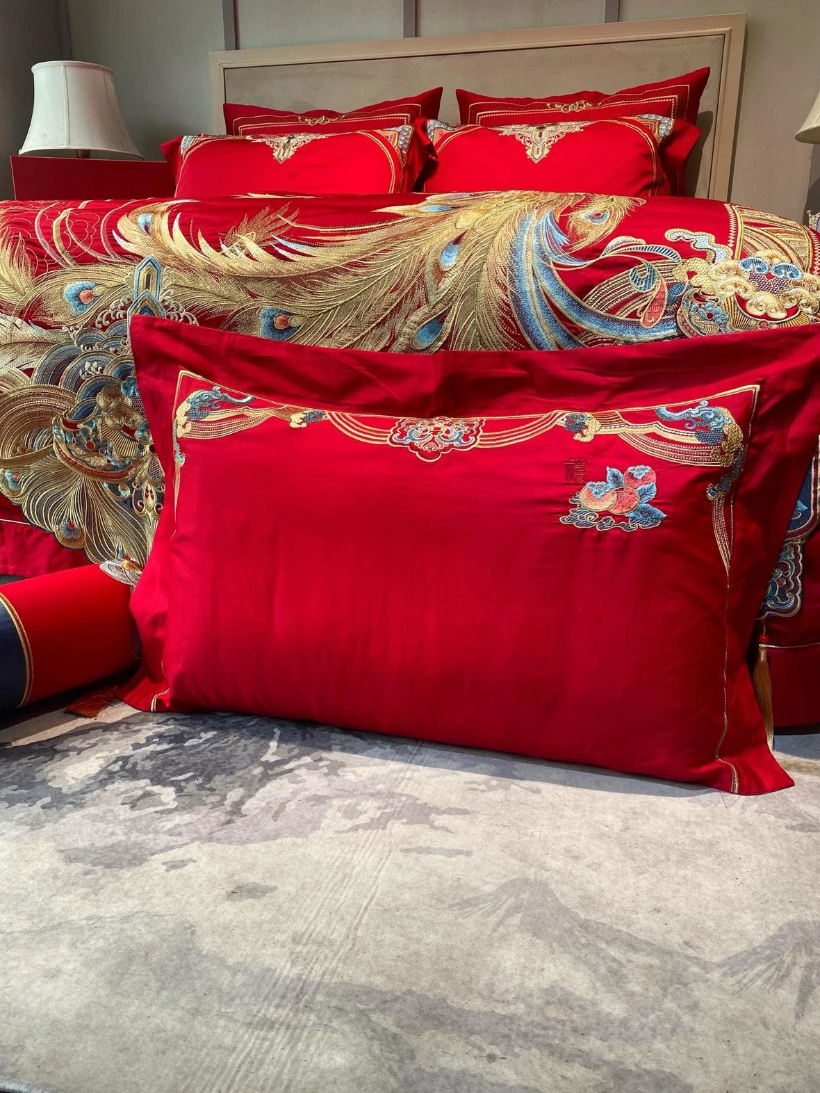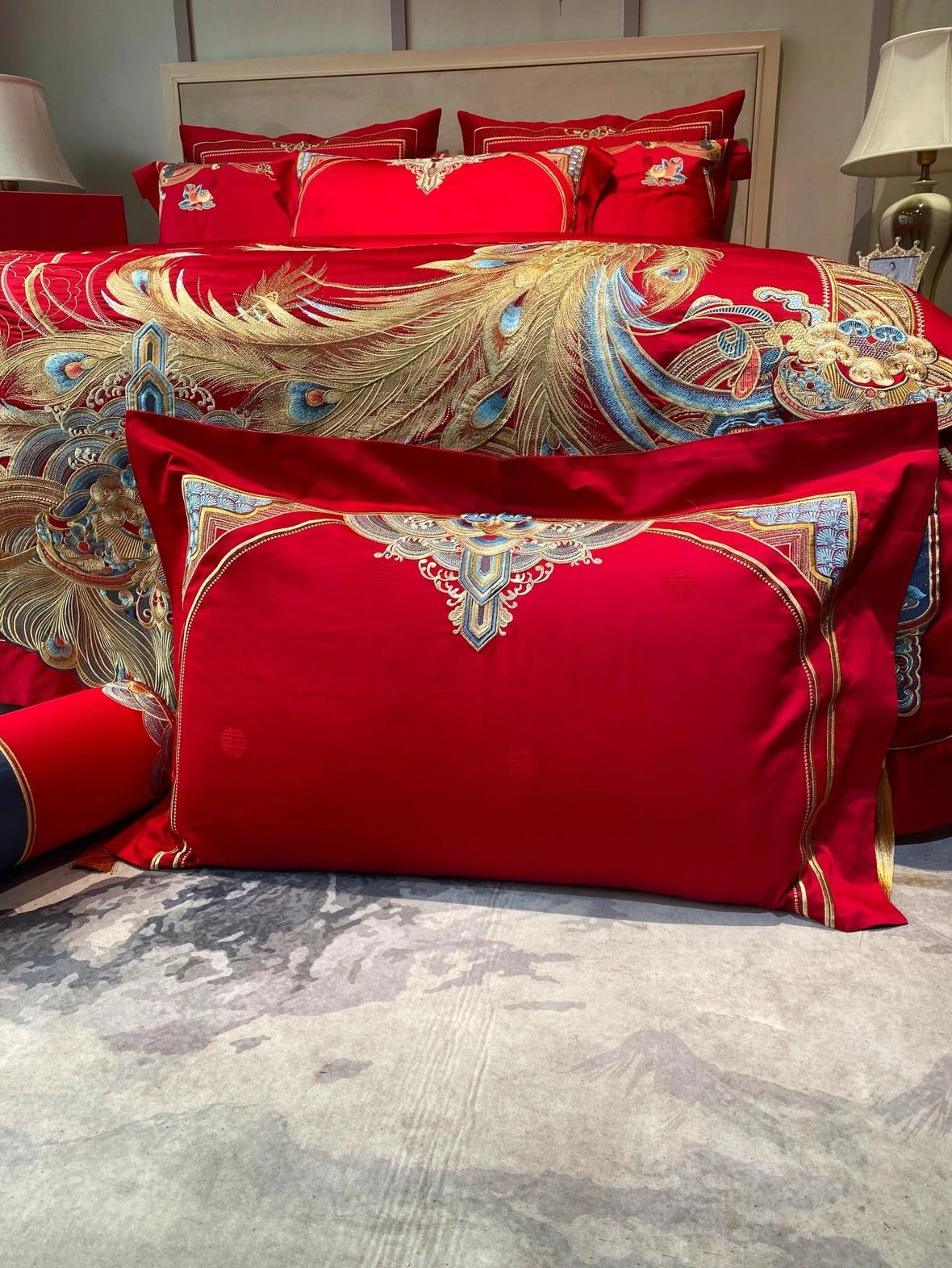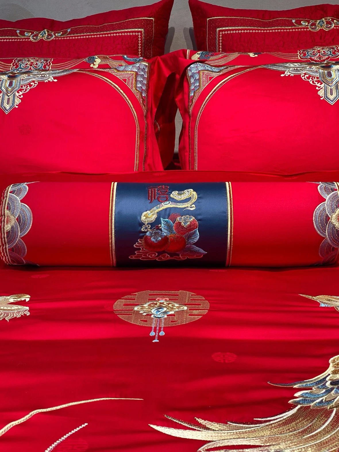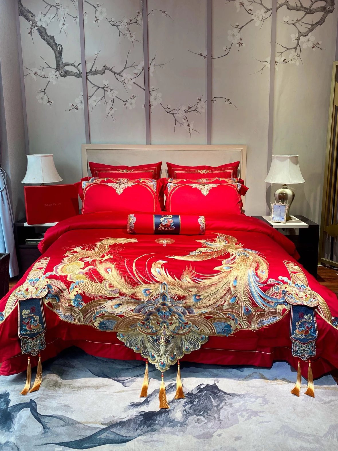 【高端婚庆】龙翔凤瑞w奢华重工刺绣100支新疆长绒棉婚礼四件套十件套