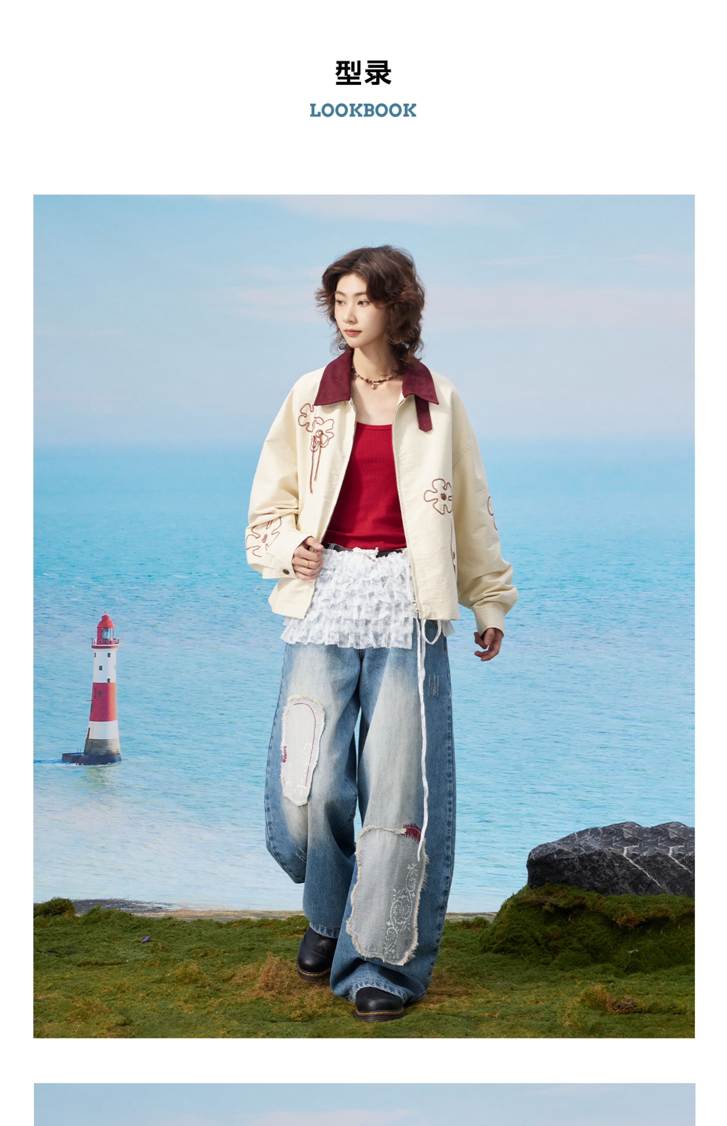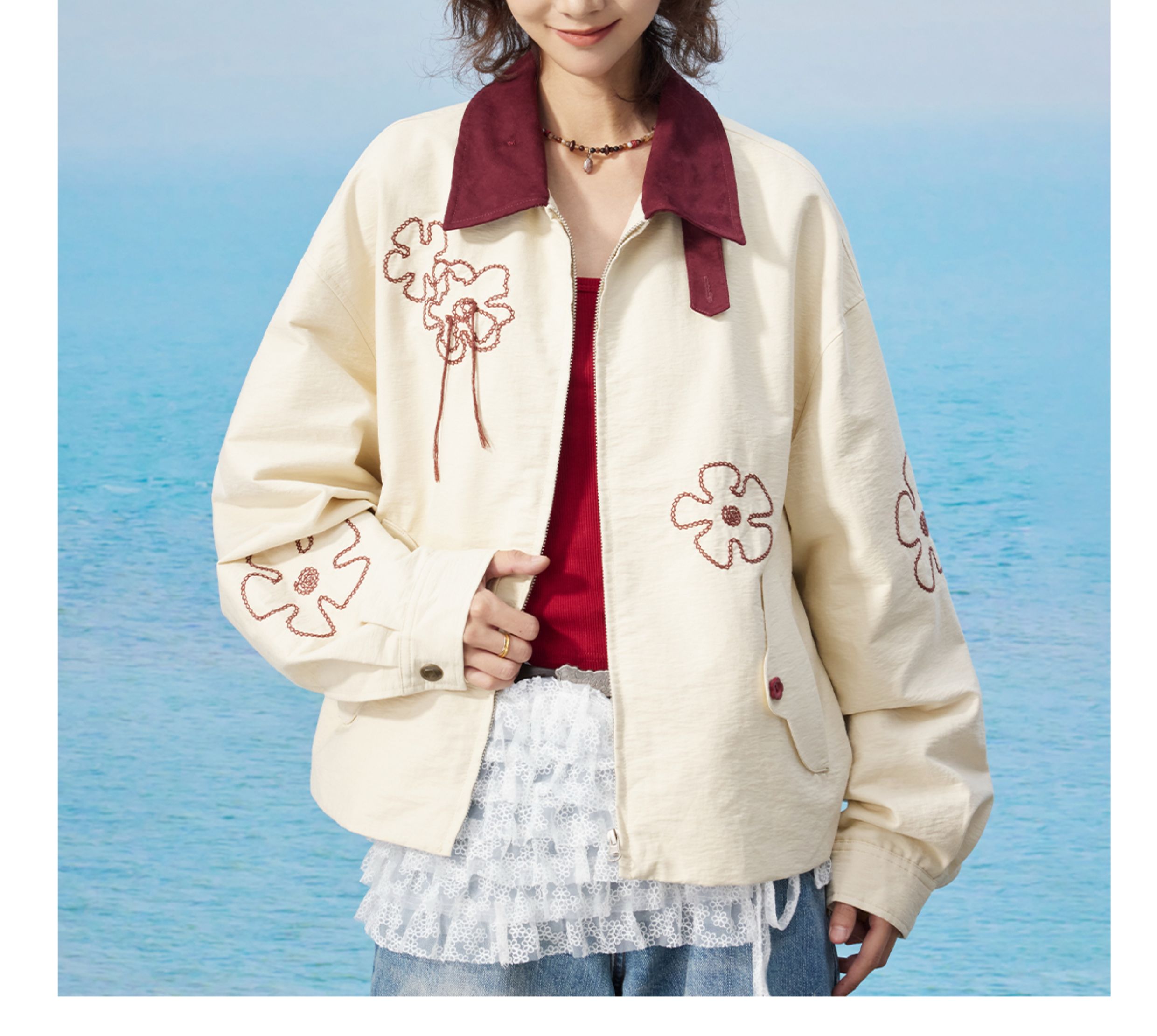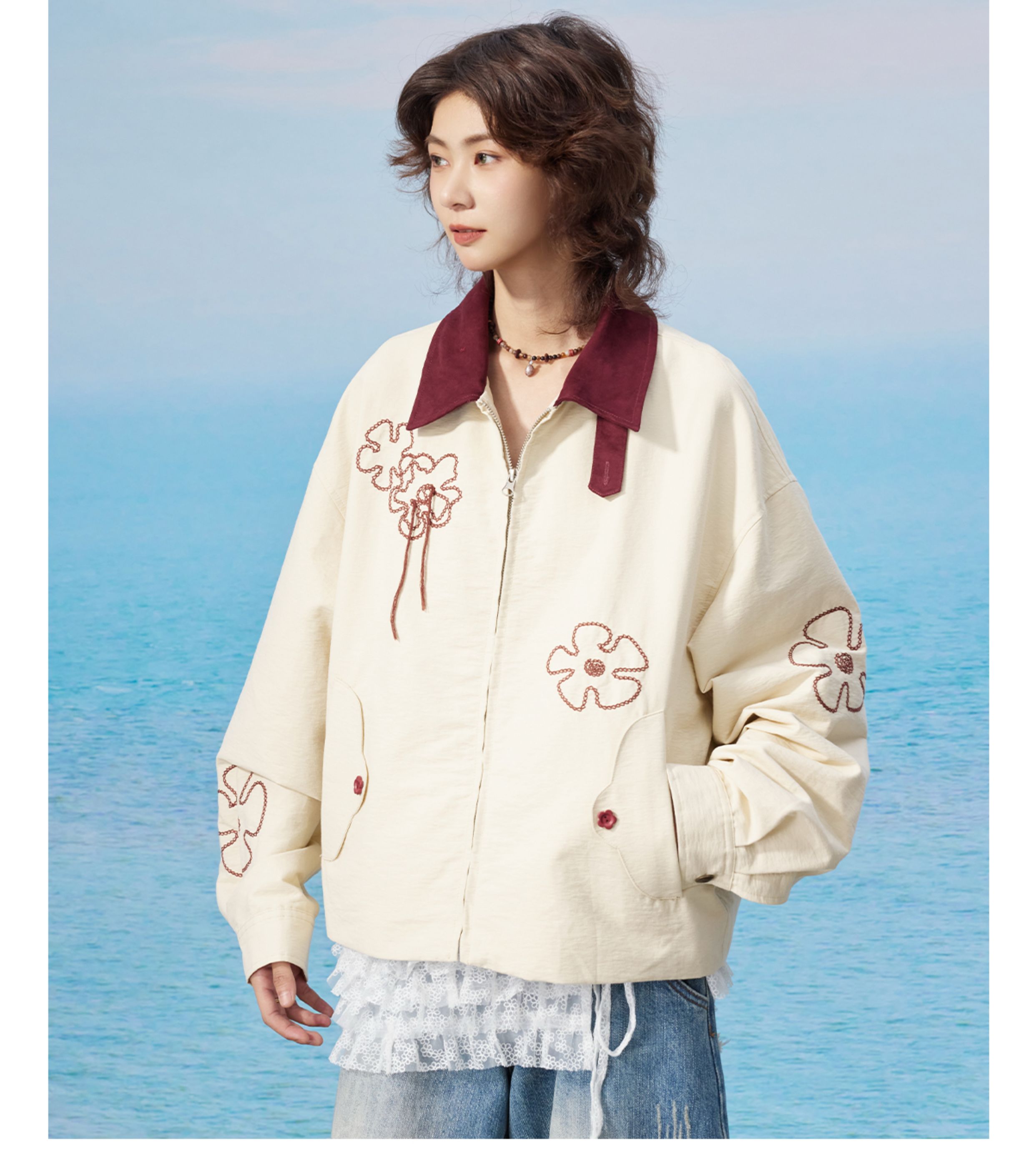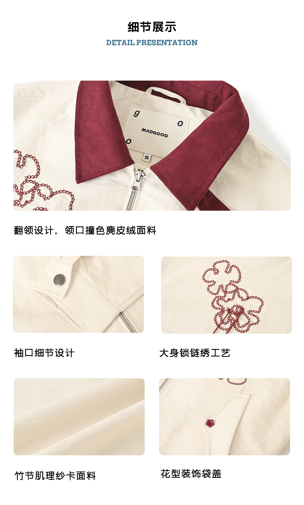 马得工地/MDGDWT13217/撞色领花型锁链绣夹克