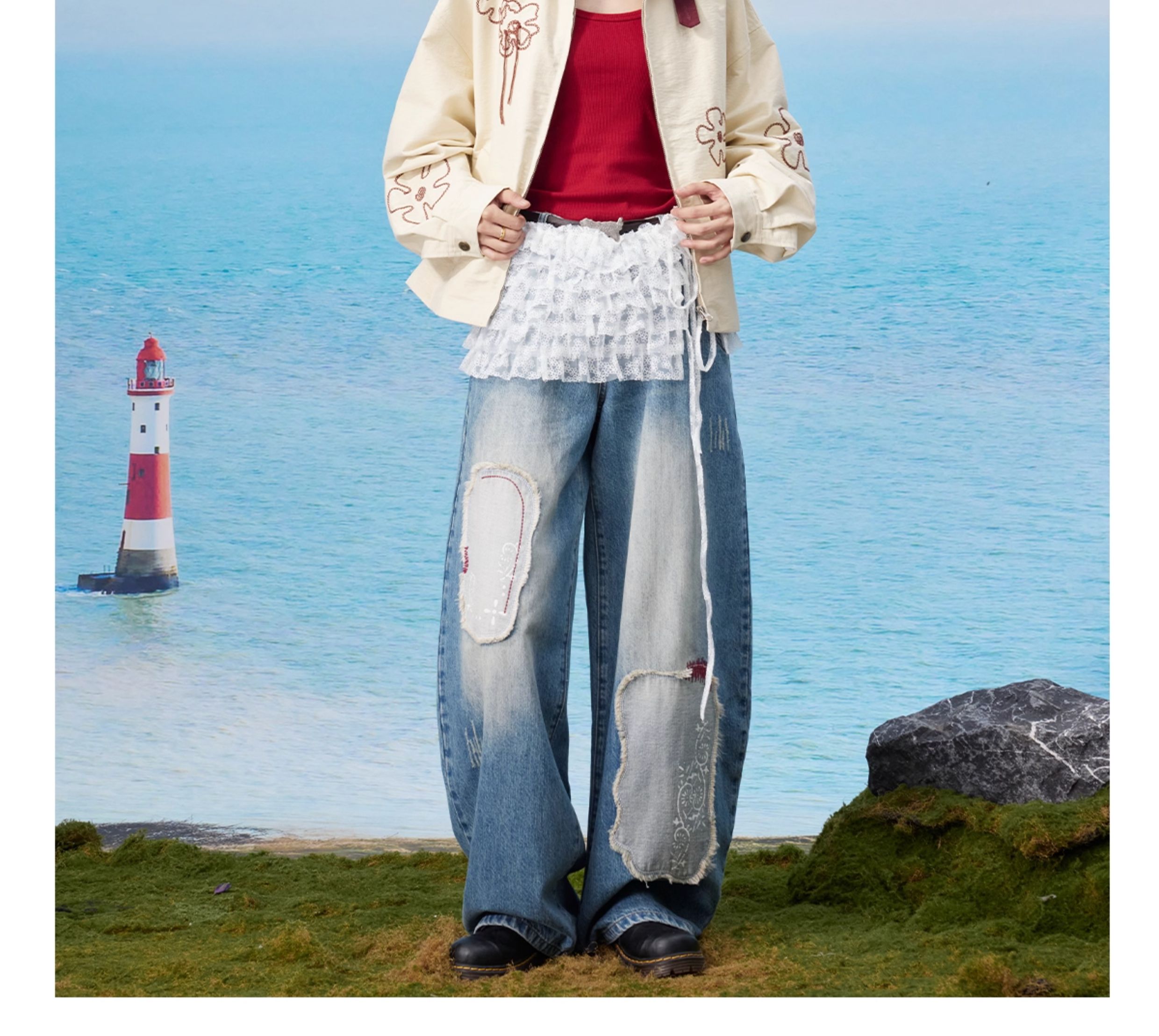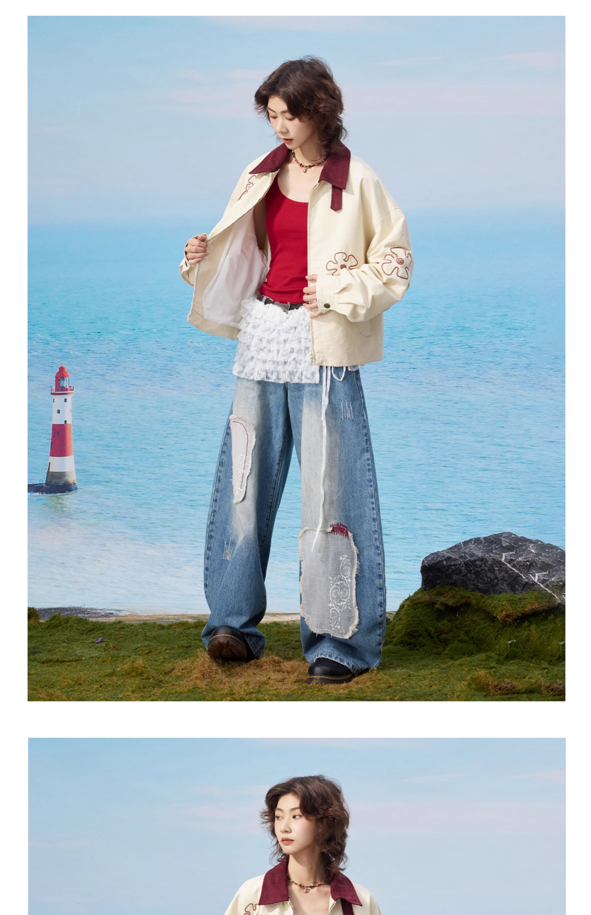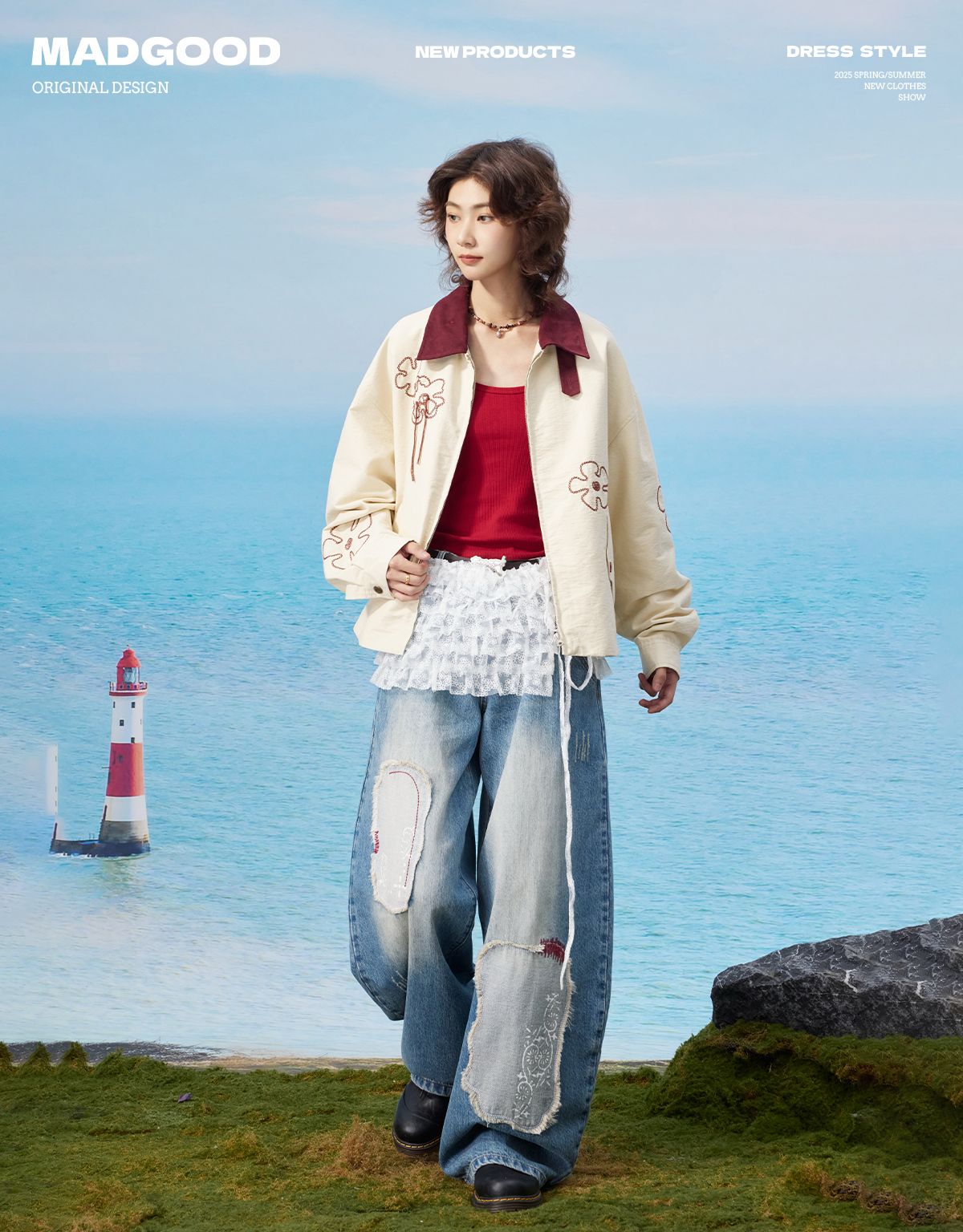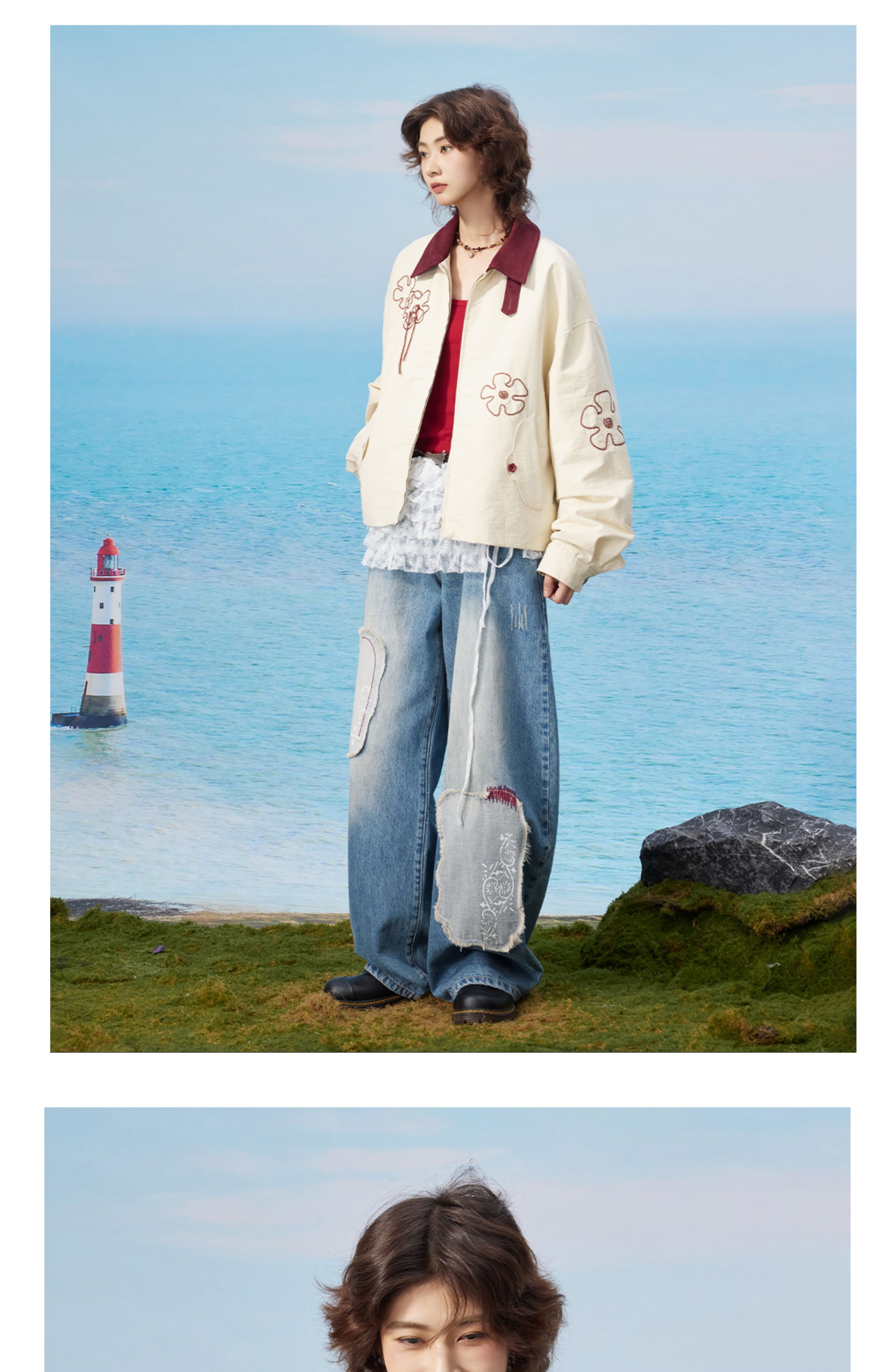 马得工地/MDGDWT13217/撞色领花型锁链绣夹克