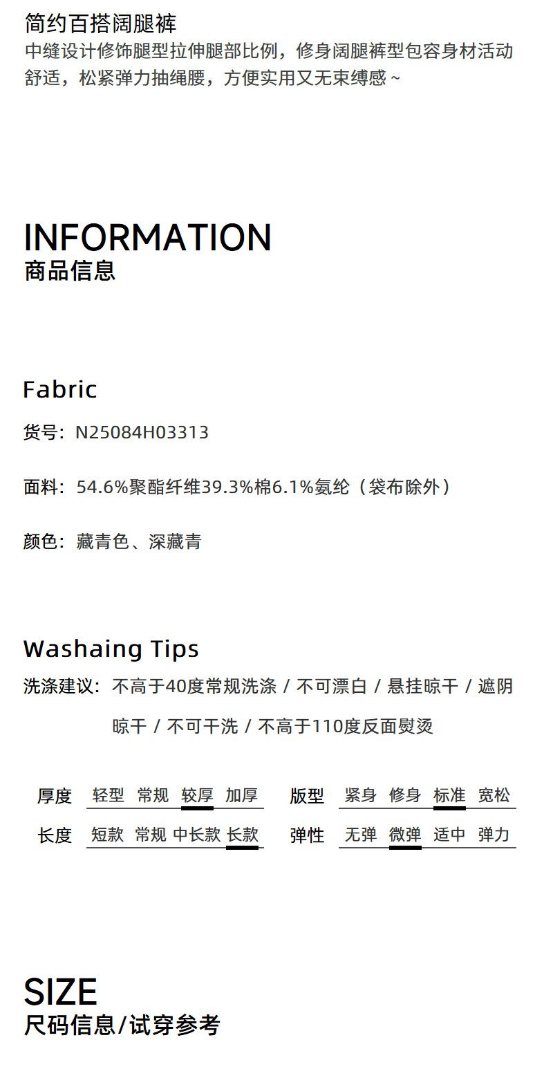 NEELLY纳俪商场同款秋季新款简约百搭阔腿裤女垂感显瘦直筒长裤N25084H03313