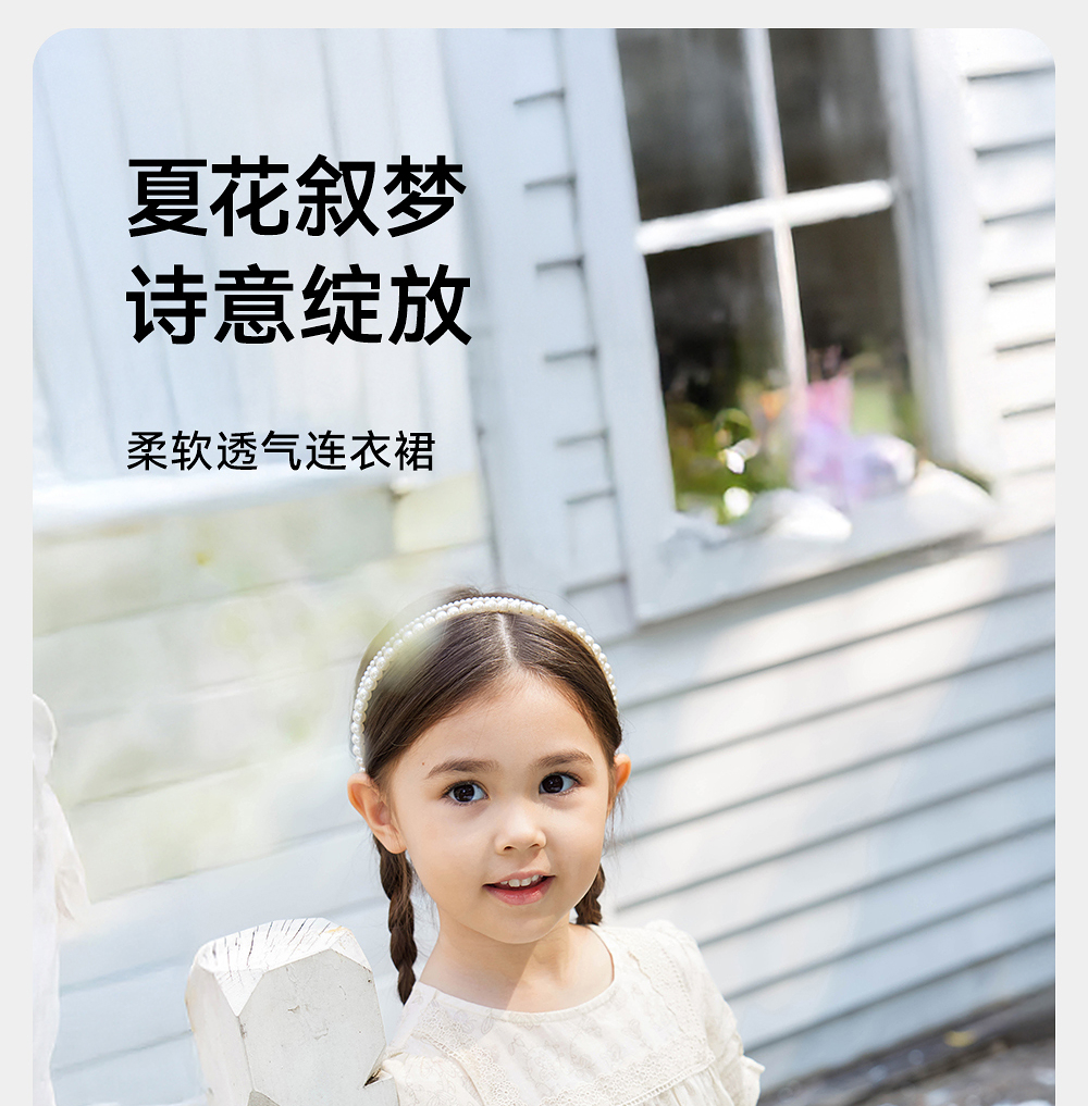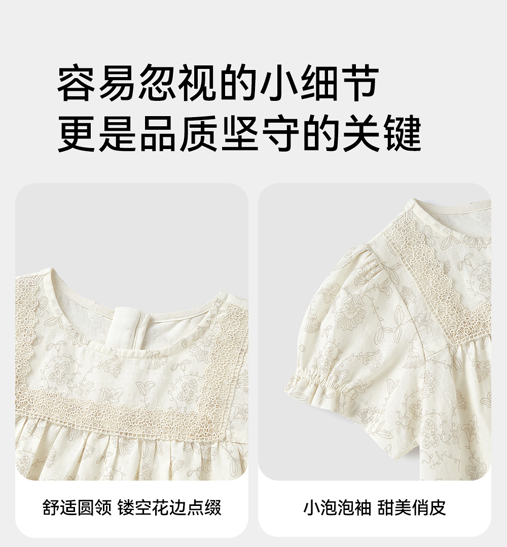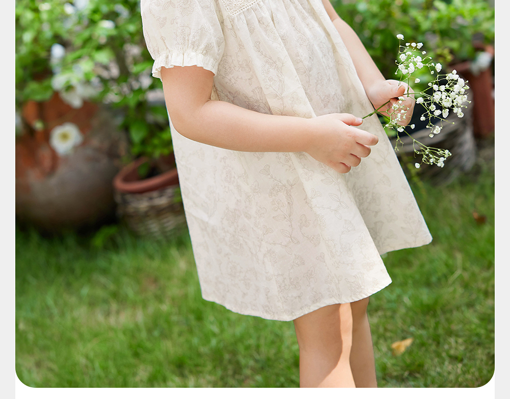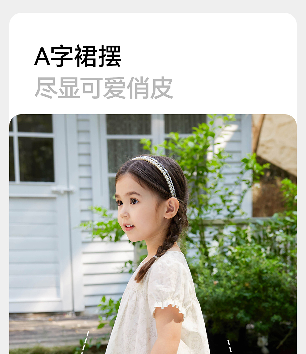 英氏女童连衣裙夏季短袖纯棉可爱小白裙纯棉2025新款YRLCJ2R006A