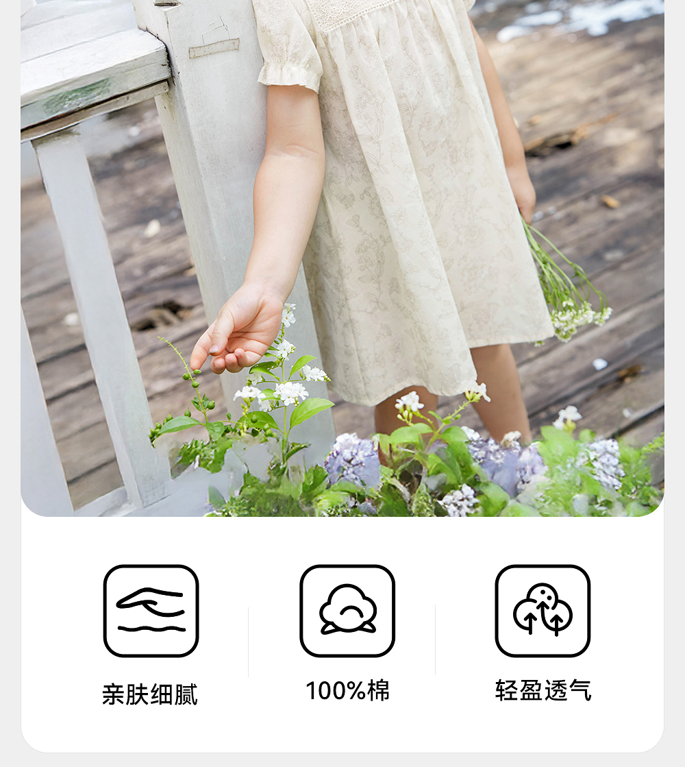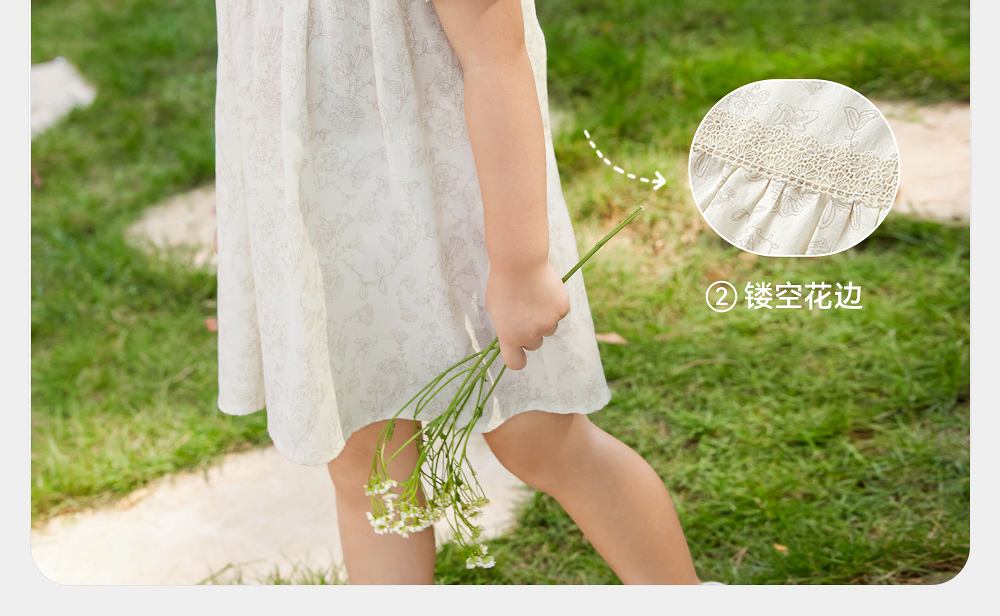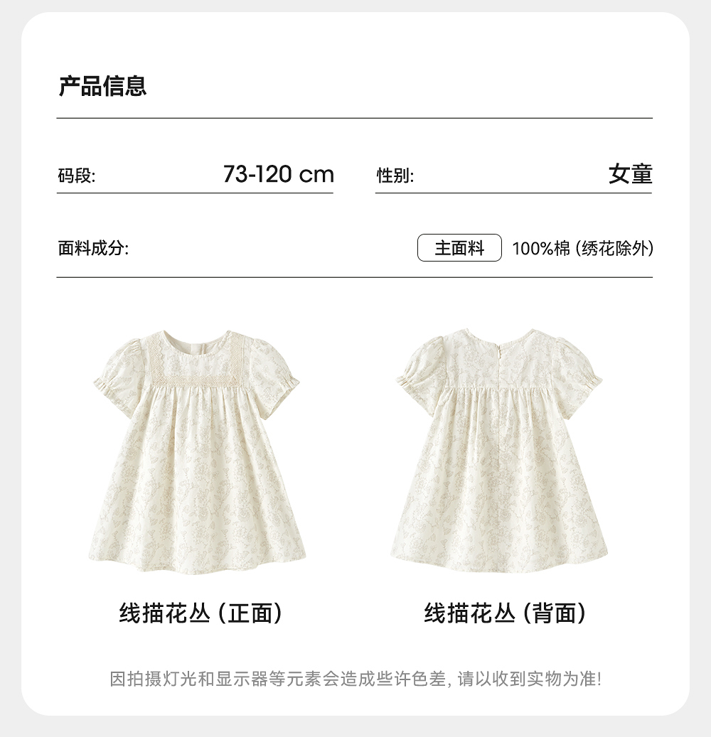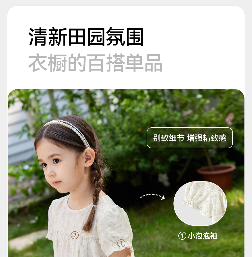 英氏女童连衣裙夏季短袖纯棉可爱小白裙纯棉2025新款YRLCJ2R006A