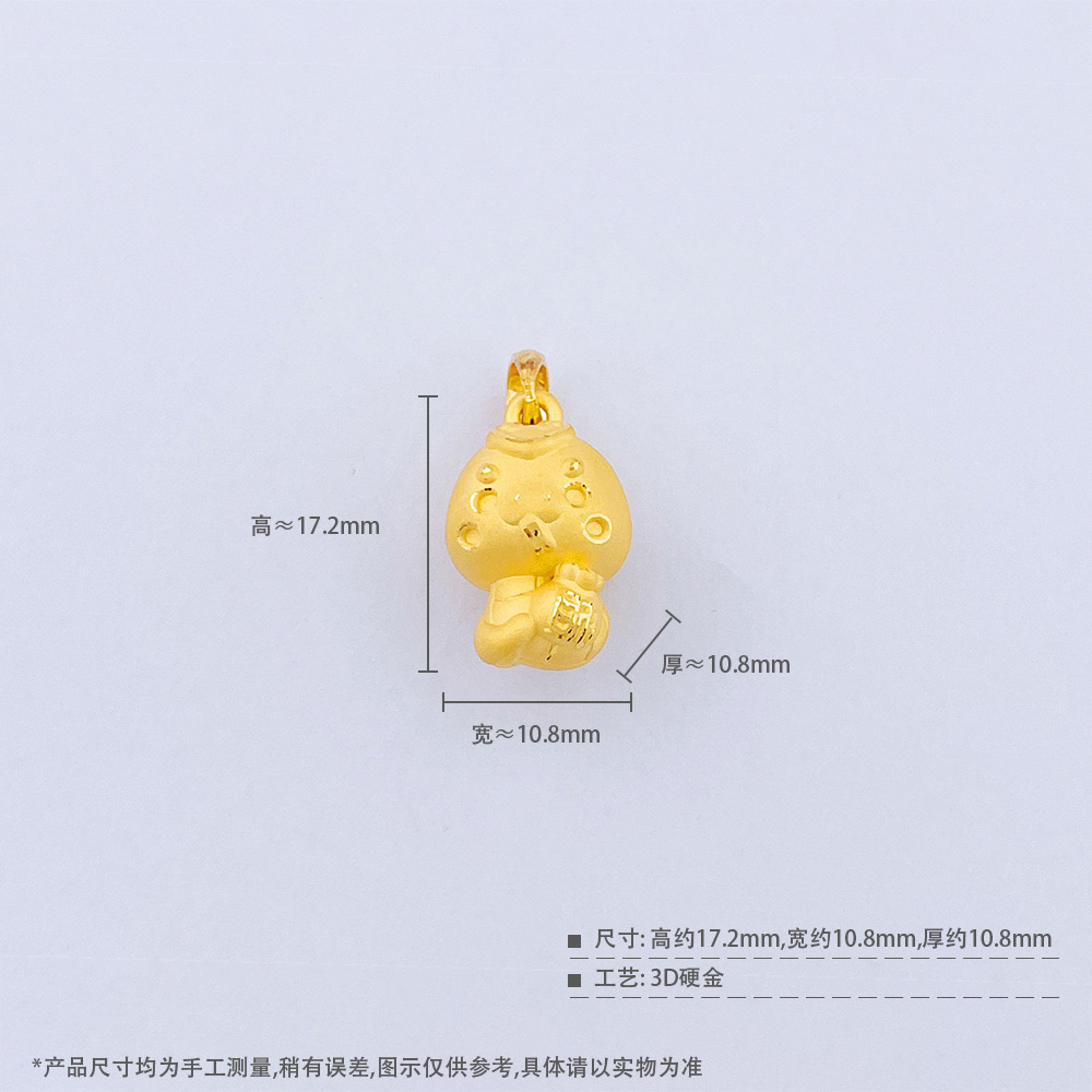 【限时7.5折】【定价黄金】足金 #福袋 #儿童/宝宝 #蛇年新品 【精品】3D硬金空心蛇年生肖福袋蛇宝宝吊坠(AR3DDZ00101)(预售产品下单后不退款不退货不换货不补差价)
