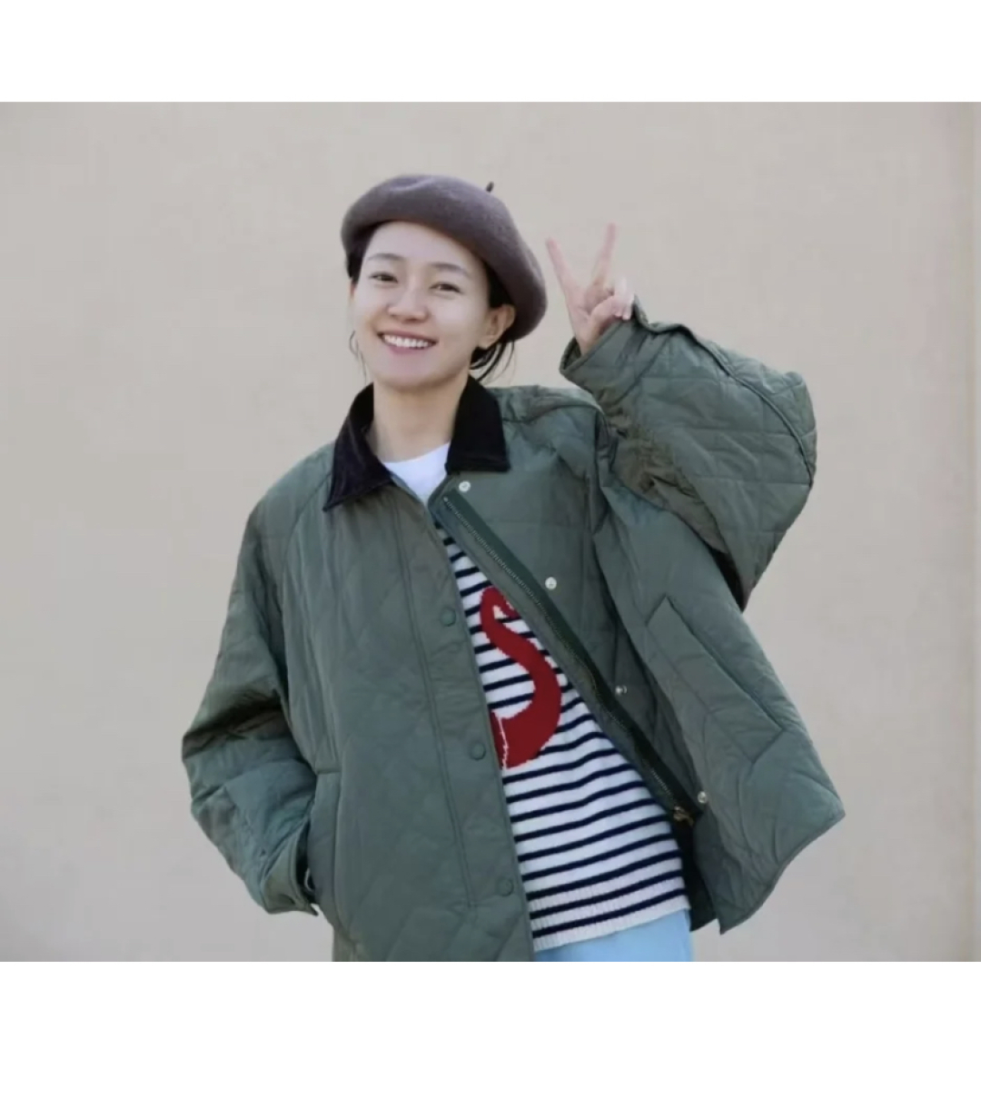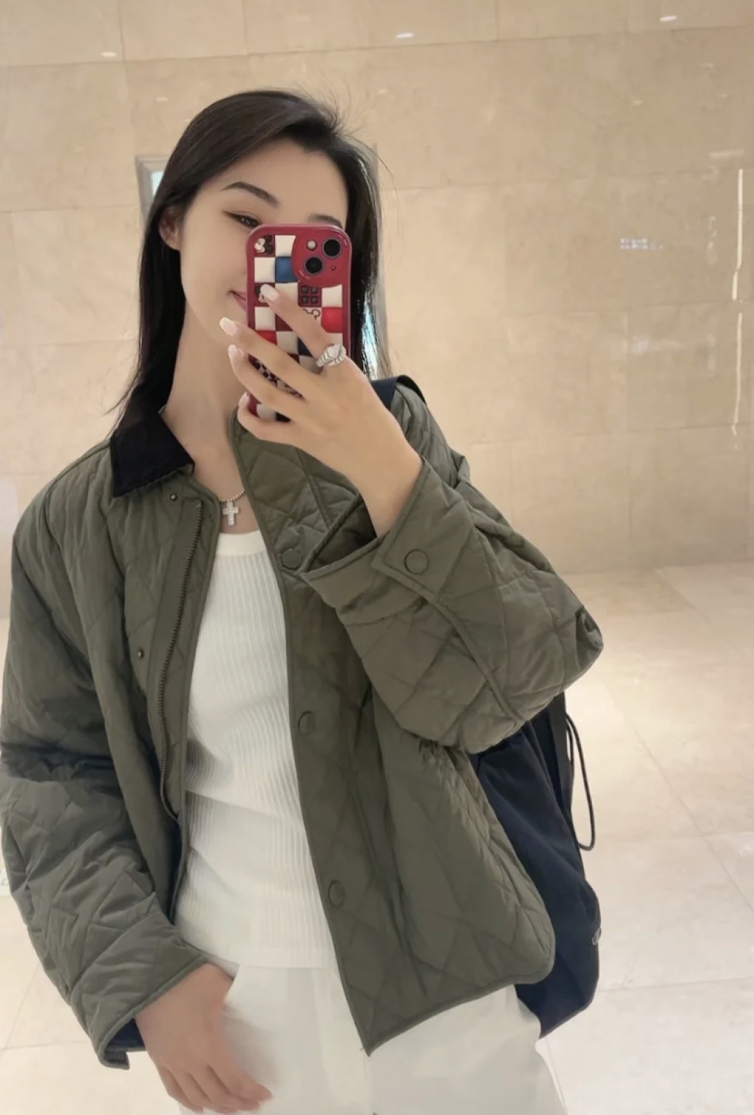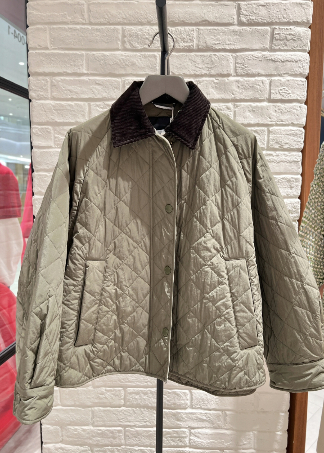 实拍来今,年炒鸡爆火的巴恩,风谷仓风,撞色芯灯绒衣领搭,配菱形纹格绿色棉服,细旦龙尼,亲肤细轻腻盈无比。我自感觉max这款更有计设感,不是千篇一律风的格,硕大袖子宽,松下,摆整体型造,更为恣意流。畅。。。