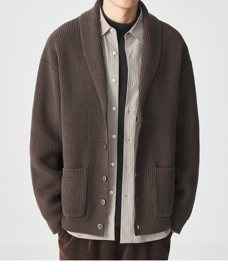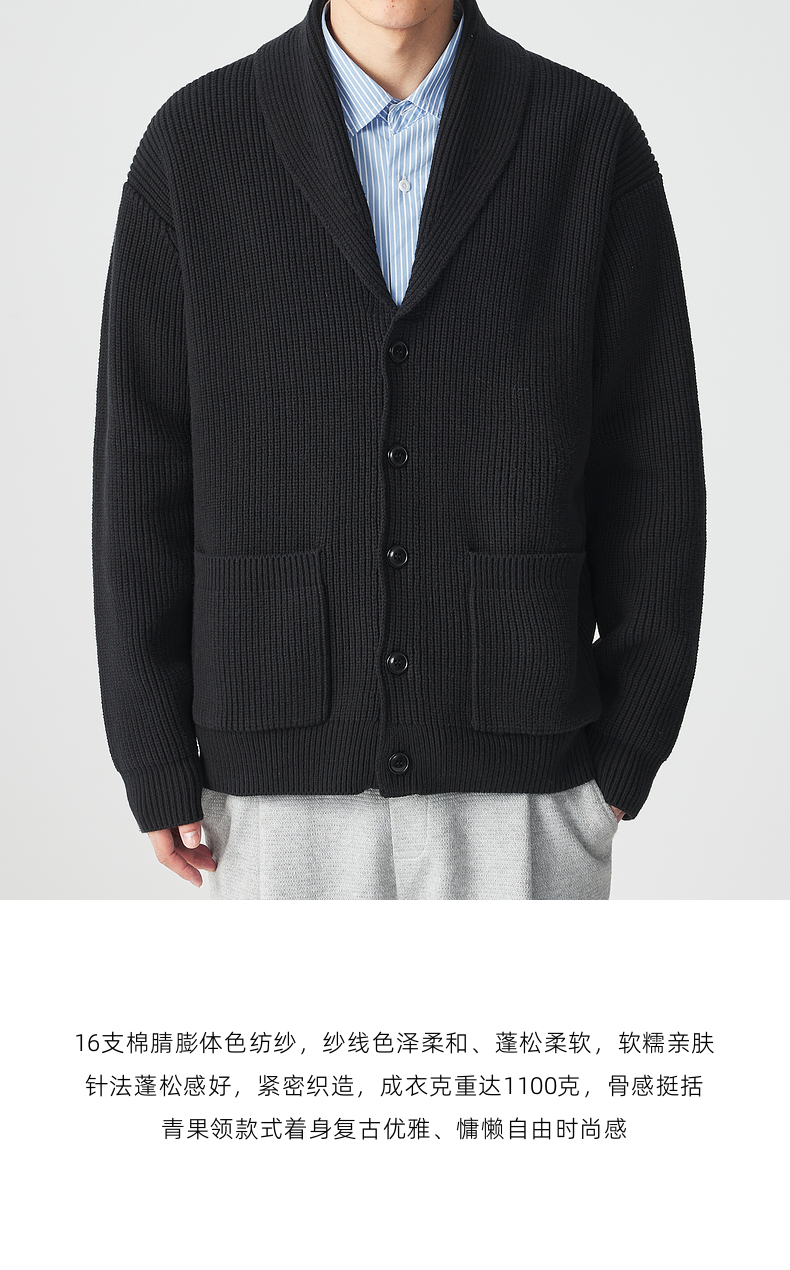墨麦客男装 加厚青果领 冬季复古针织开衫外套男士毛衣夹克20462