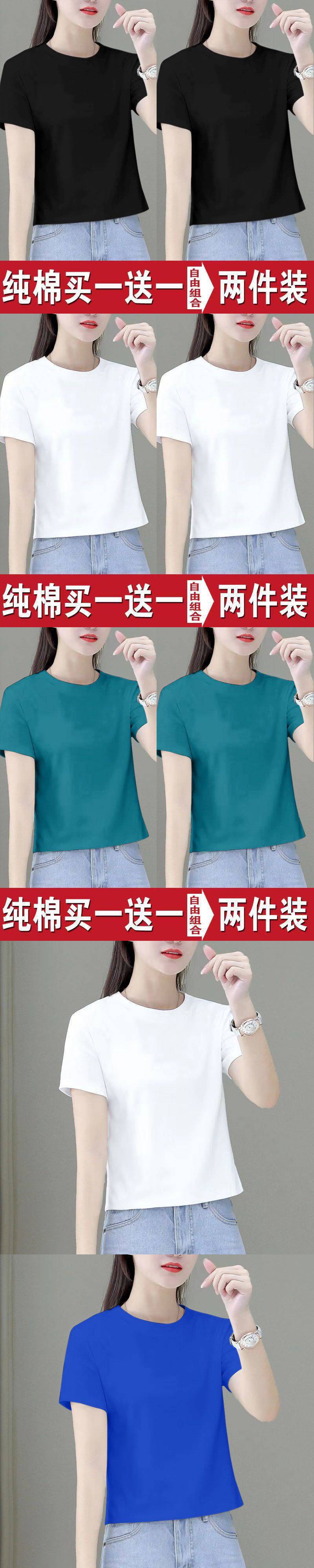 夏天女生短袖上衣单/两件棉圆领T恤女2023夏季韩版新款休闲显瘦