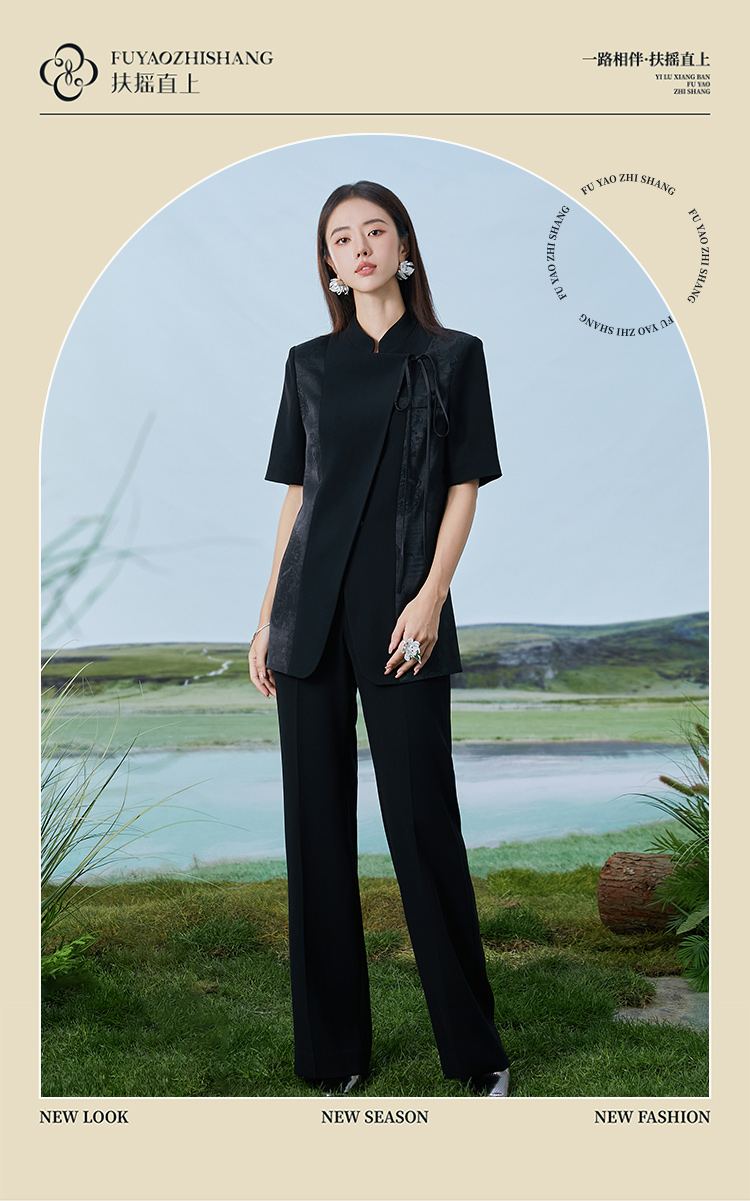 IWY/扶摇系列夏季国风立领气质通勤西装套装FYCP375