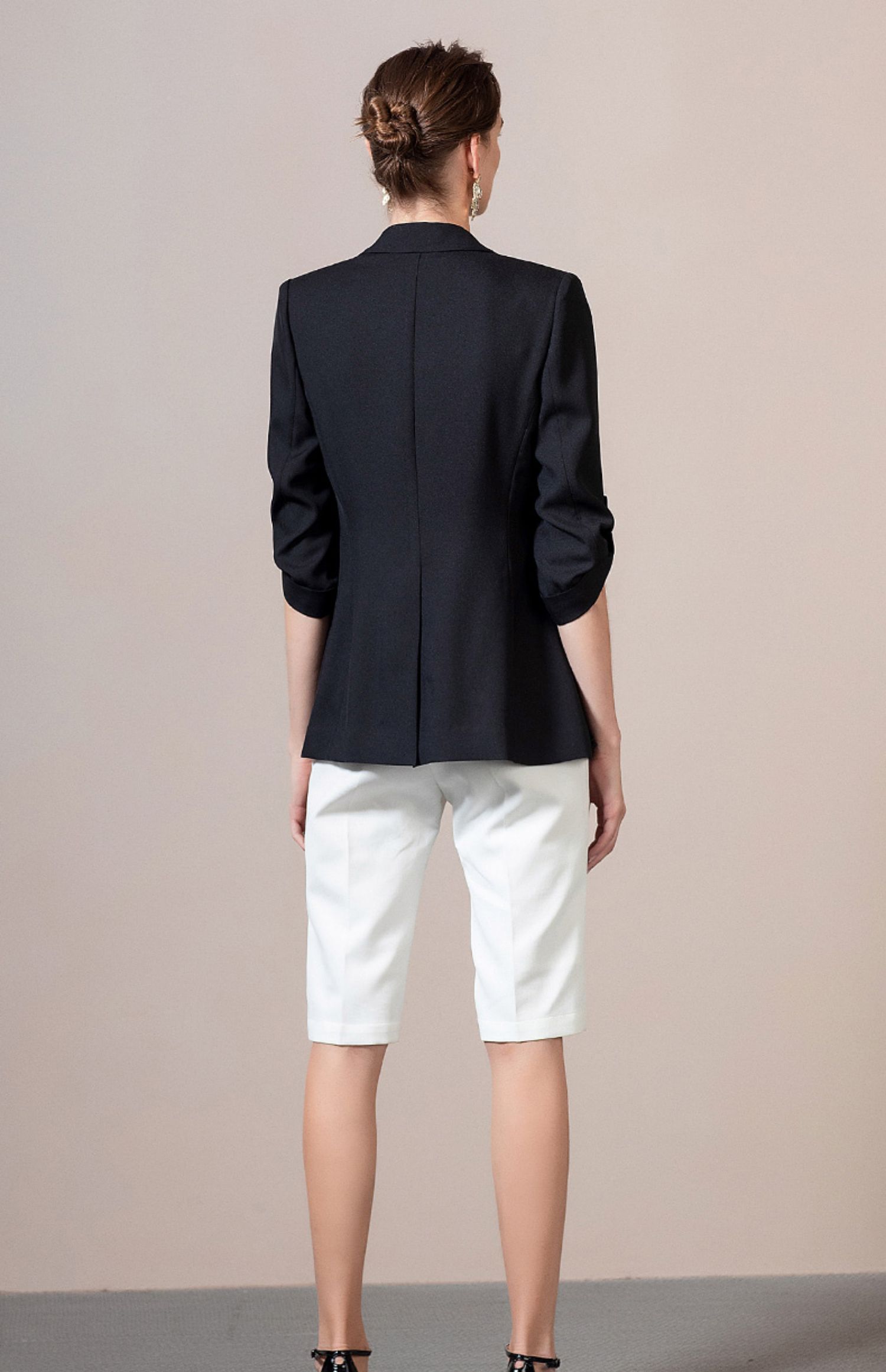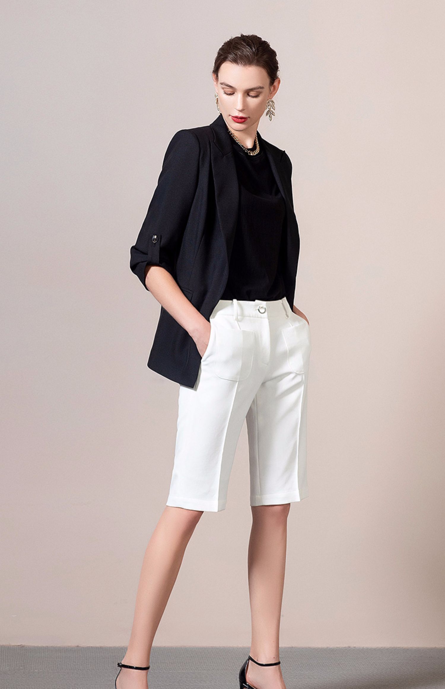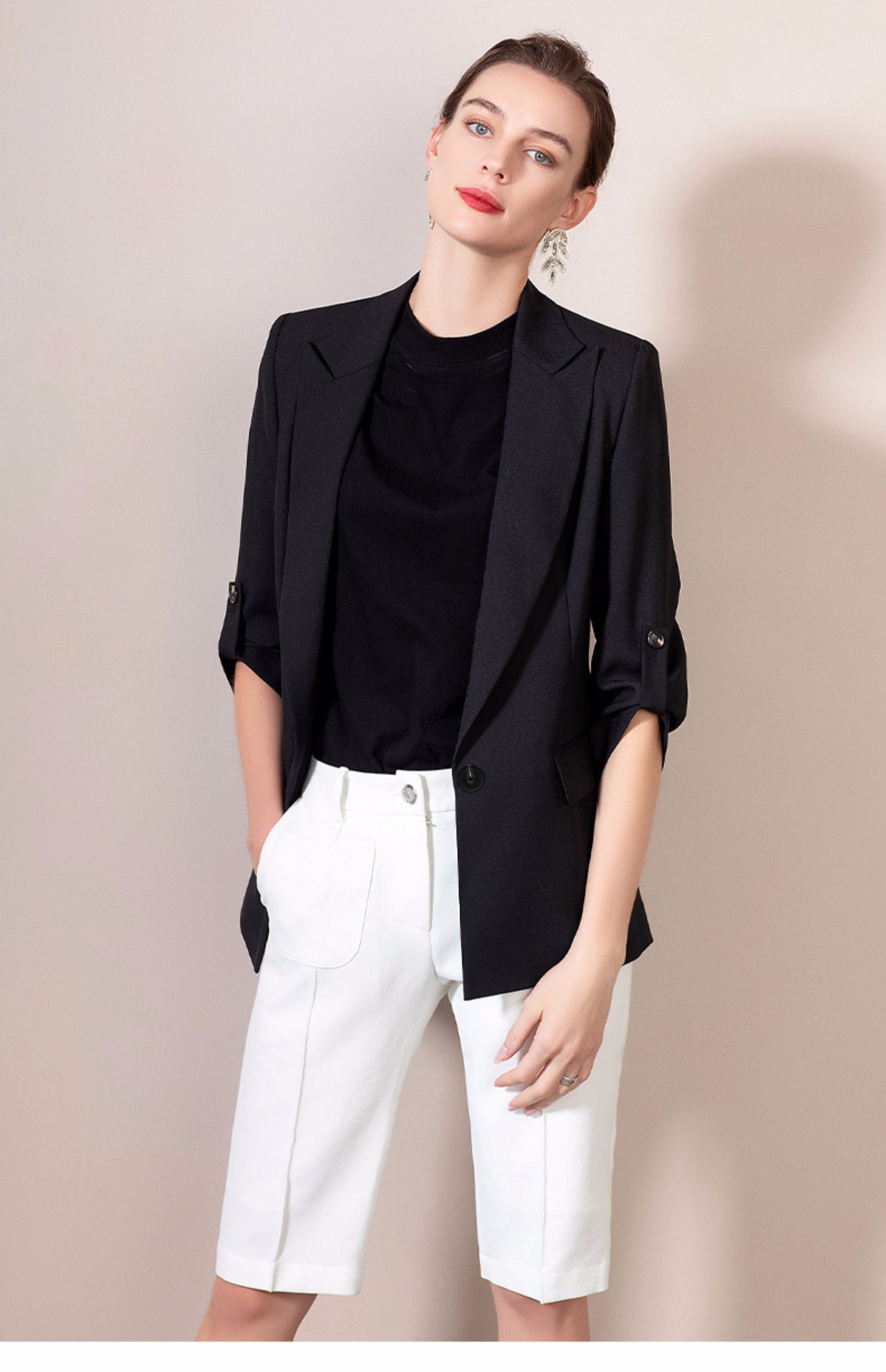 IWY/黑色西装套装女长袖女士正装职业西服亮面工装英伦风 212062C1+212071P5