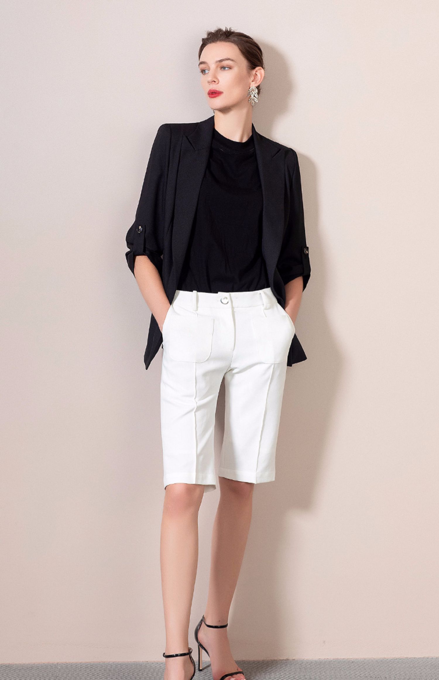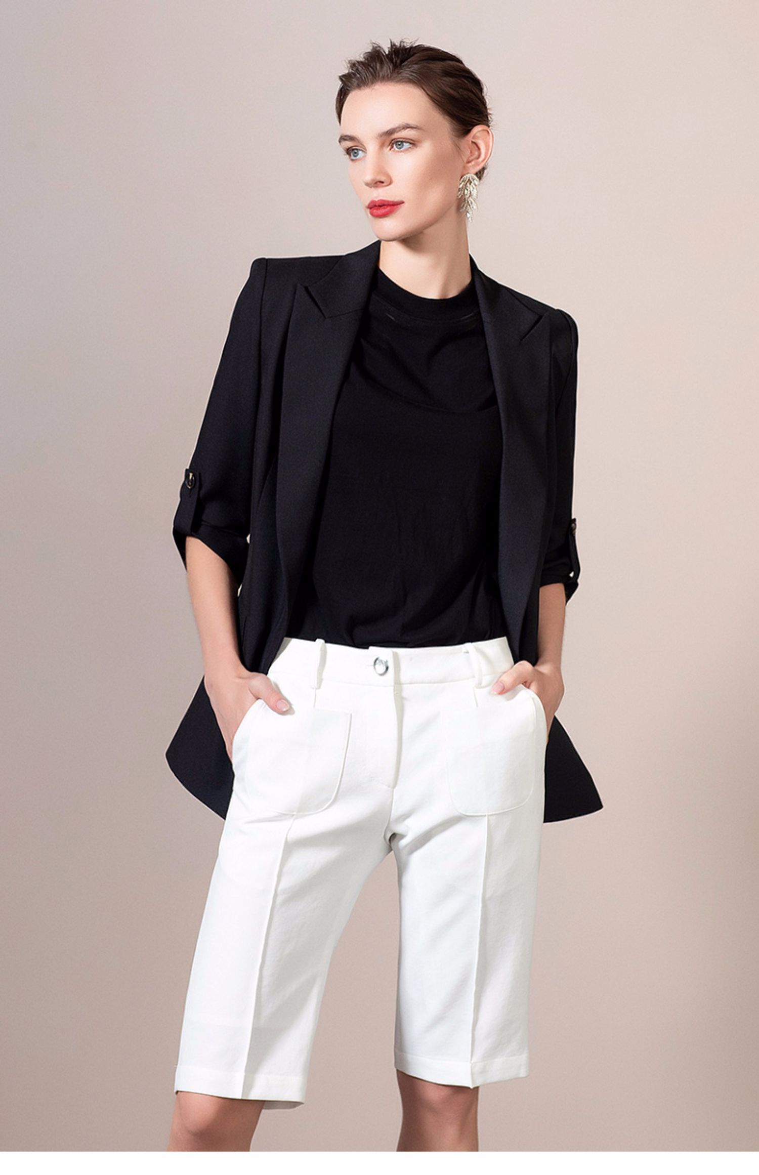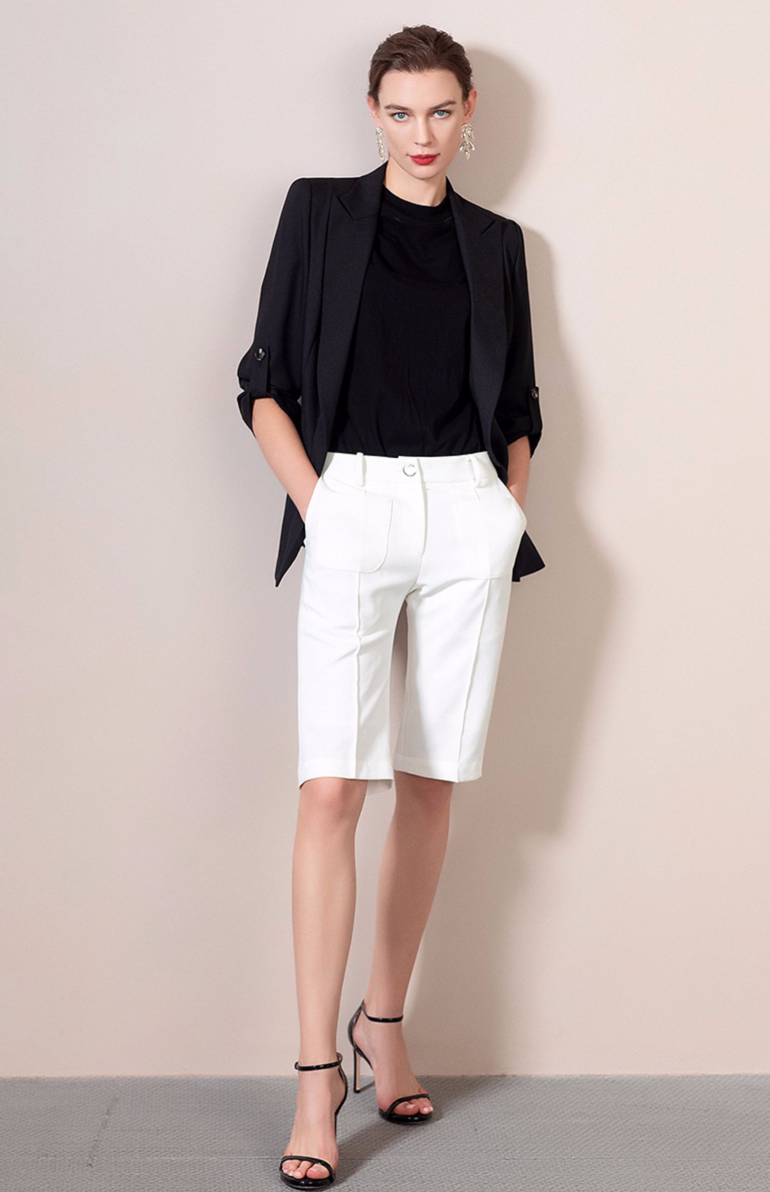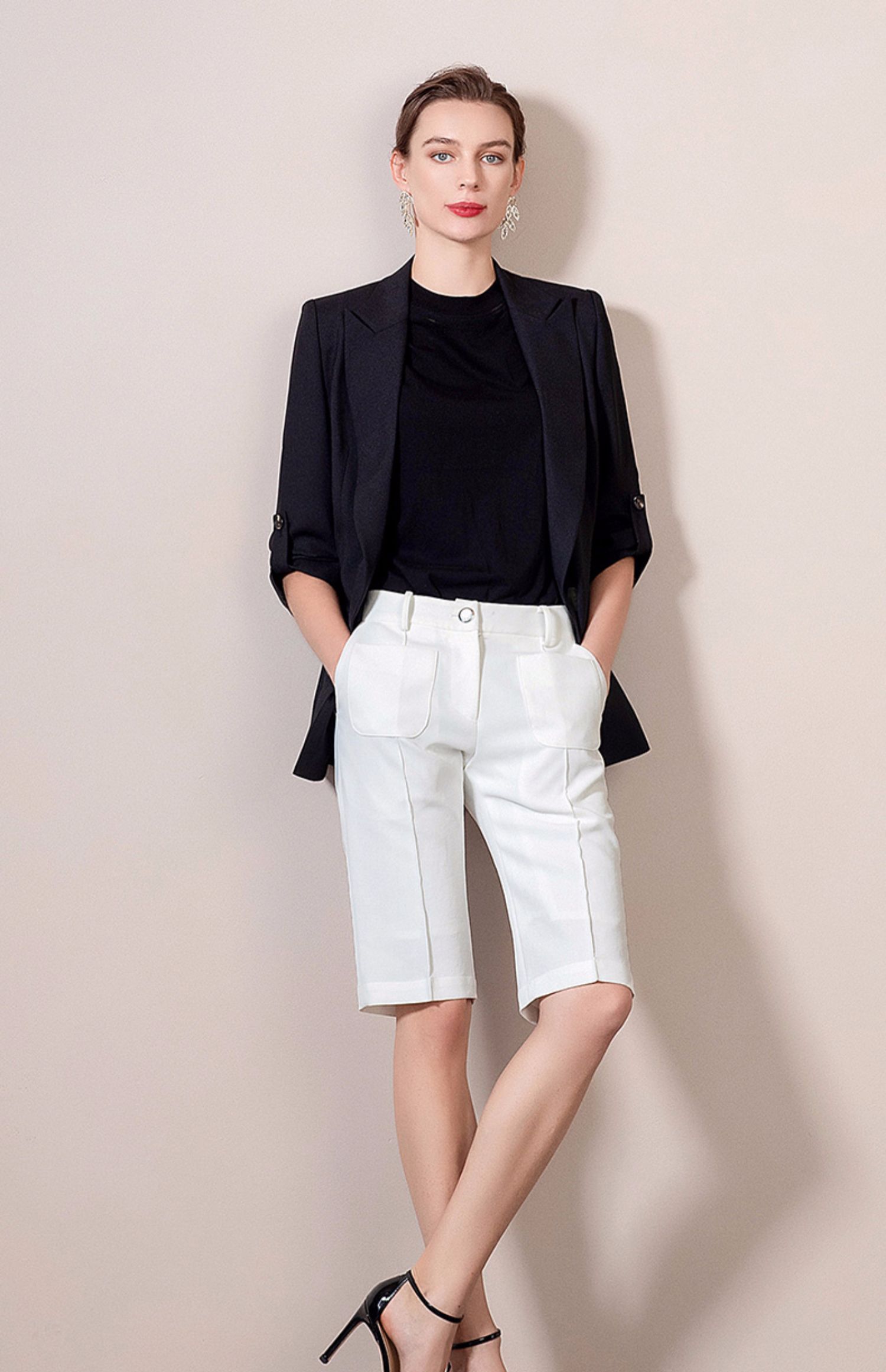 IWY/黑色西装套装女长袖女士正装职业西服亮面工装英伦风 212062C1+212071P5