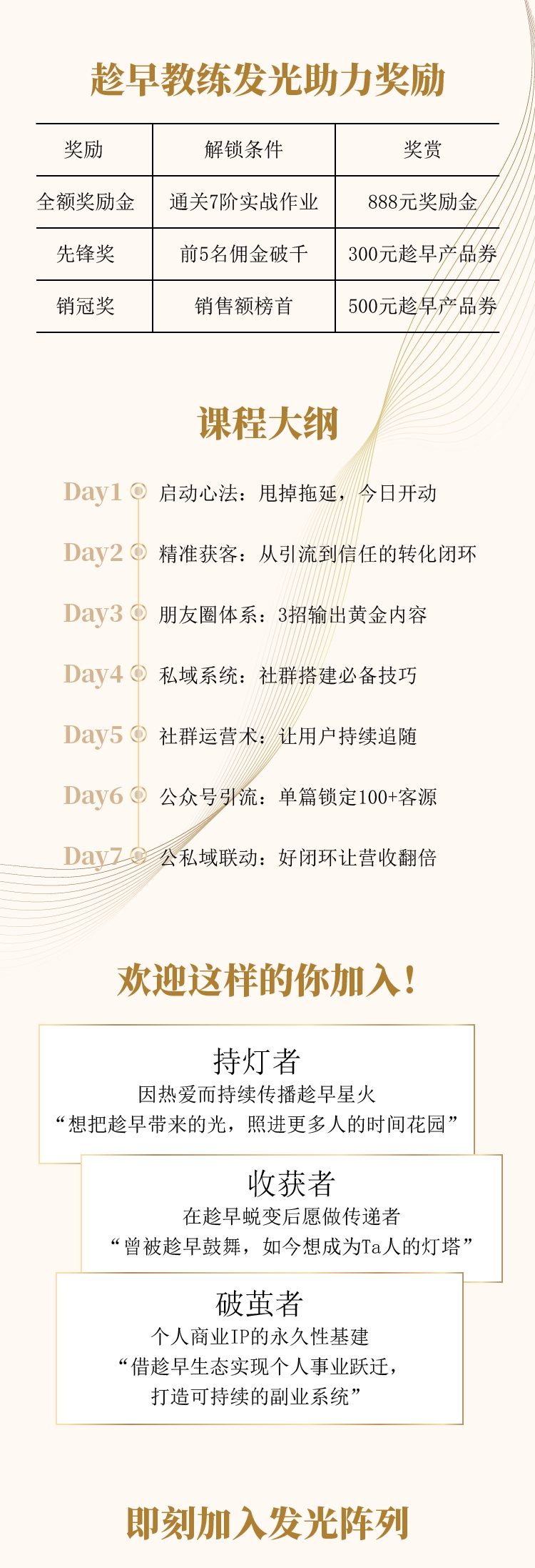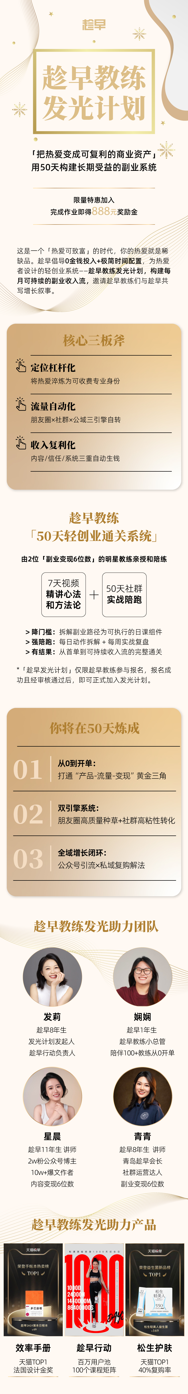 趁早教练发光计划-把热爱变成可复利的商业资产,用50天构建长期受益的副业系统!第六期限时特惠招募中
