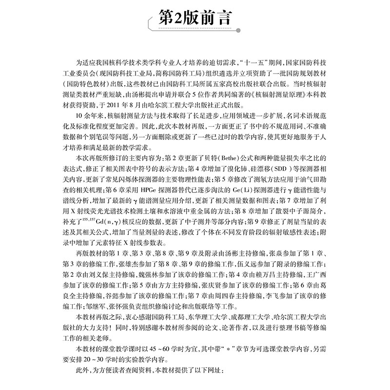 本教材着重阐述原子与原子核基本知识,核素衰变规律,常见放射性射线的产生机理、探测原理与测量装置及其与物质相互作用的基本原理和作用方式,核轾射测量数据与物质的关系和基本方程。本教材主要内容包括:核辐射基础知识,射线与物质的相互作用,核辐射测量中统计学与误差预测,α、β、γ射线测量方法,中子测量方法,辐射防护与辐射剂量测量方法等。