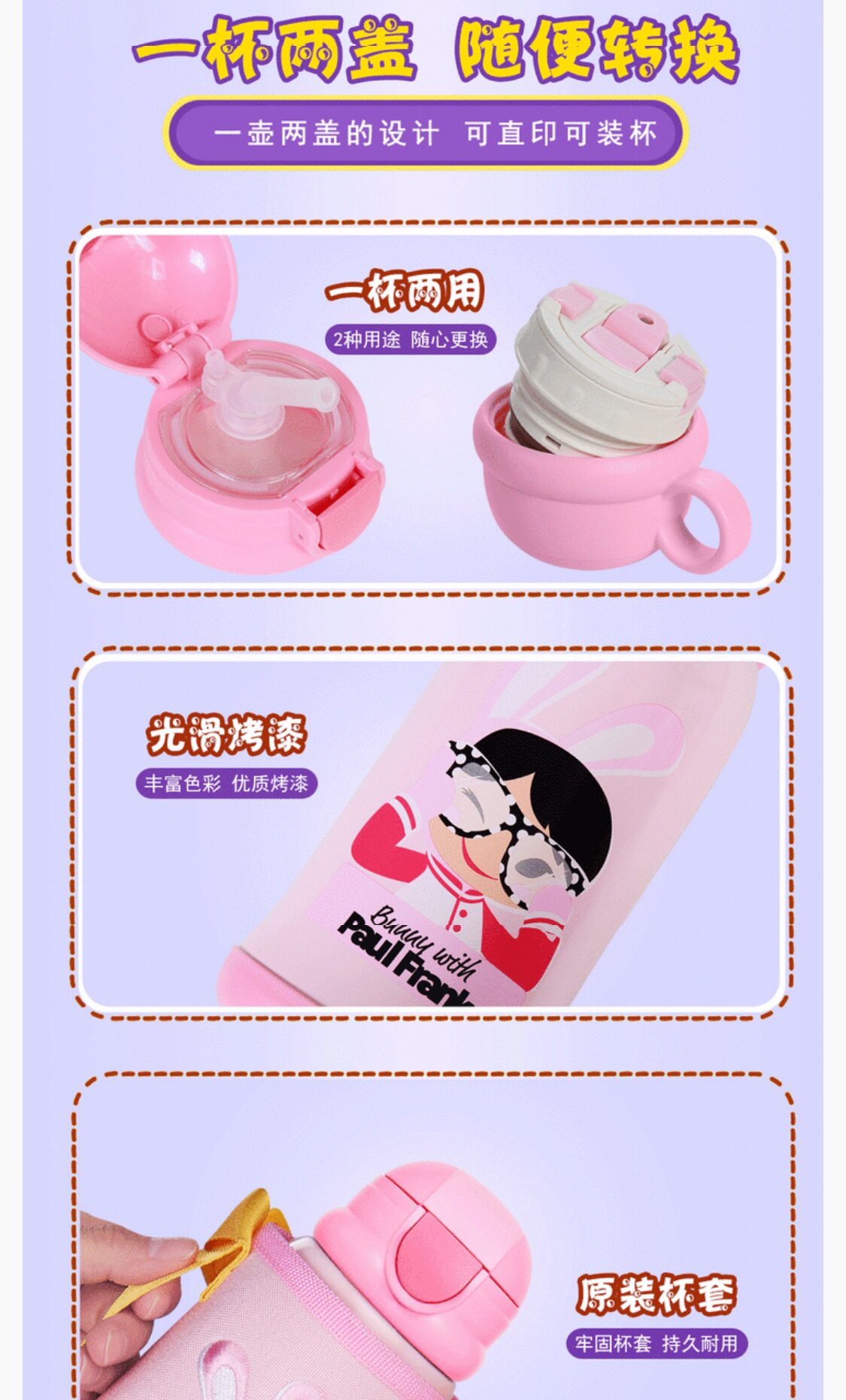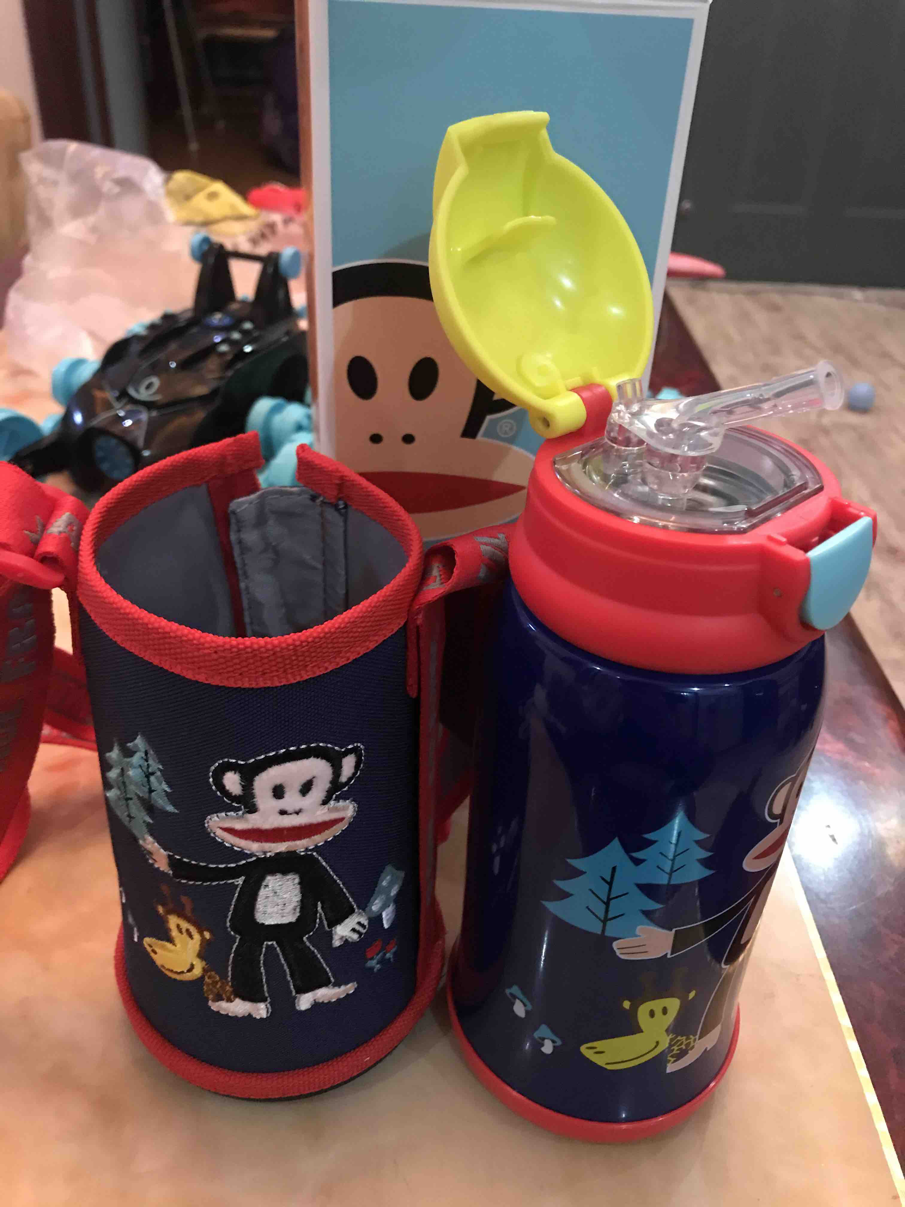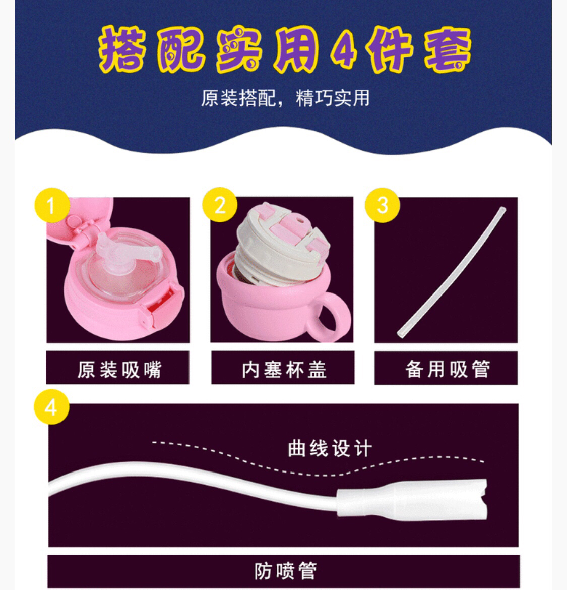 说明:好东西!正品!550ml!内含两种盖子,一种带吸管,放温水,出门宝贝可以直接喝!一种带杯子,放热水,可以倒出来喝。实测晚上9点倒入开水,早上9点喝有点烫嘴,温度有60度➕,保温效果非常好!还带个刺绣非常漂亮的套子,可以斜挎。
