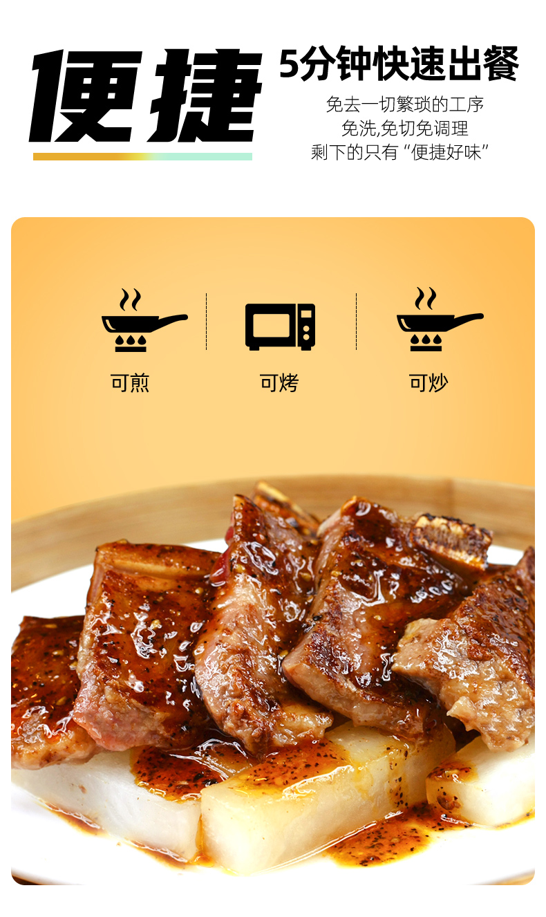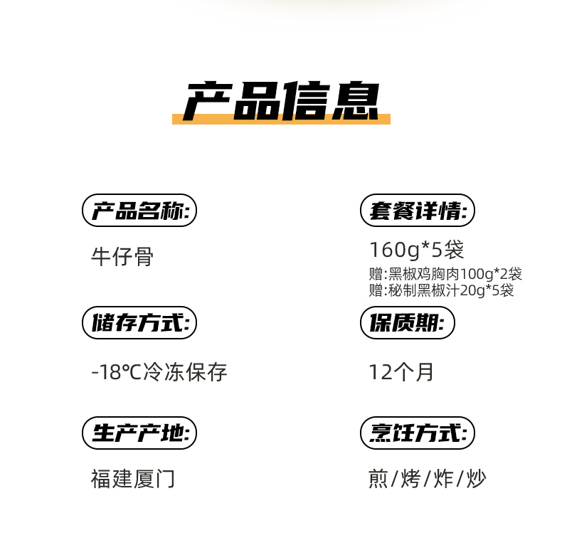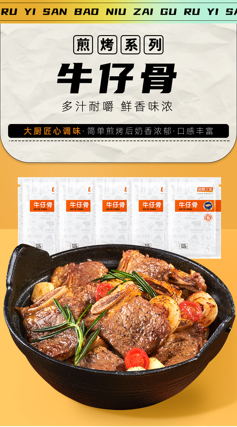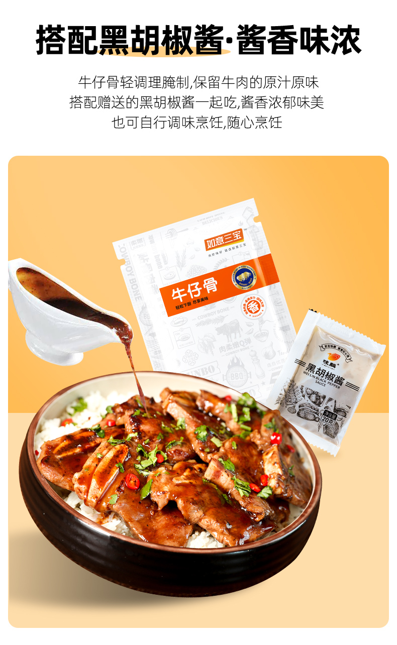 如意三宝 牛仔骨(袋装)160g*5(赠鸡胸肉100g*2+黑椒汁*5)