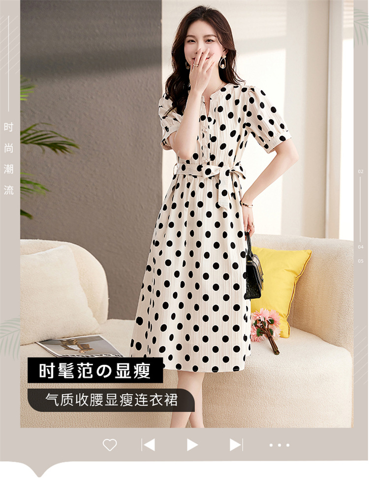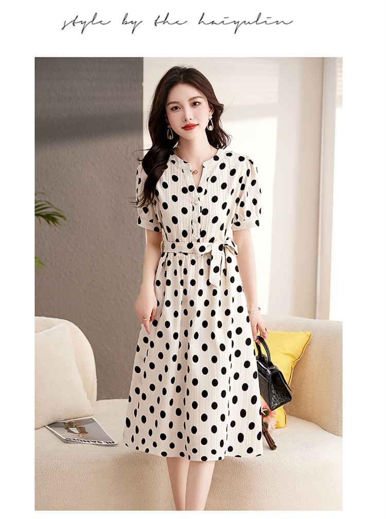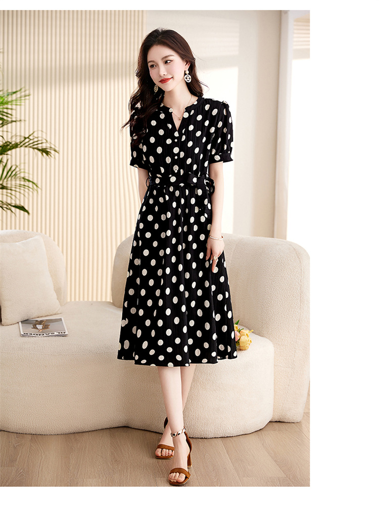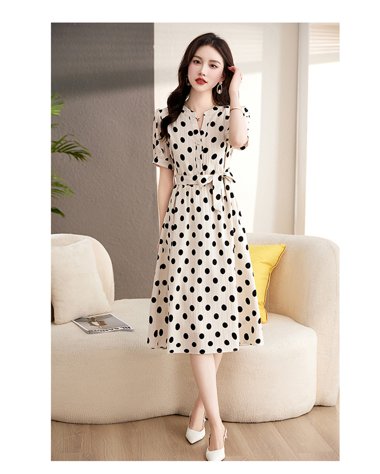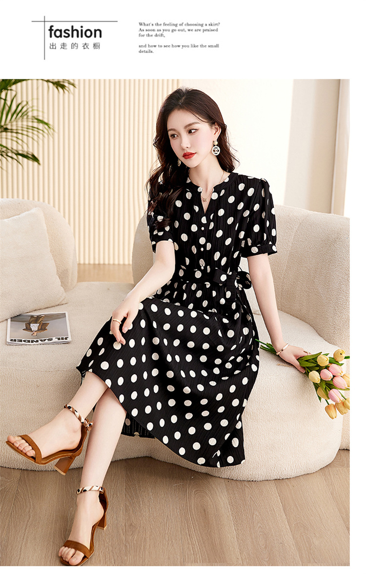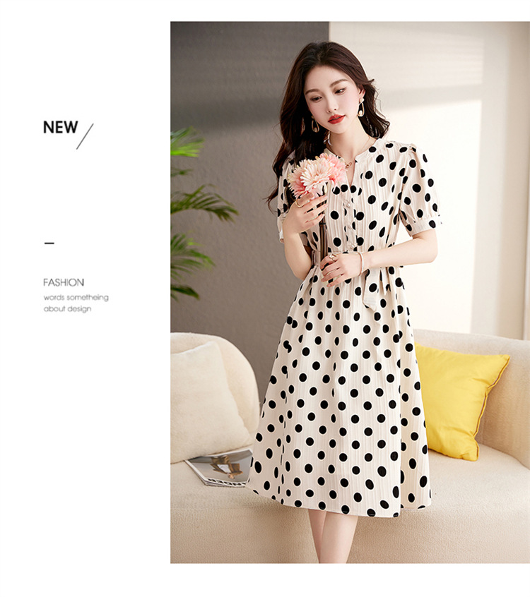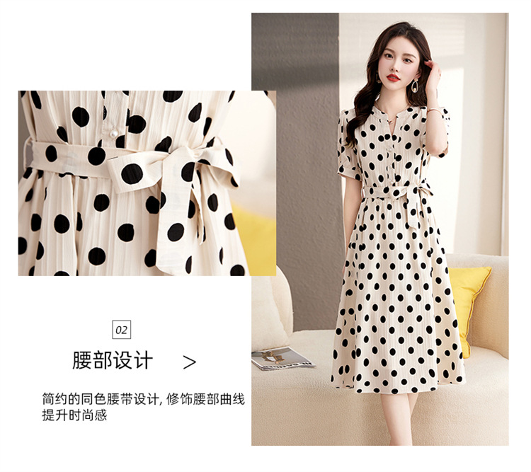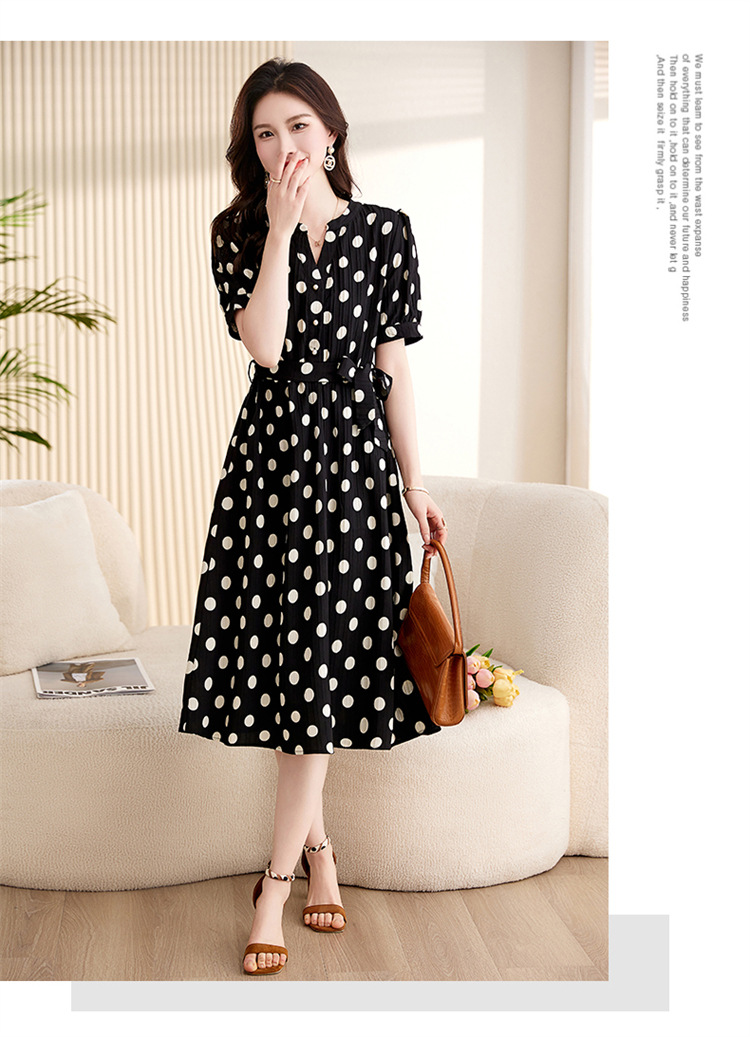 2024新款夏季短袖长款宽松系带高腰雪纺波点连衣裙 XXL6805