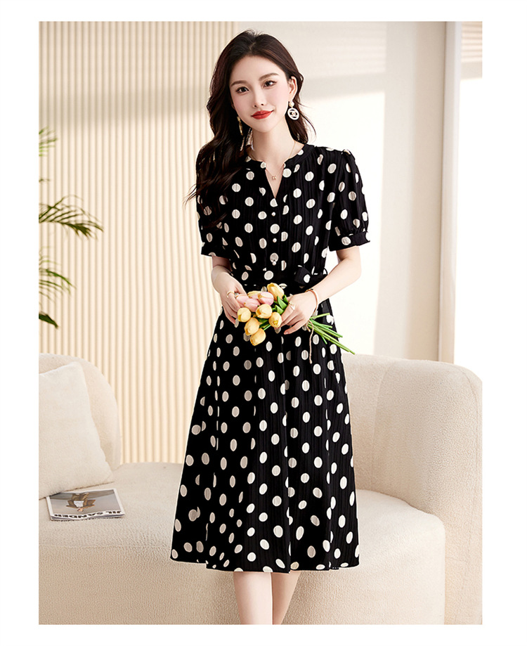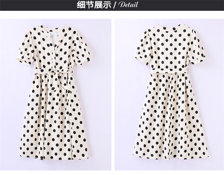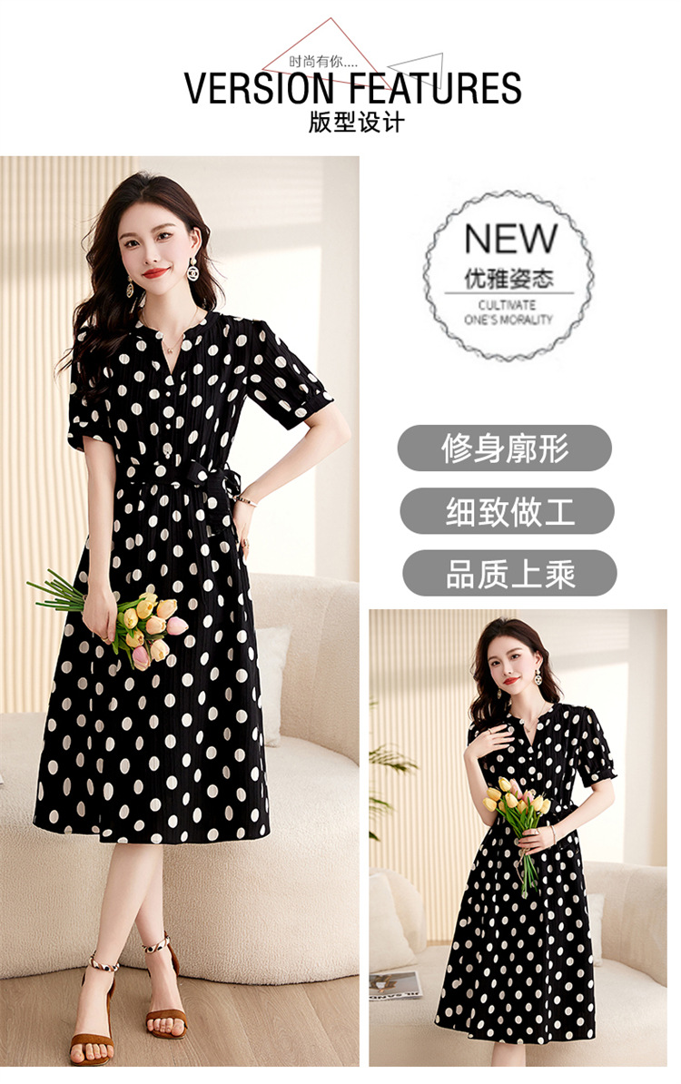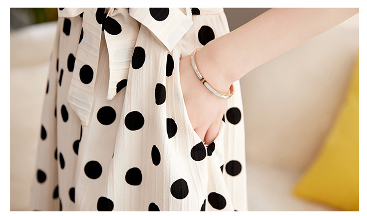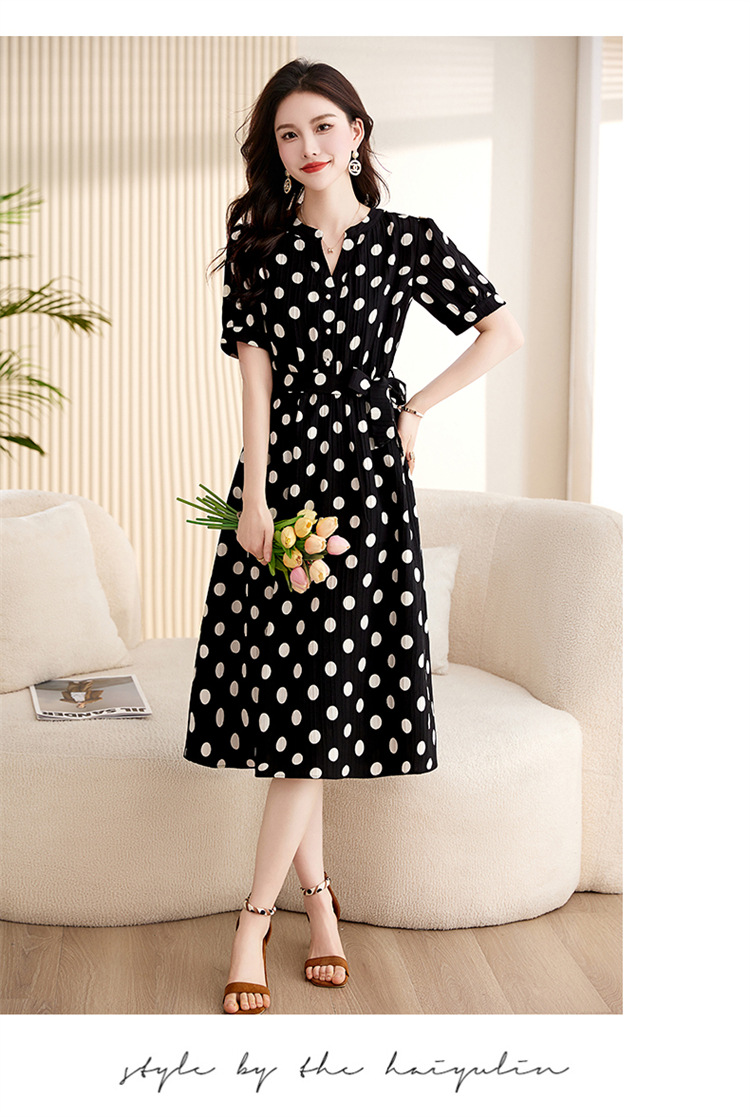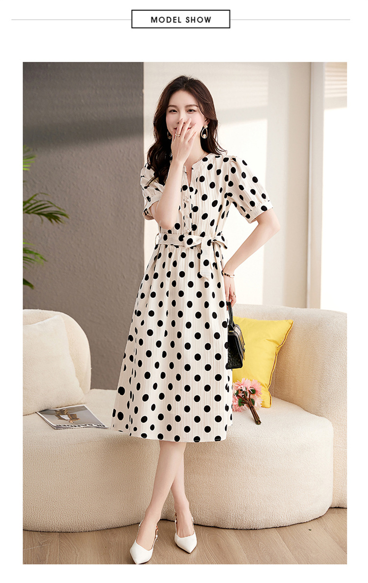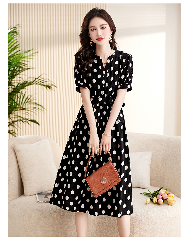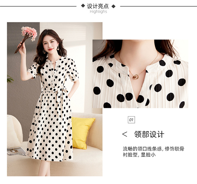 2024新款夏季短袖长款宽松系带高腰雪纺波点连衣裙 XXL6805