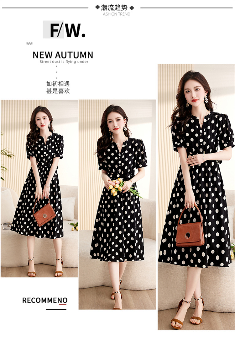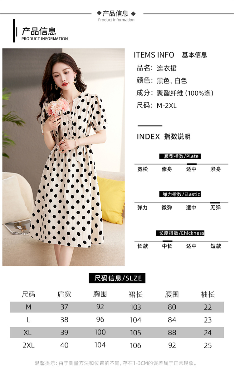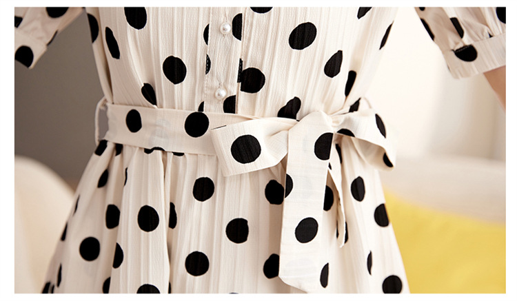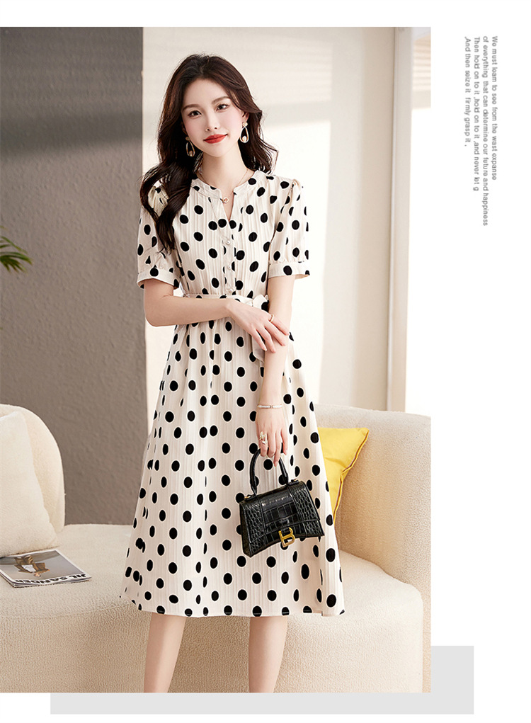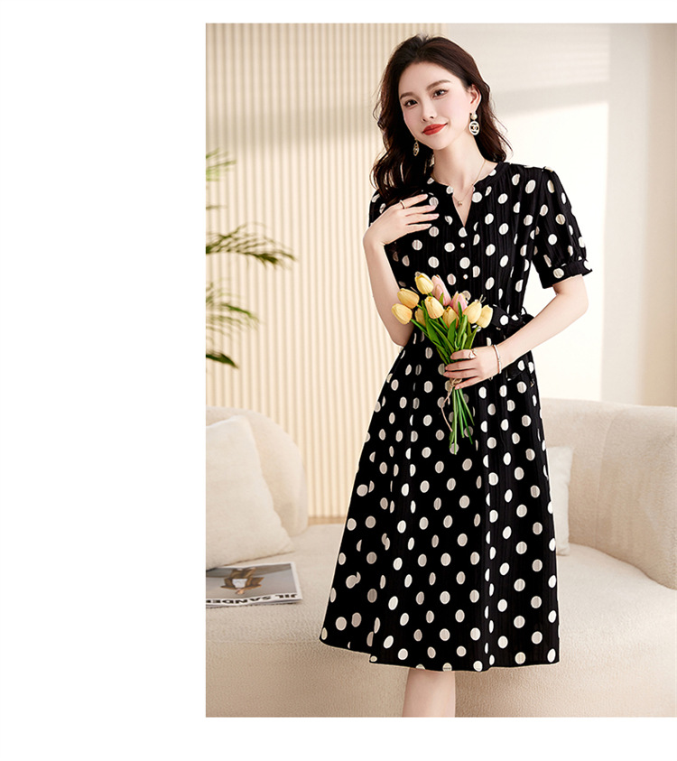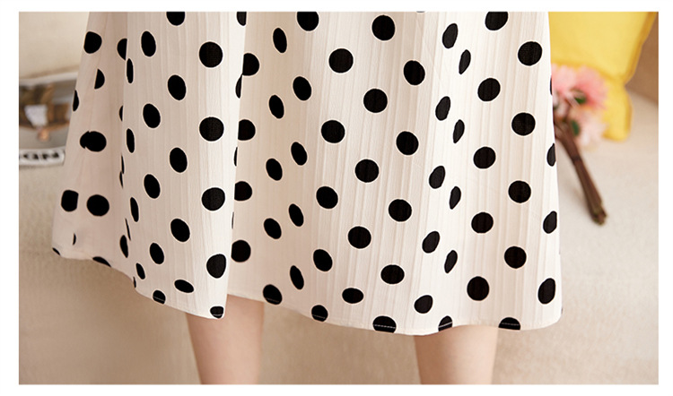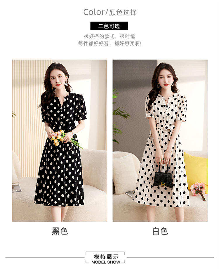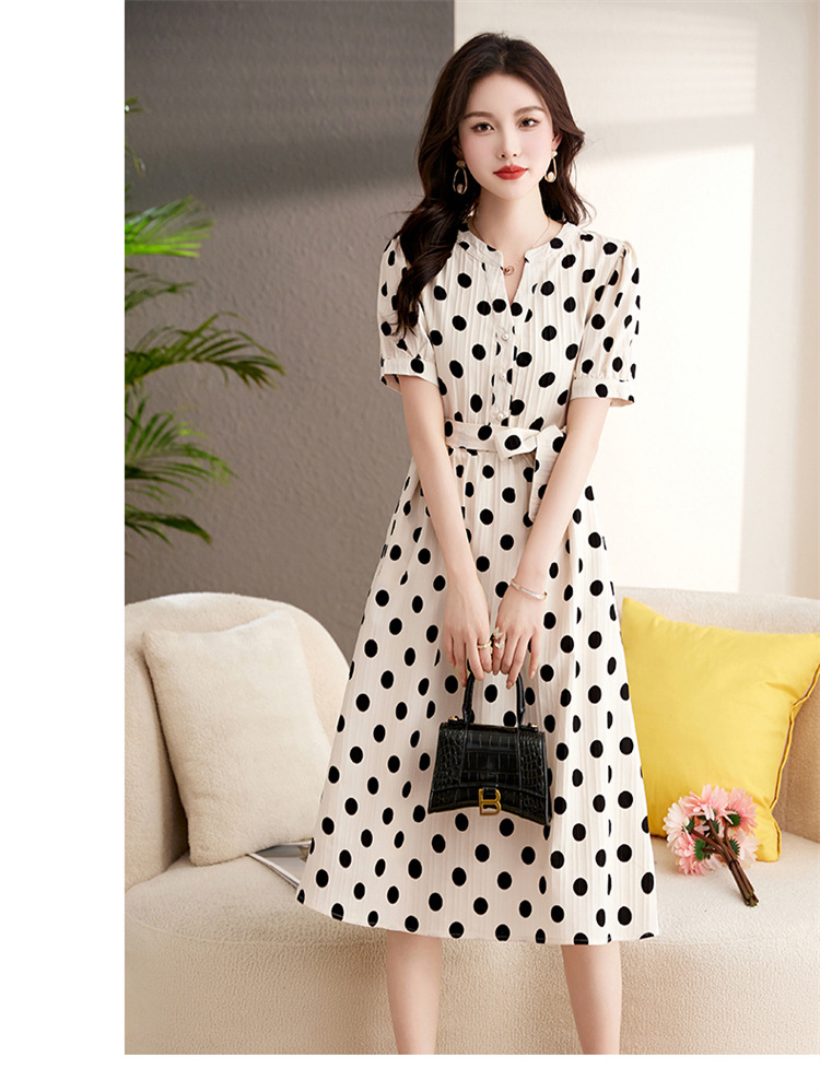 2024新款夏季短袖长款宽松系带高腰雪纺波点连衣裙 XXL6805