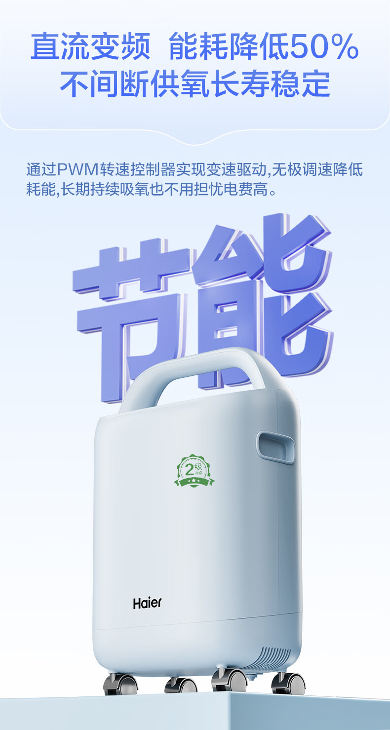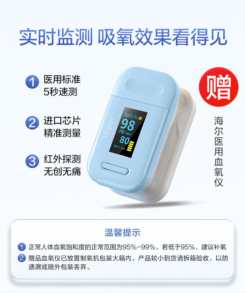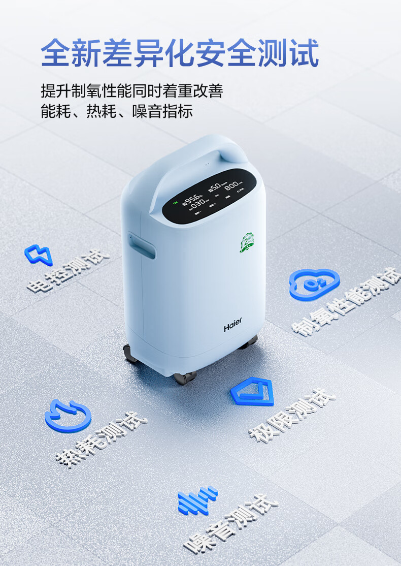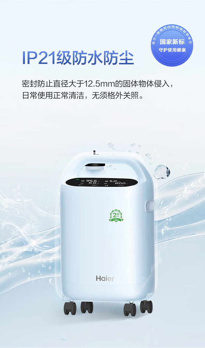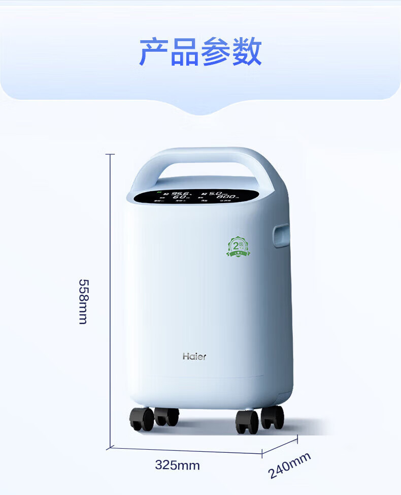 海尔(Haier)5L升制氧机家用老人医用级吸氧机孕妇呼吸雾化超轻音507W