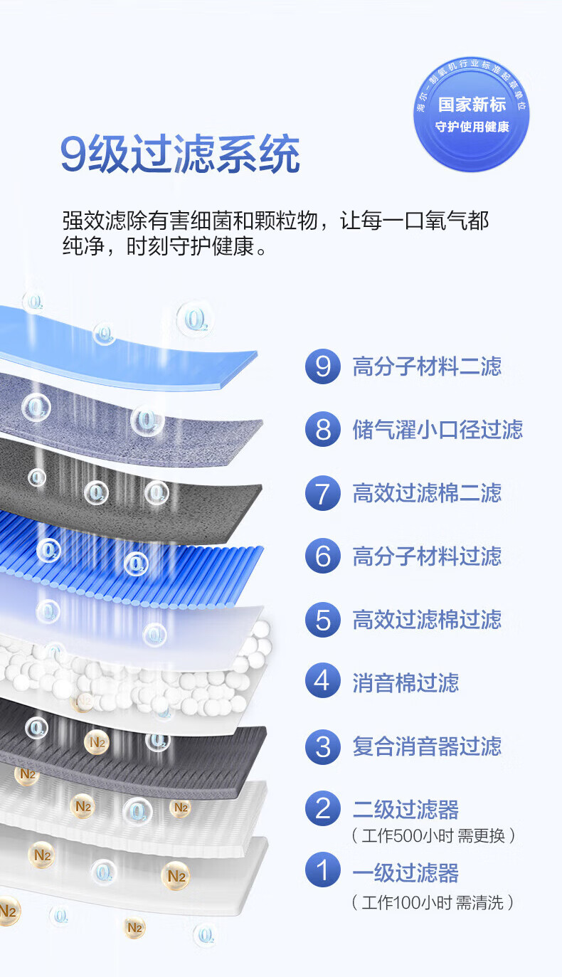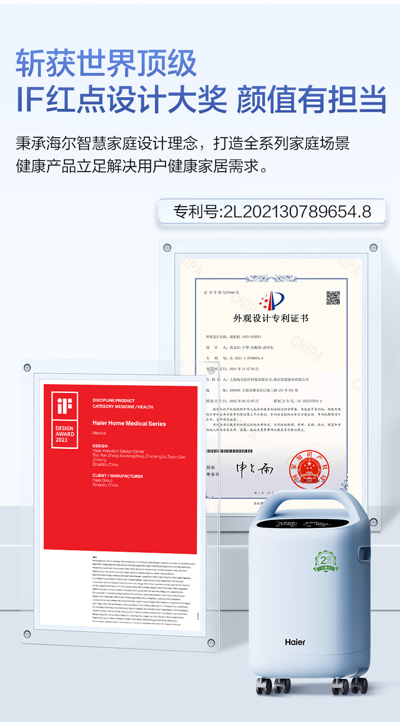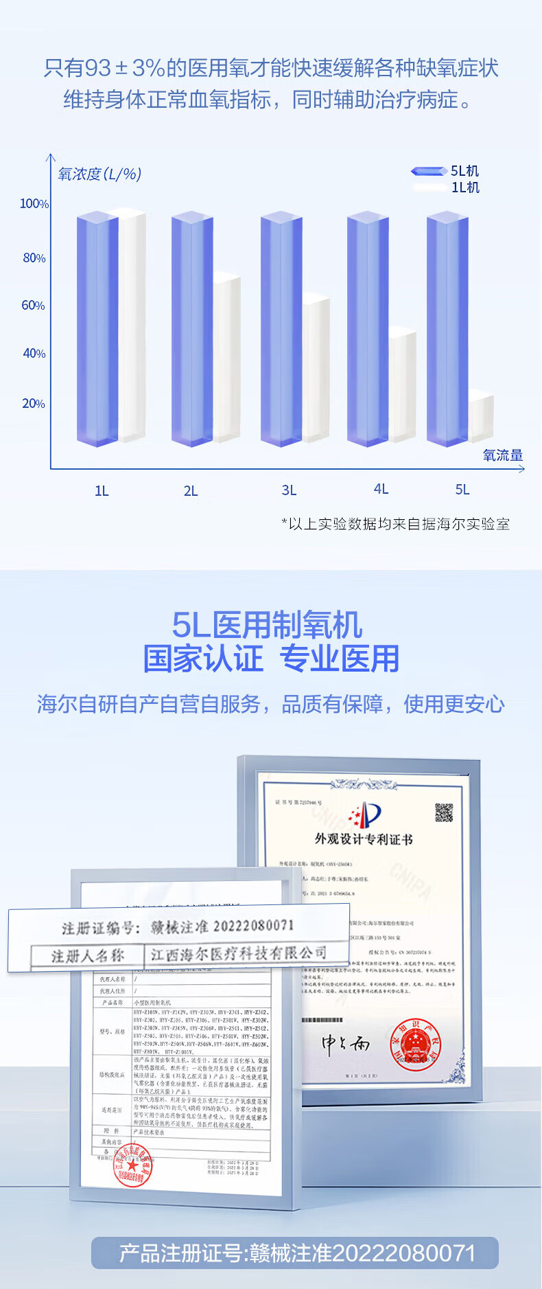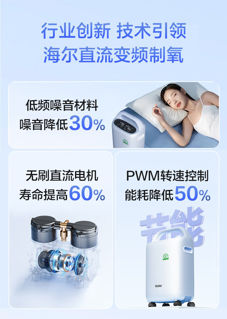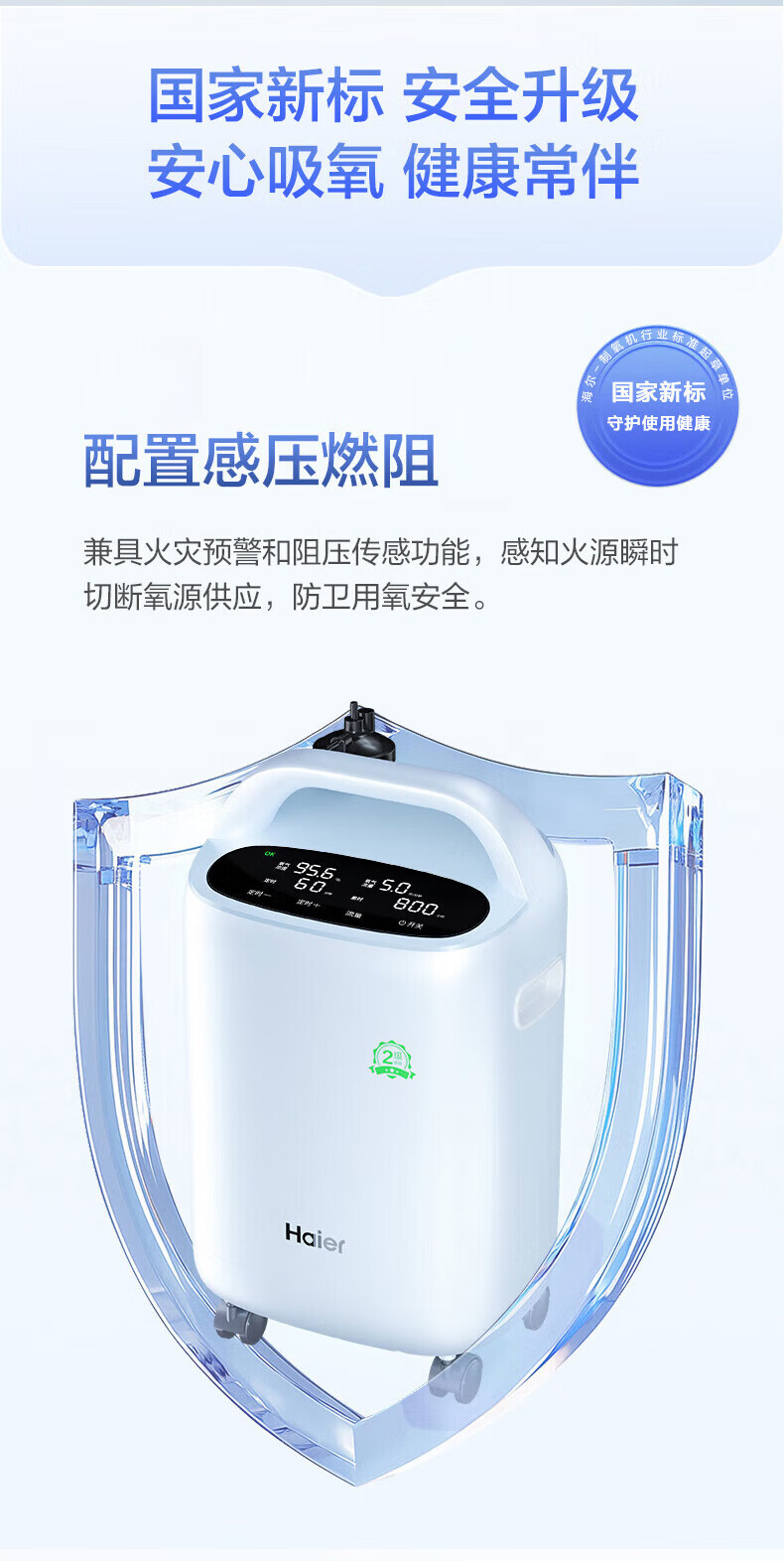 海尔(Haier)5L升制氧机家用老人医用级吸氧机孕妇呼吸雾化超轻音507W