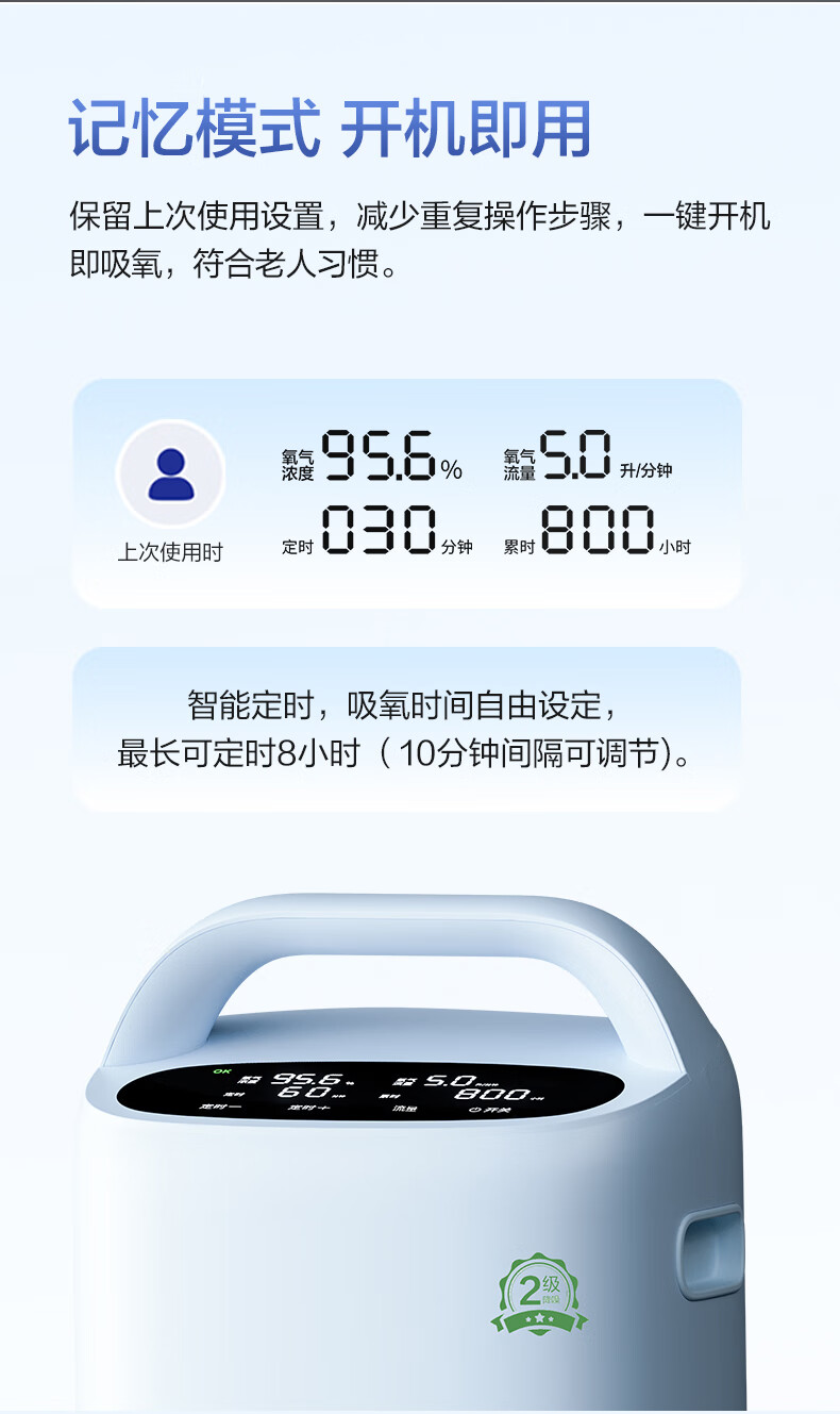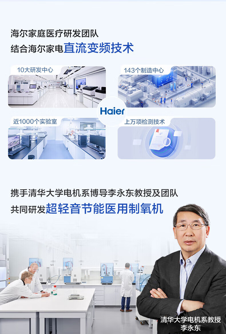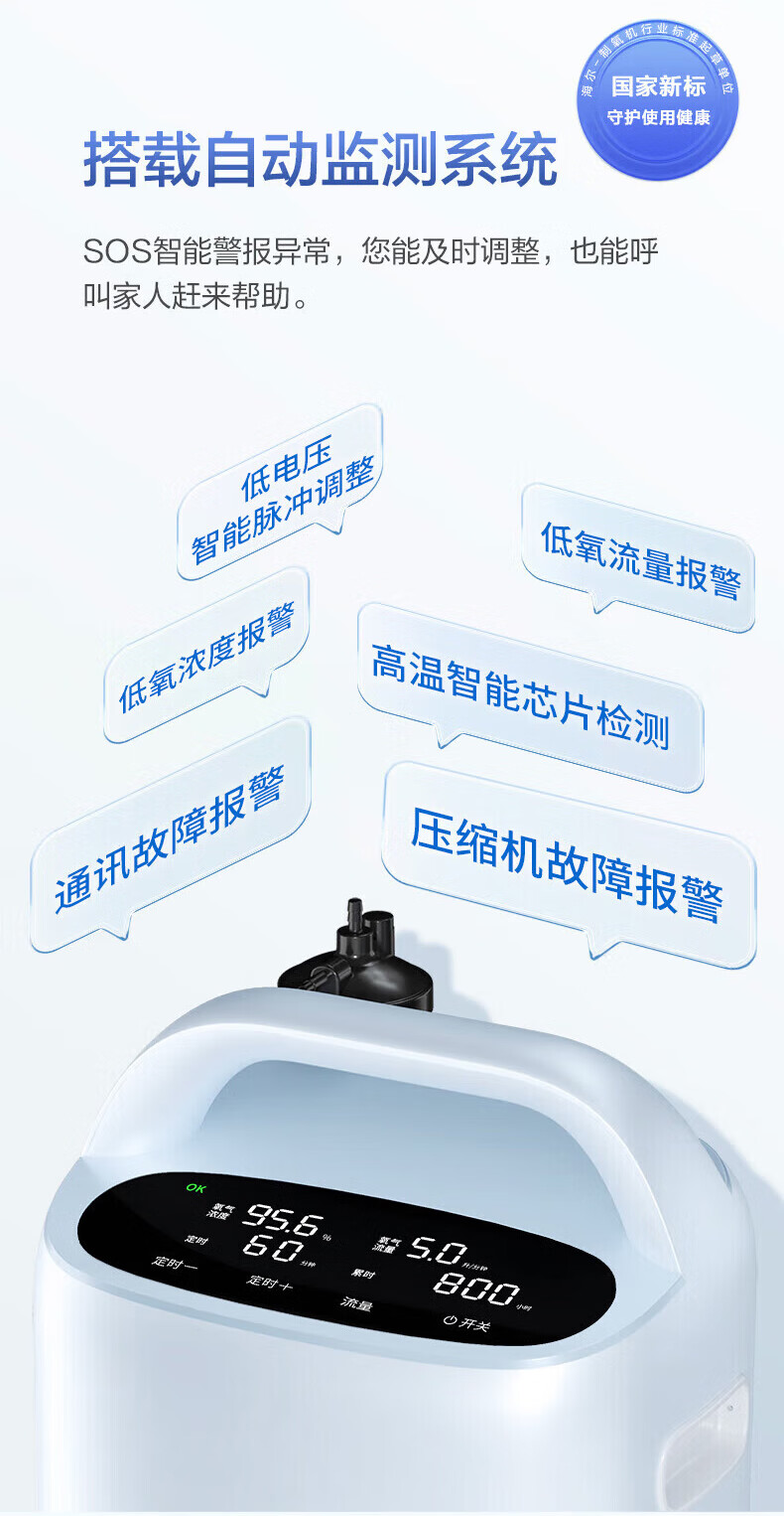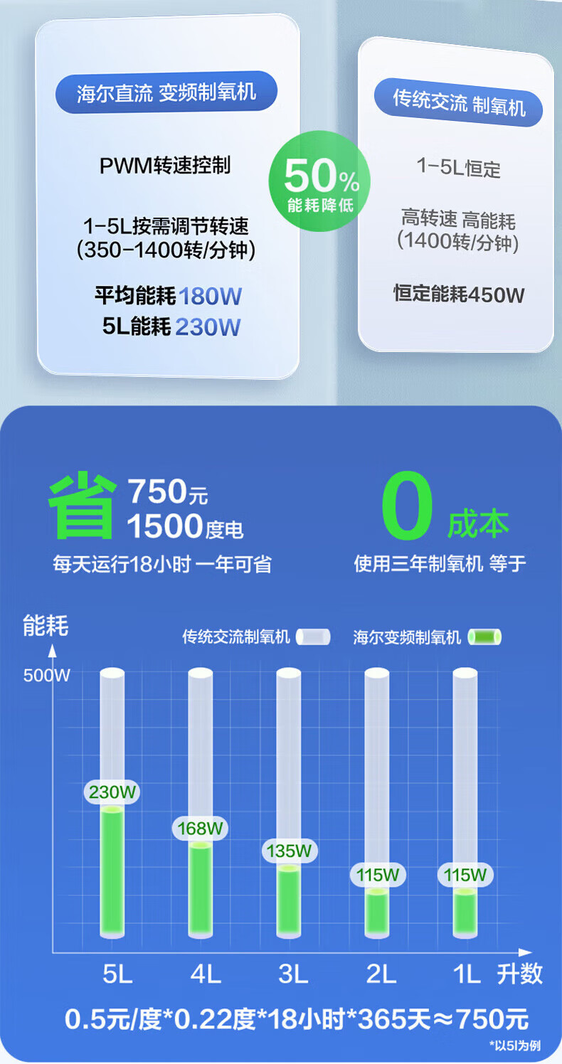 海尔(Haier)5L升制氧机家用老人医用级吸氧机孕妇呼吸雾化超轻音507W