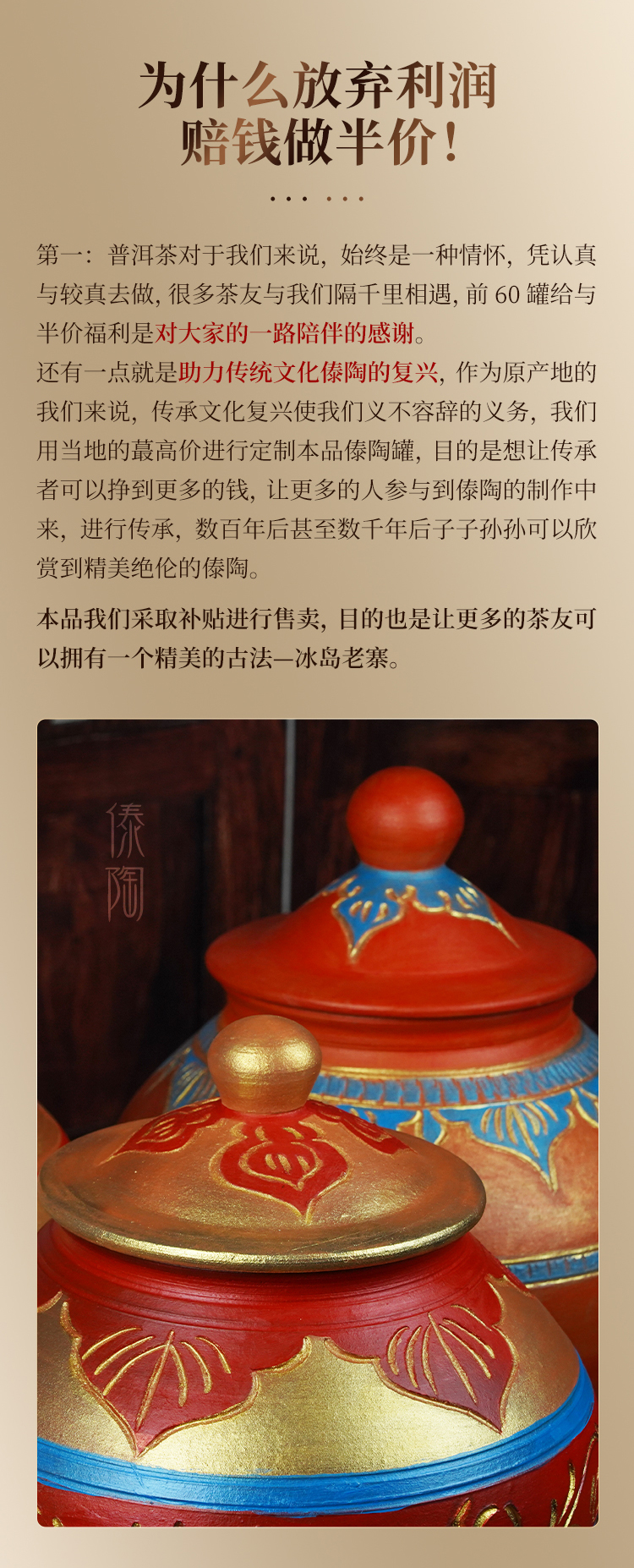 【十年陈傣陶冰岛老寨】2015年茶后冰岛老寨与云南非遗的完美结合,赔钱补贴助理傣陶复兴,每罐净含量:800克/罐