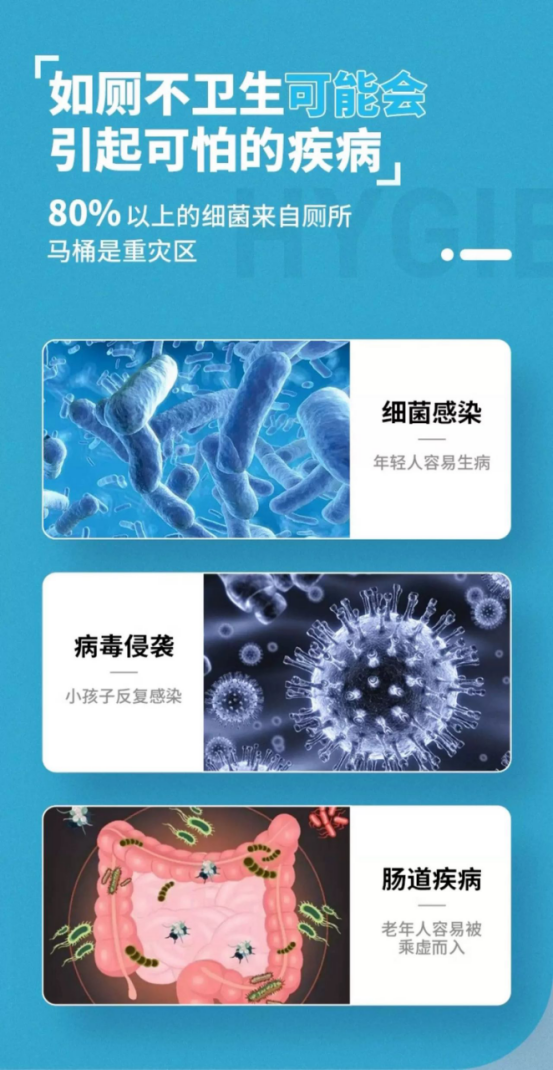 专研活性配方,99.99%除菌抑菌 时间久了,还会导致各种疾病 腹泻、妇科疾病、呼吸道疾病等 一定要重视起来! 定期打扫卫浴空间很有必要~ 这款洁厕液,对大肠杆菌 和金黄色葡萄球菌的抑菌率高达99.99%❗ 深层瓦解菌株,守护全家人健康