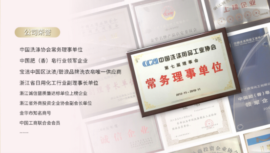 知名品牌,品质值得信赖 露丝成立1991年,为浙江地方性著名商标,2021年品牌全面迭代。 中国洗涤协会常务理事单位,江浙最大的日化集团之一。 日产能洗衣皂300吨、洗衣液1000吨,洗衣凝珠600万颗。 浙江中西部最大物流企业,自有4条铁路专线,触及全国分拨中心180个。