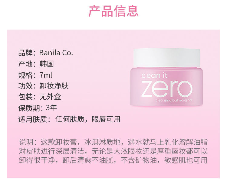 【爆款超低价预售 急单慎拍】芭妮兰ZERO卸妆膏小样7ml 脸部眼唇清洁卸妆水乳油女 深层清洁