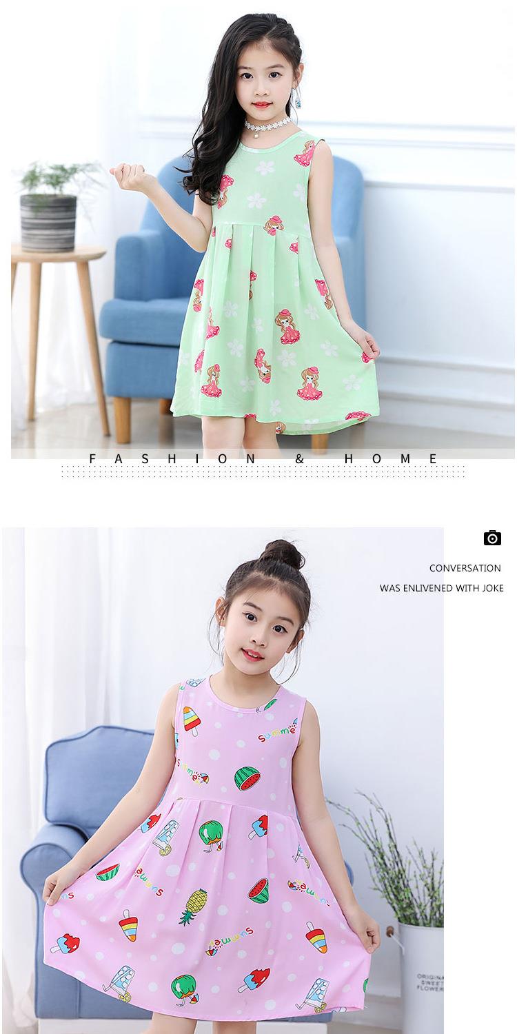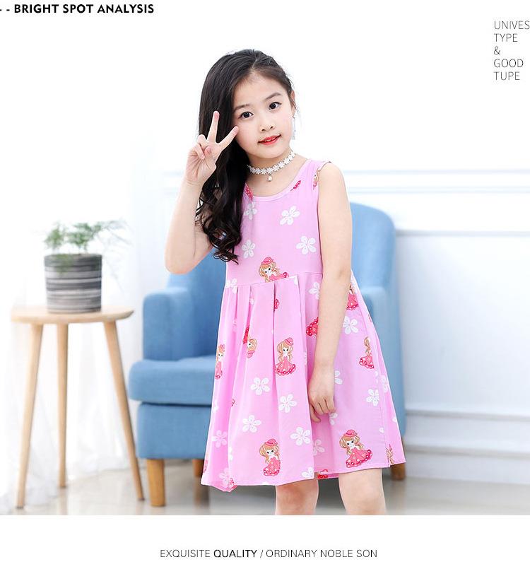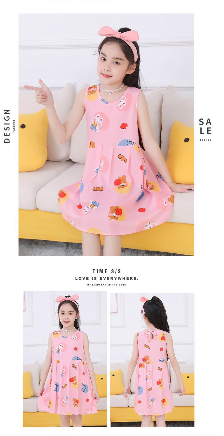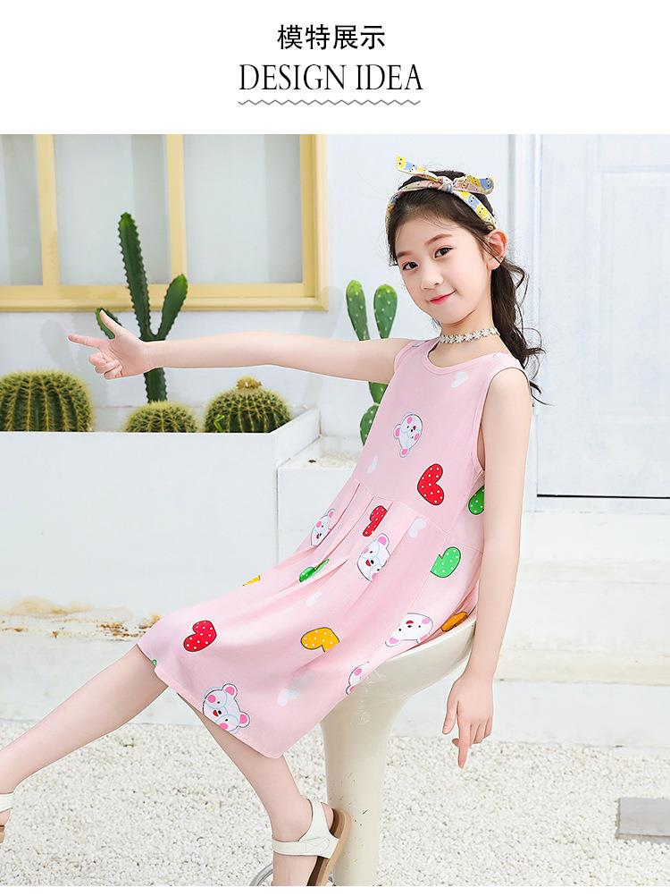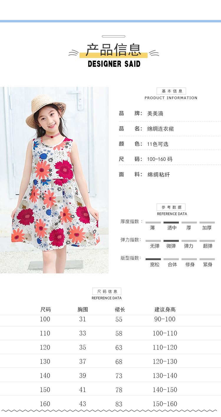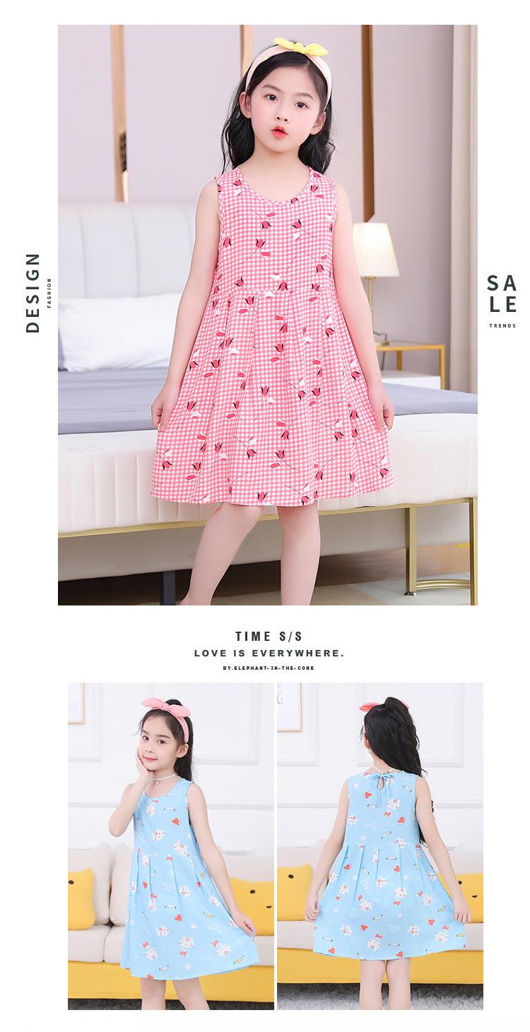 夏季新款印花中小童背心连衣裙韩版 凉爽绵绸女童连衣裙一件代发