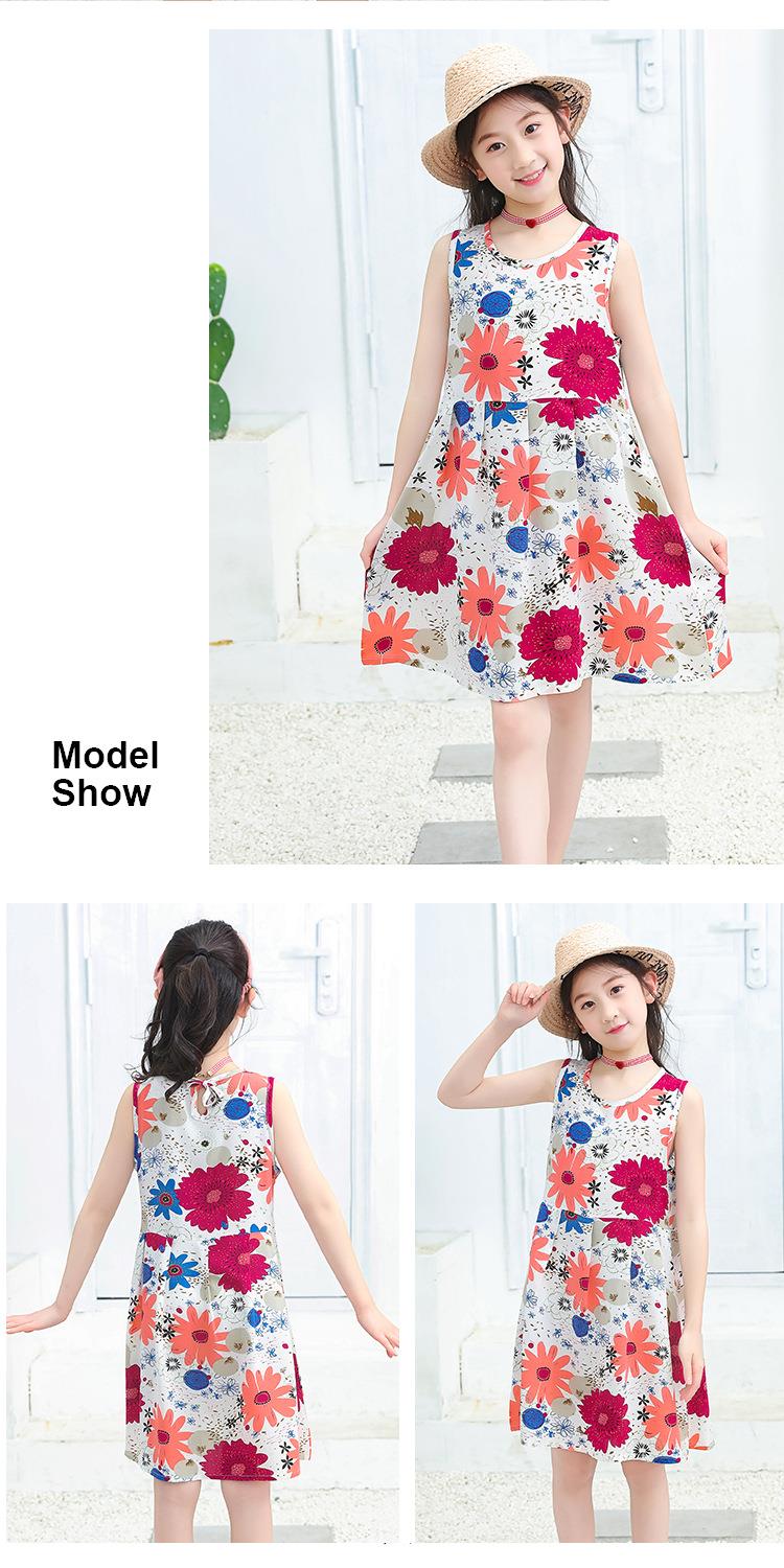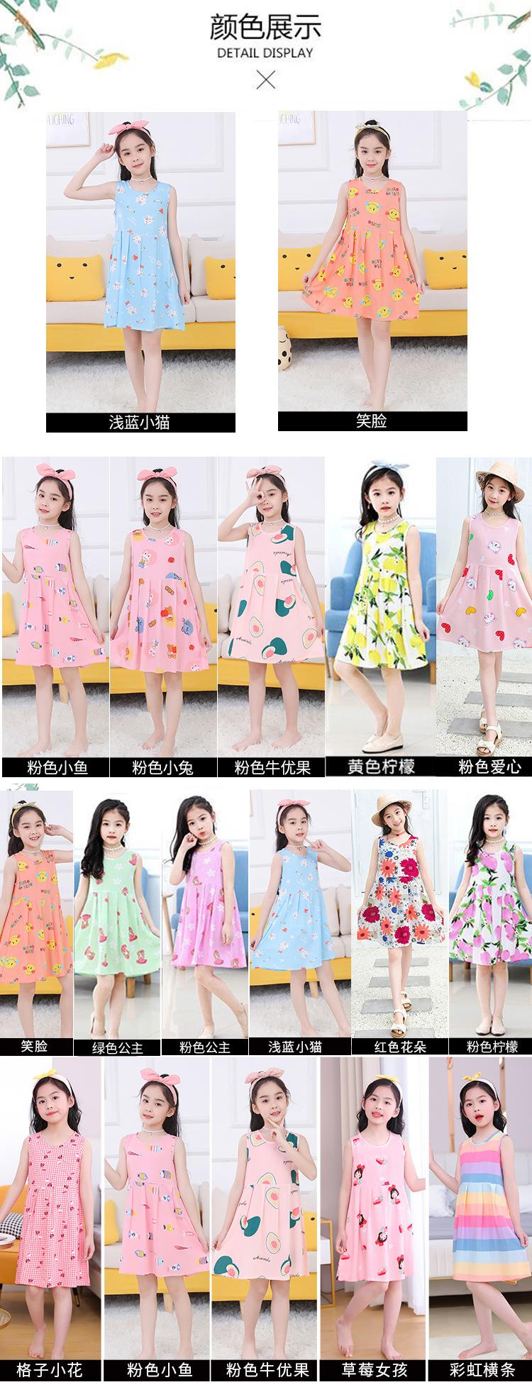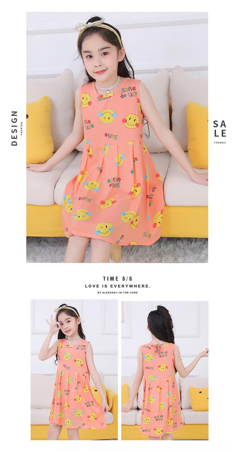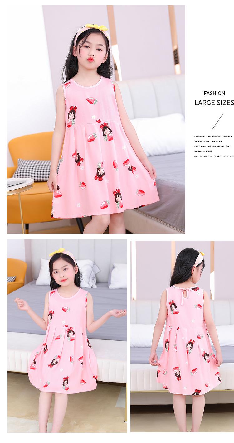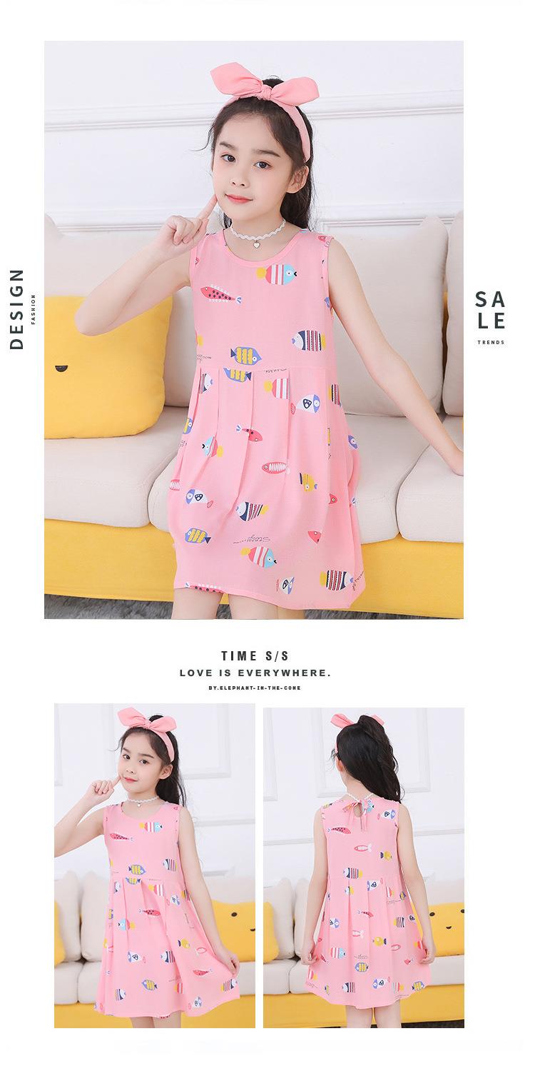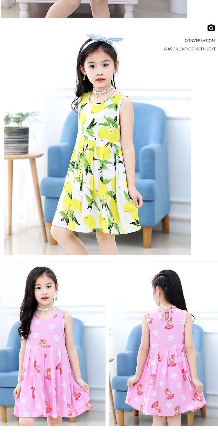 夏季新款印花中小童背心连衣裙韩版 凉爽绵绸女童连衣裙一件代发