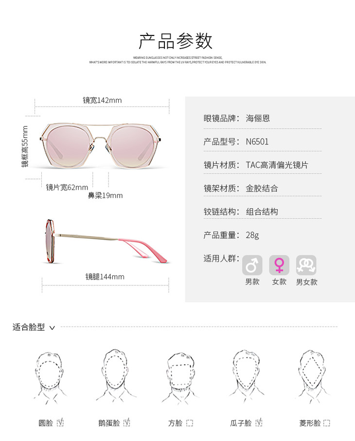 海俪恩墨镜女明星潮明星同款偏光眼镜圆脸太阳镜女士N6501