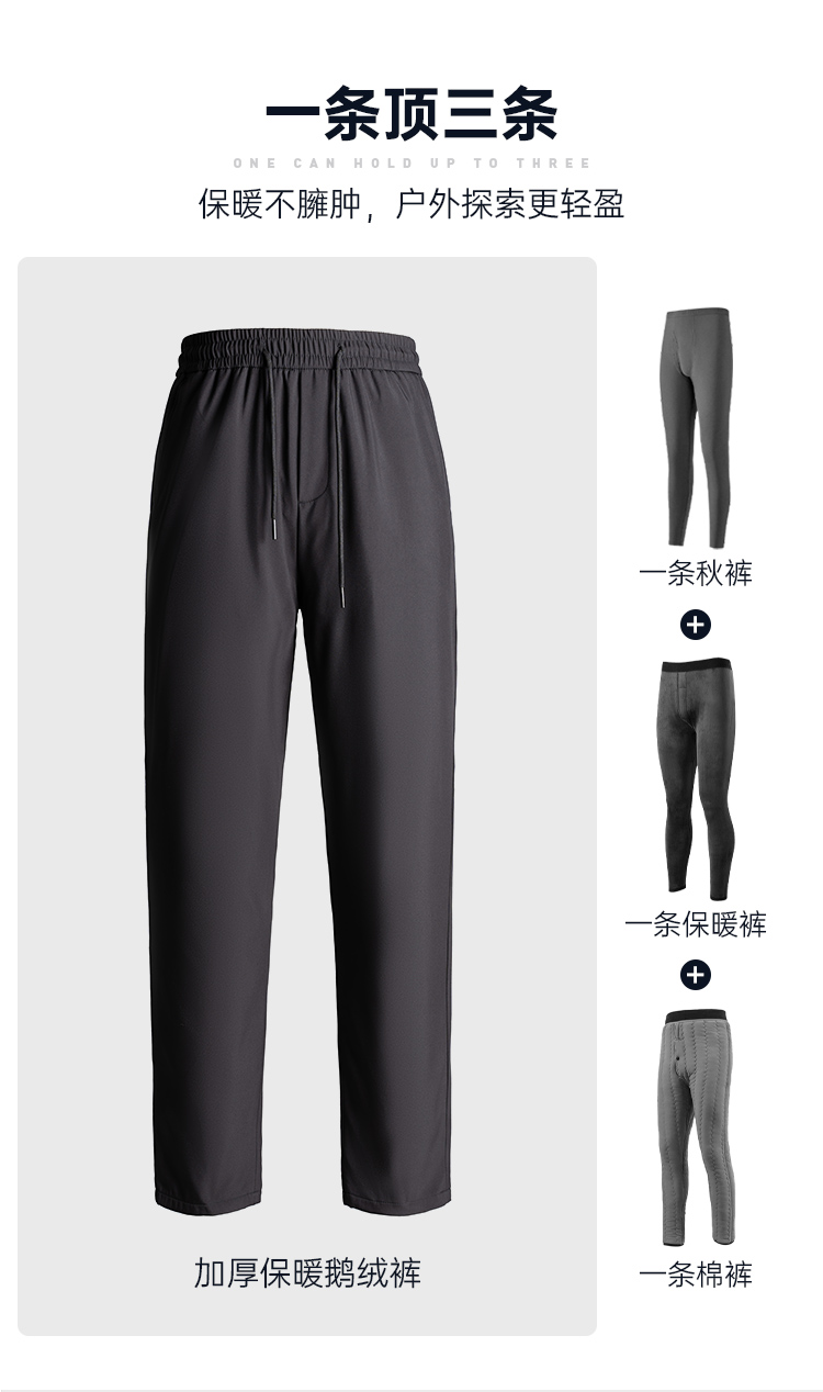 【实付满399送保温杯】【户外加厚保暖鹅绒裤】防泼水休闲加绒裤加厚保暖羽绒长裤 KT422