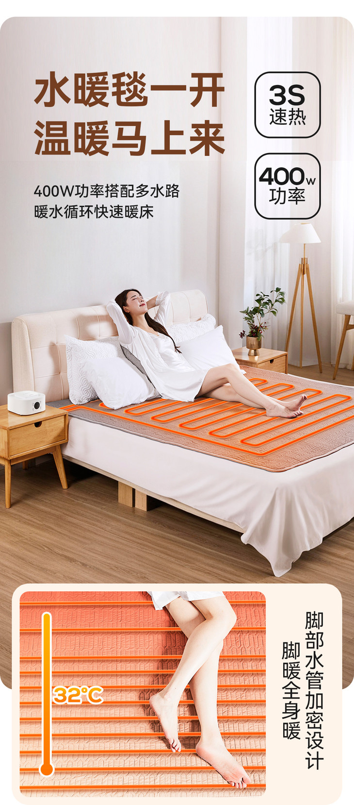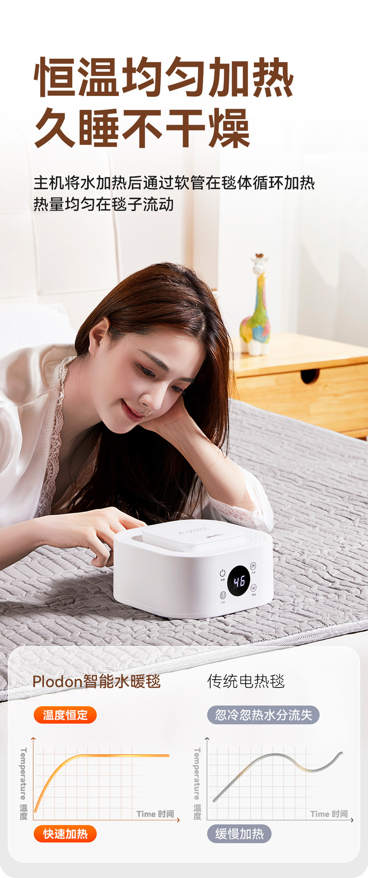 浦利顿新一代水暖毯。 8大核心亮点 伴您温暖舒睡一整晚