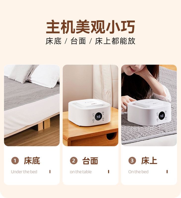 智能恒温睡眠,缺水报警装置, 于水传暖,水润不干燥,不上火, 温度始终如一,拒绝忽冷忽热,细致控制睡眠温度。