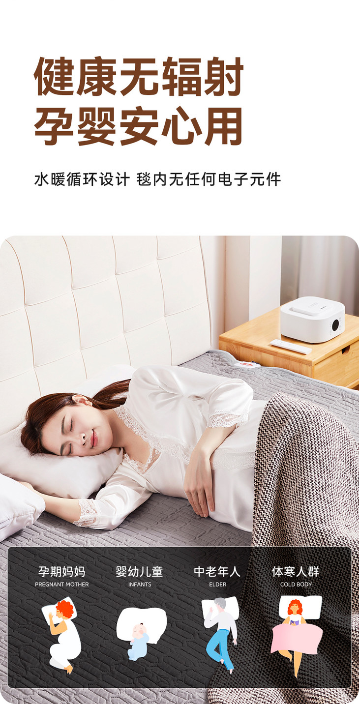 广域调温,孕妇、婴幼儿、中老年、体寒人群, 一床好毯,使用不同人群。