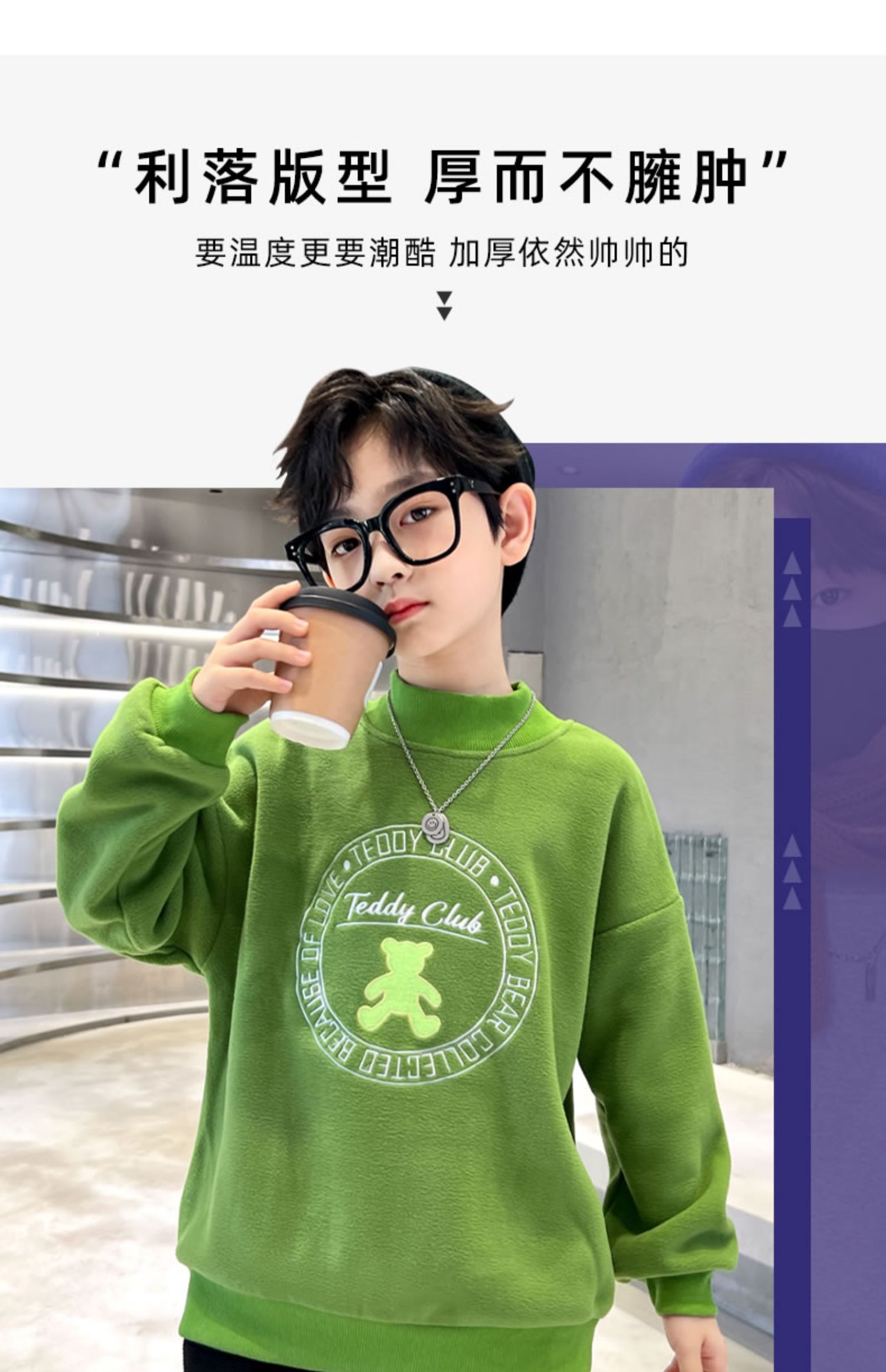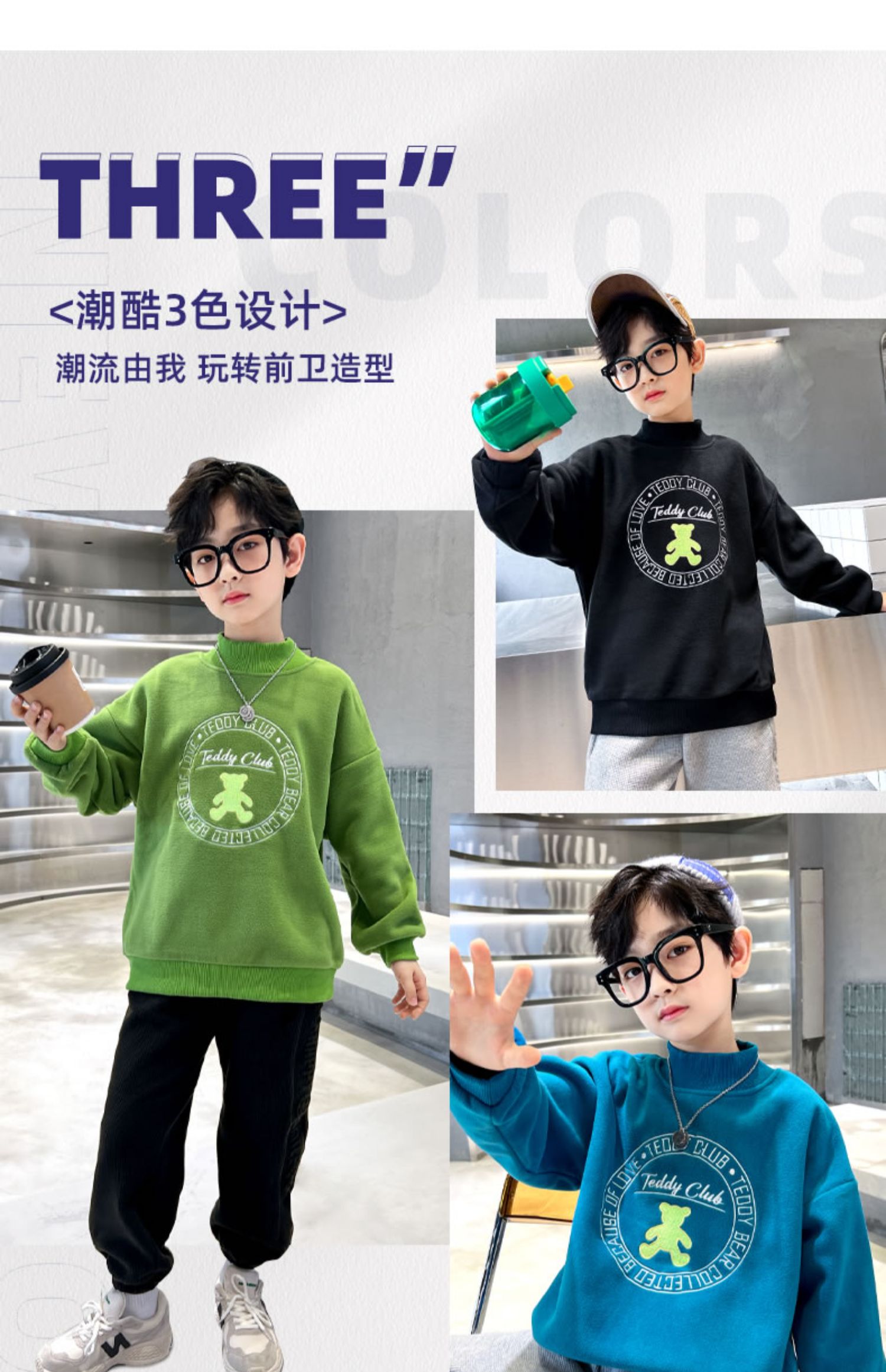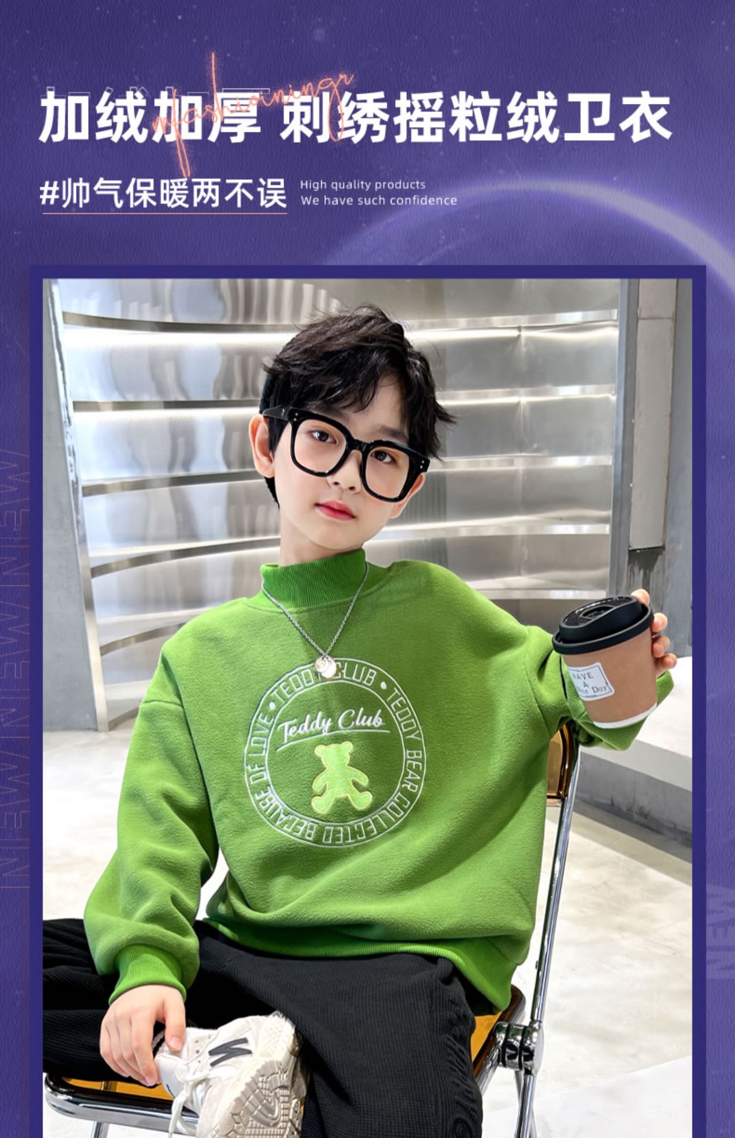 男童加绒加厚卫衣儿童冬季男孩摇粒绒中大童秋冬款一体绒保暖上衣
