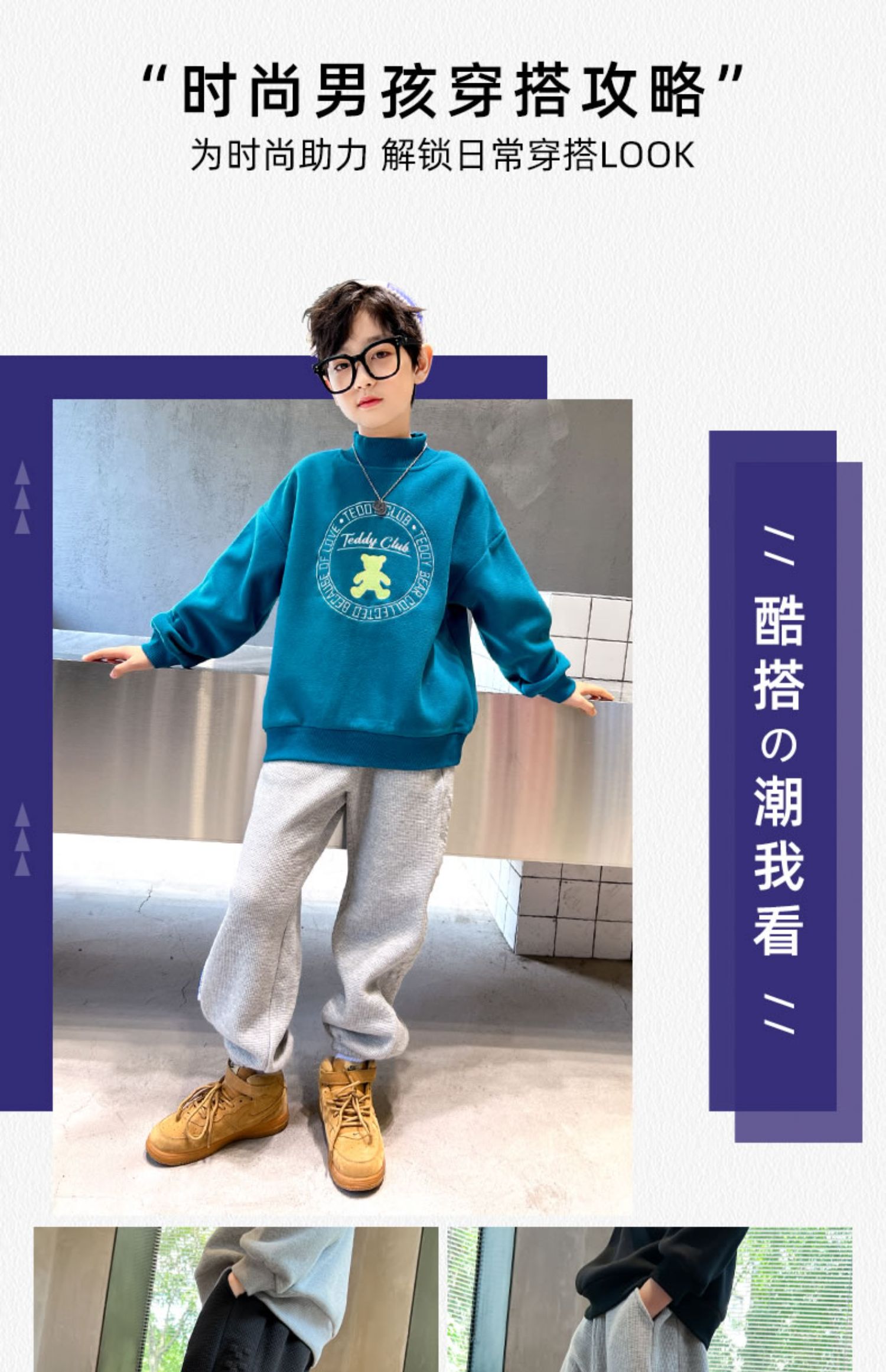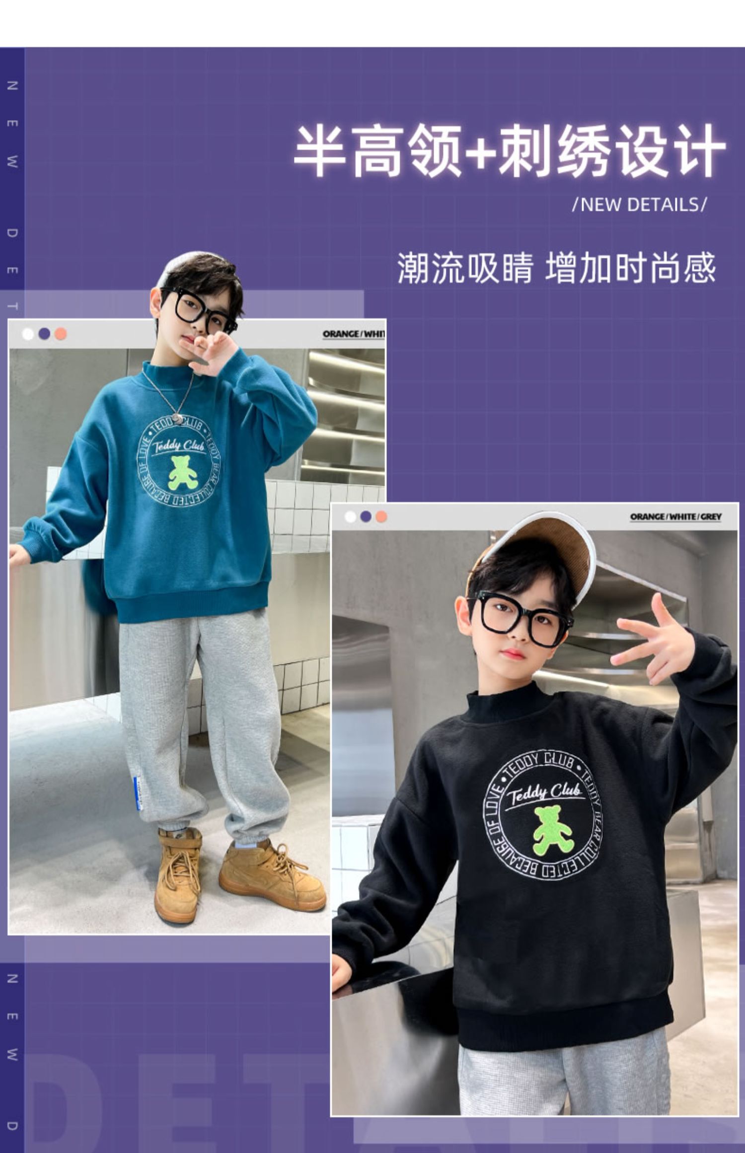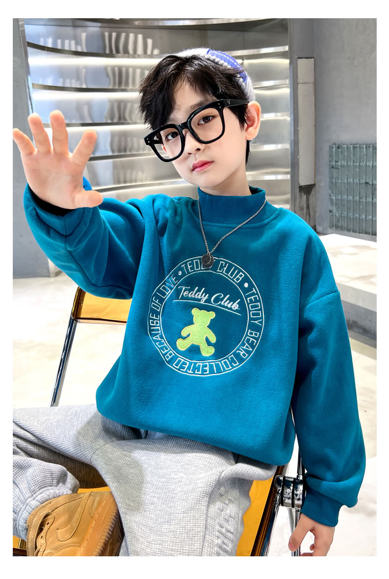 男童加绒加厚卫衣儿童冬季男孩摇粒绒中大童秋冬款一体绒保暖上衣