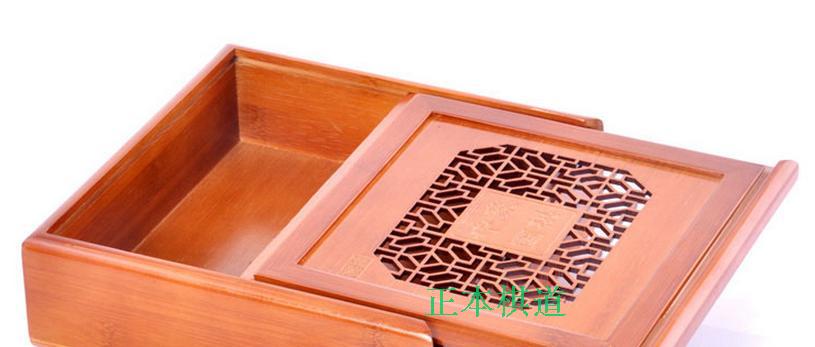 【产 品工艺】由于传统生活中人们喜欢使用木头制品,棋具也不例外,但是当今木材资源日益减少,成片森林已变成秃山,我们生活的地球家园环境日渐严峻,本店为了 响应绿色号召,开始主推全竹系列棋盘,希望有朝一日,楠竹棋盘能够得到广大棋友的认可,虽然楠竹材质没有木纹那么好的视觉效果,但是竹材质相比木头而言, 表面硬度高是其最大的特点。竹子因为是植物粗纤维结构,它的自然硬度比木材高出一倍多,而且不易变形理论上的使用寿命达20年。稳定性上,竹材质收缩和膨 胀要比实木地板小。竹材的弯曲强度、抗拉强度值约为木材的两倍以上,所以使用竹材质做外壳比使用木料要更加的有优势。