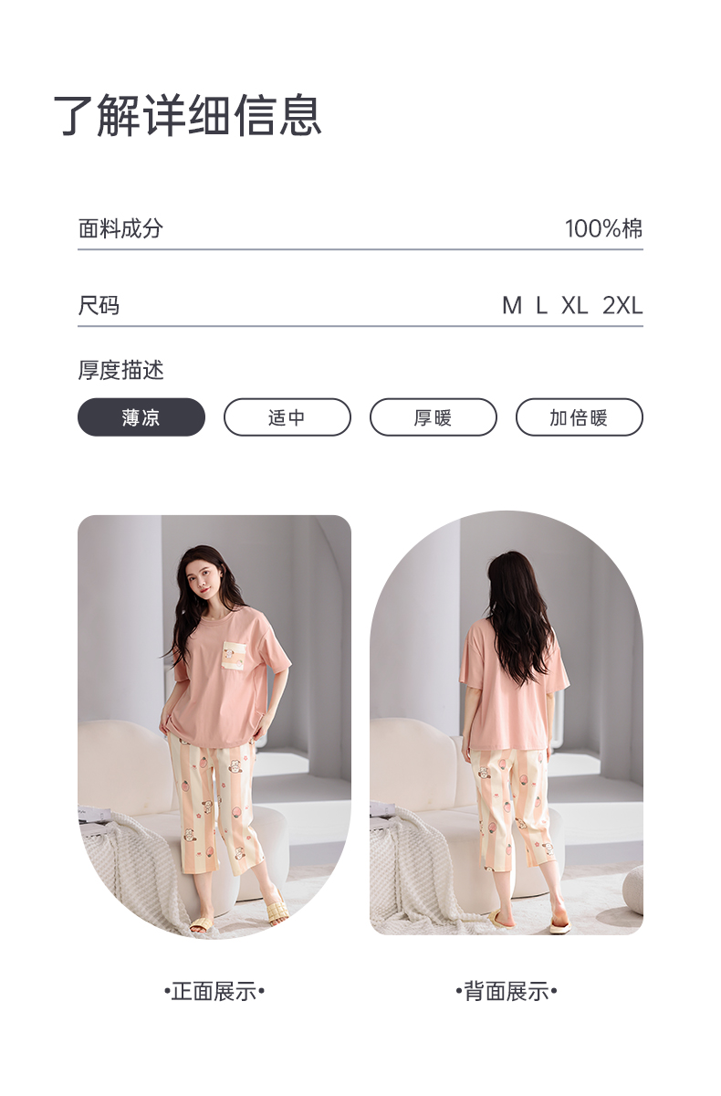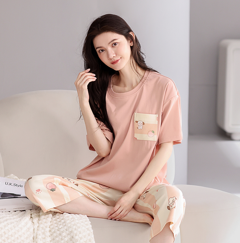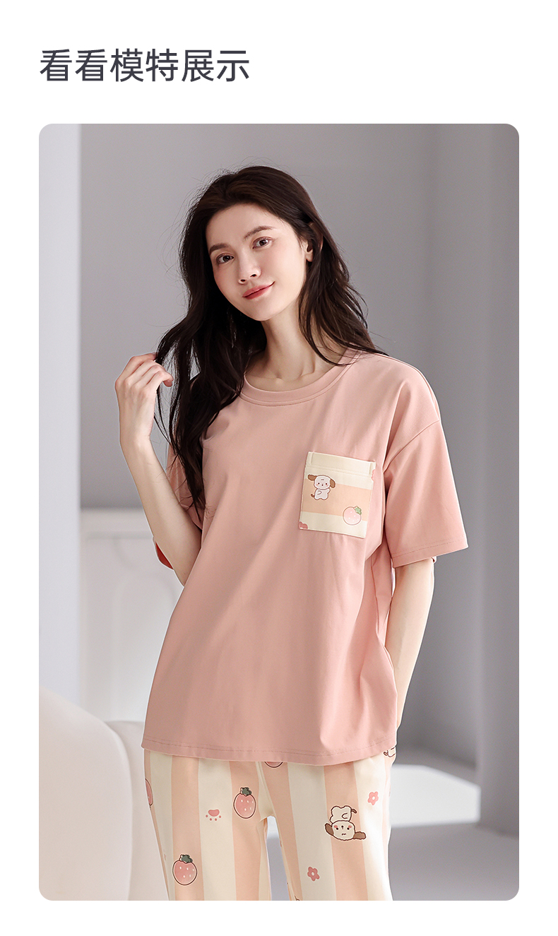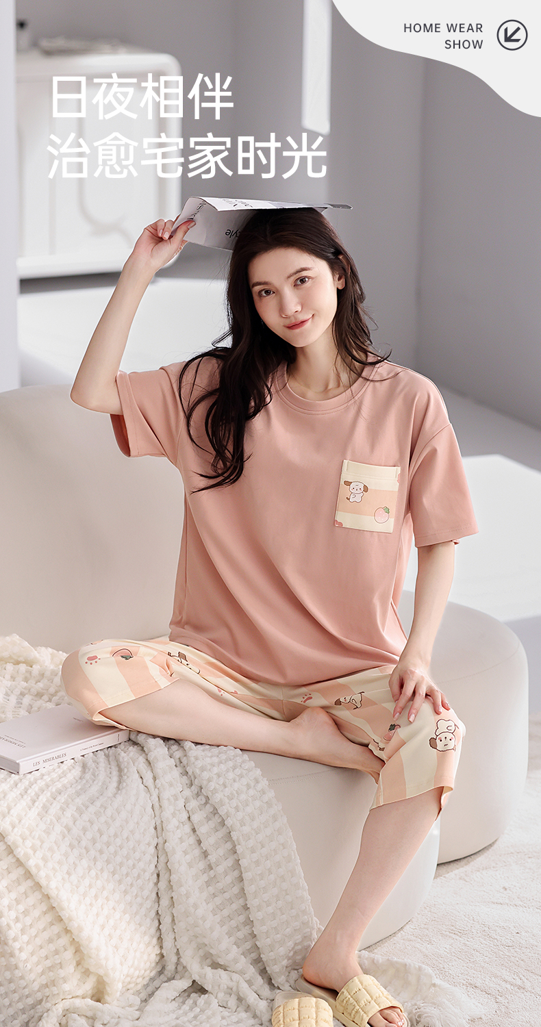 芬腾可外穿家居服睡衣女士夏季短袖透气两件套头套装大码舒适全棉