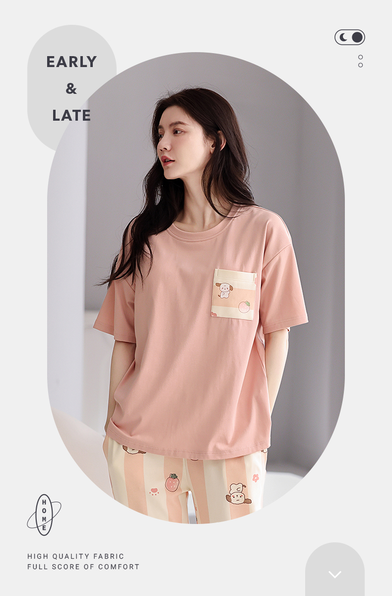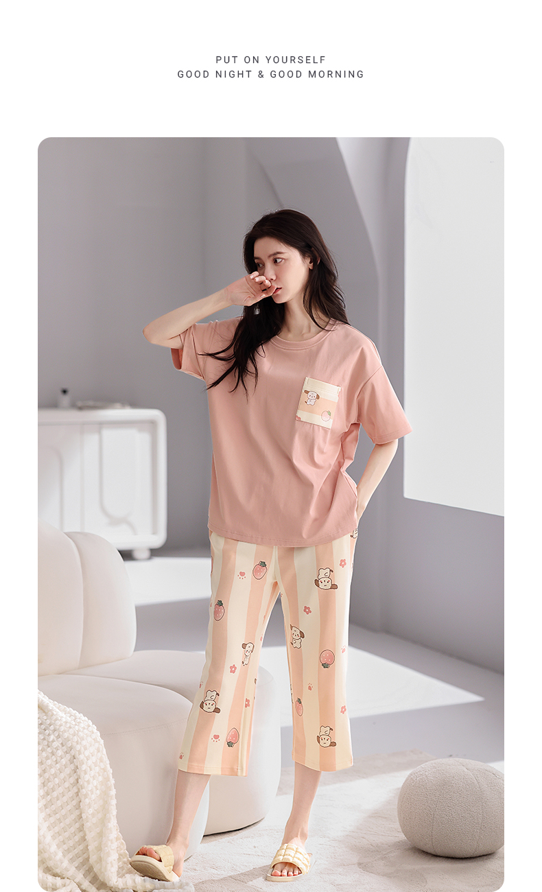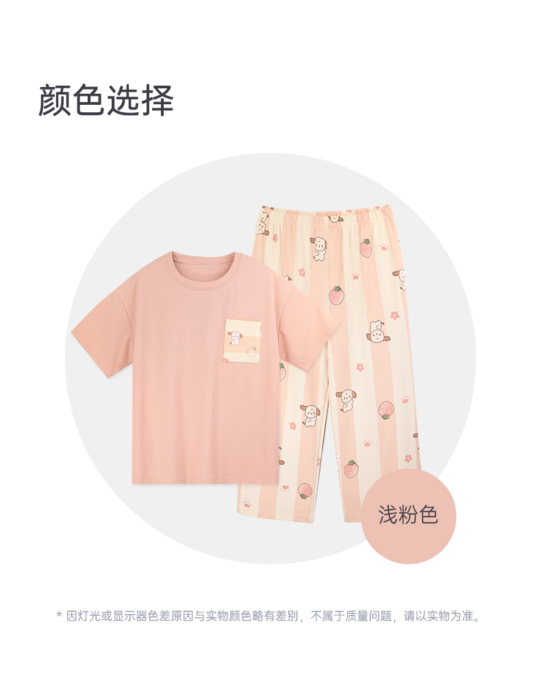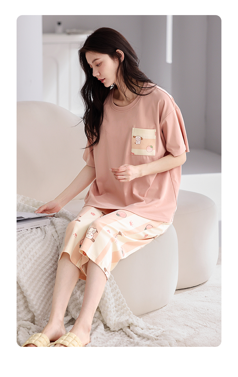 芬腾可外穿家居服睡衣女士夏季短袖透气两件套头套装大码舒适全棉