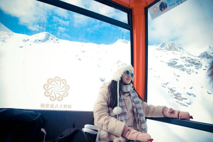 达古冰川索道,这个索道是我坐过最长的,(价格也贵)来到这里一律乘观光车进入景区游览,号称全球高海拔索道,安全舒适,在索道上看风吹雪落,是一种奇妙的体验。