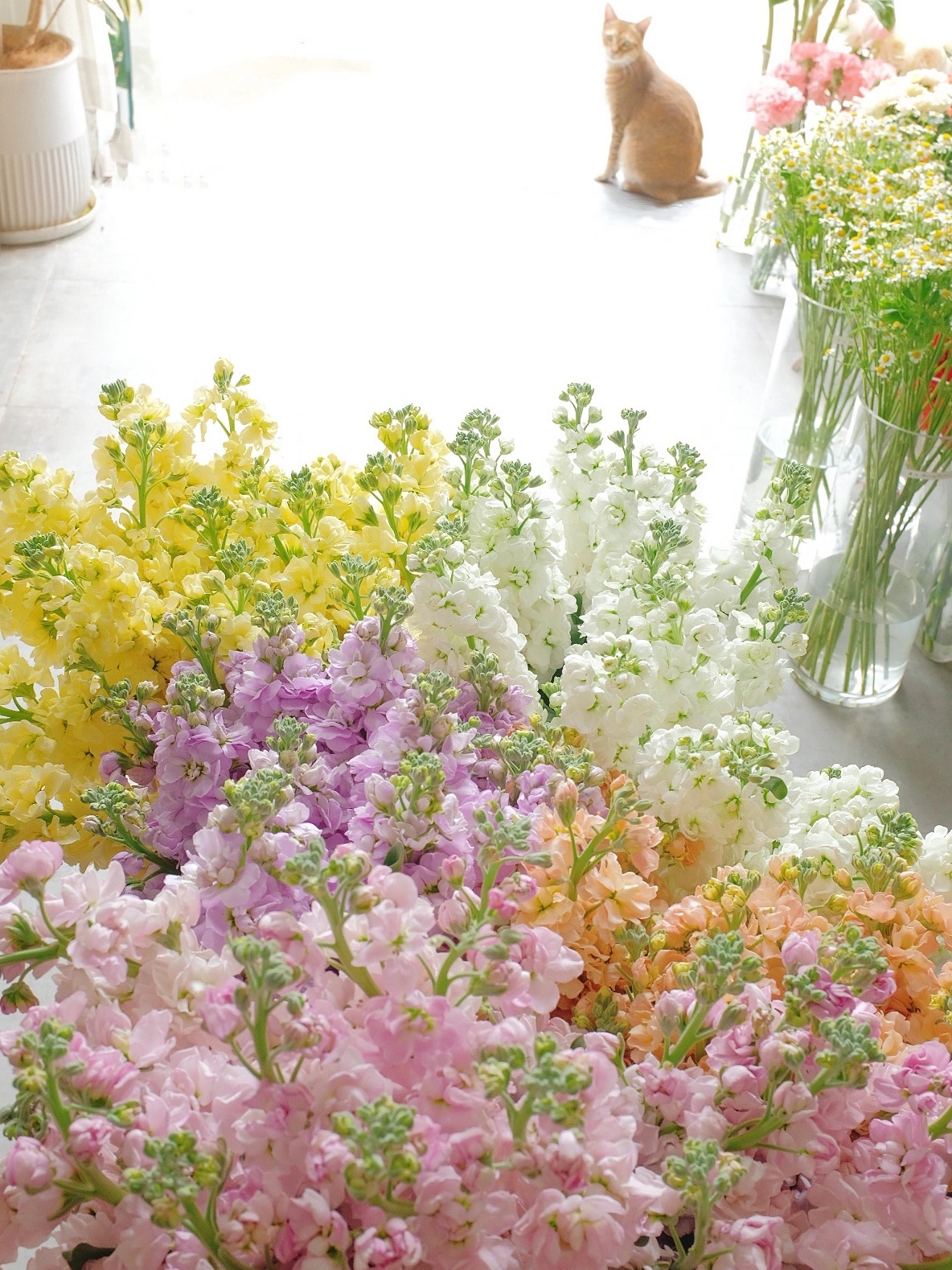 《她的花园》多头紫罗兰玫瑰朱小姐玫瑰蝴蝶兰马蹄莲抱抱桶