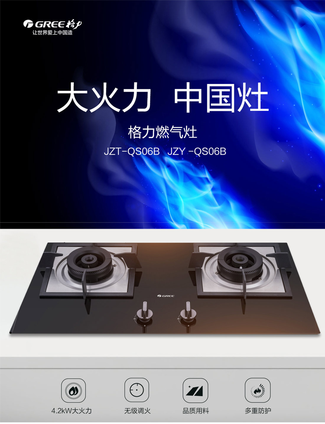 【预售】格力·液化气 燃气灶 JZY-QS06B/黑 钢化玻璃