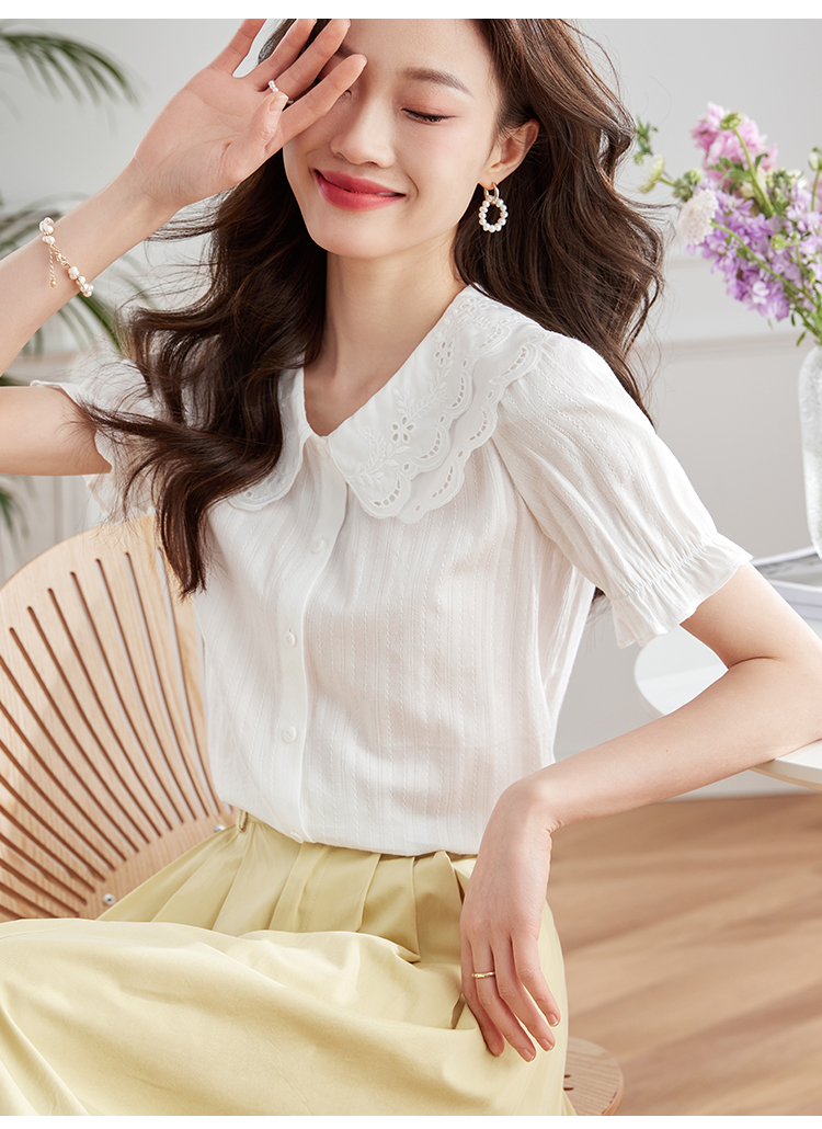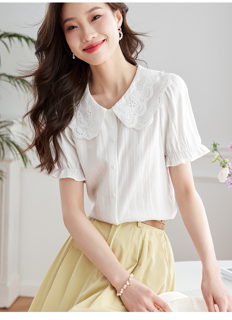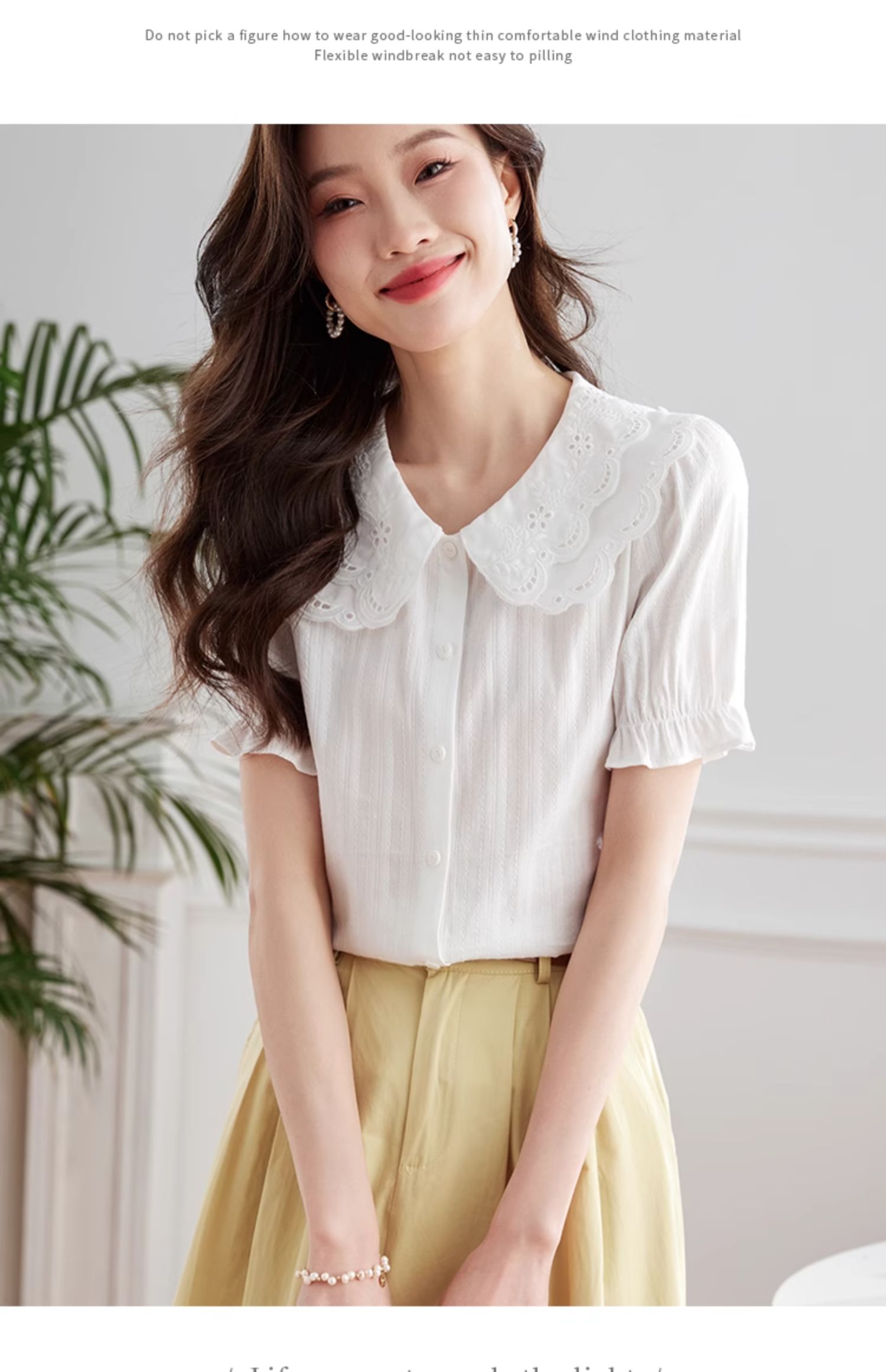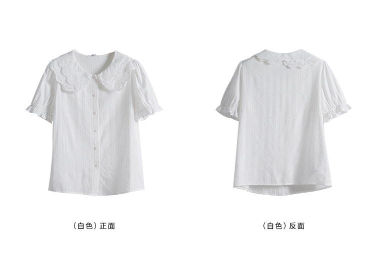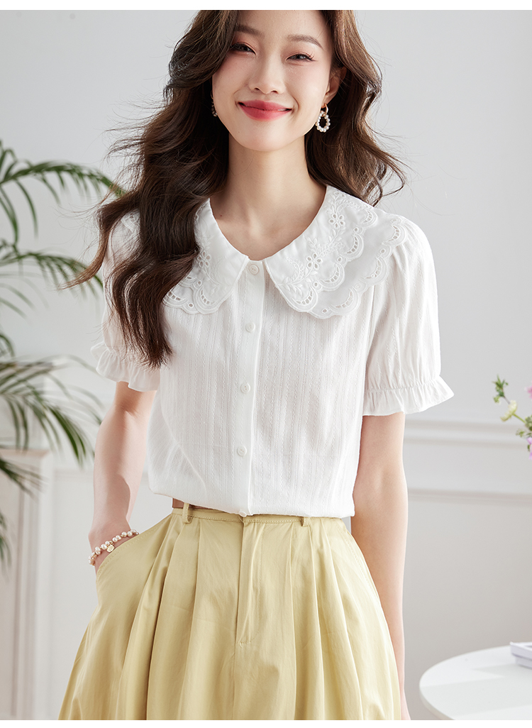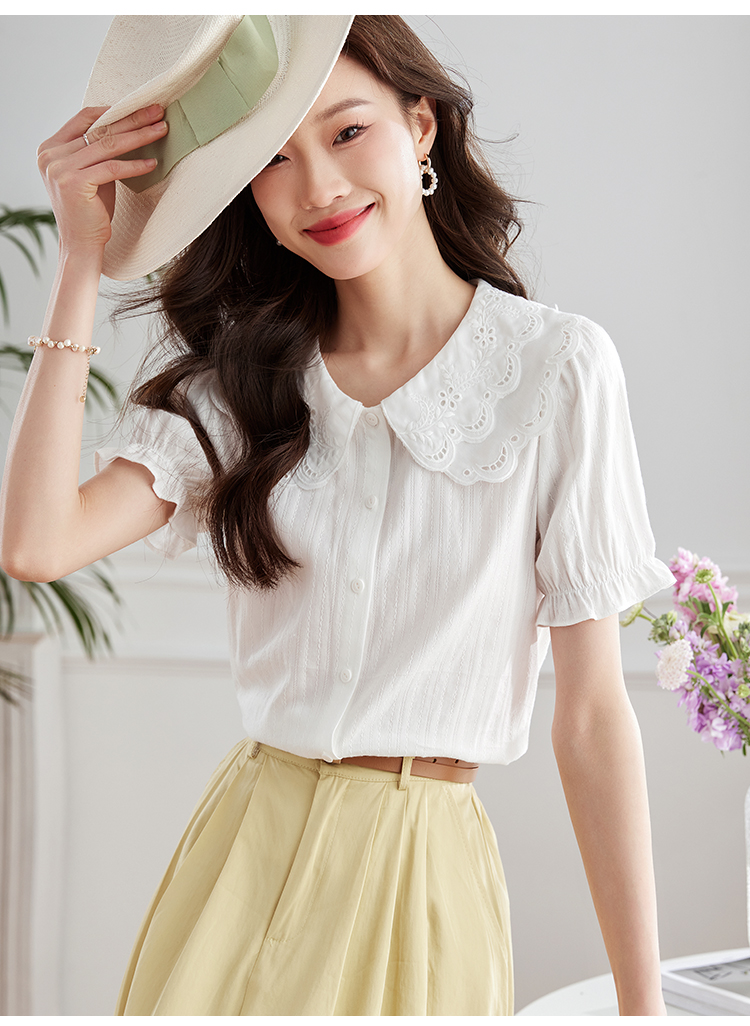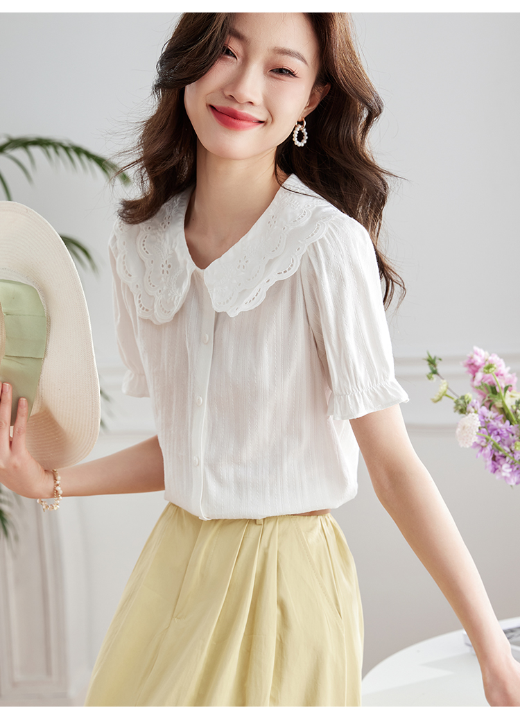 【专属特价】熙世界肌理感衬衫女夏2025新款法式小众镂空花边双层领泡泡袖上衣