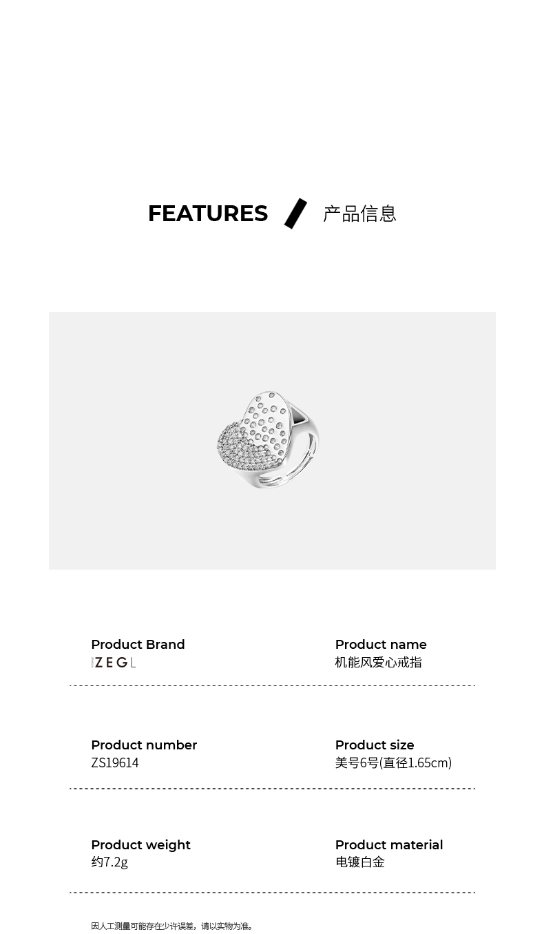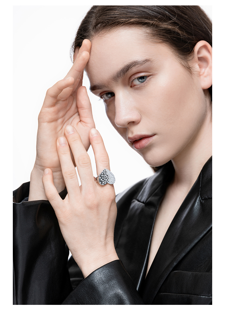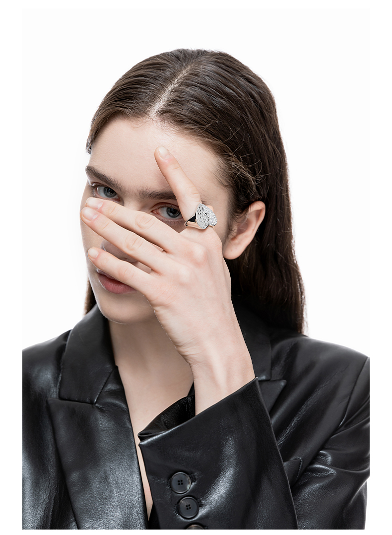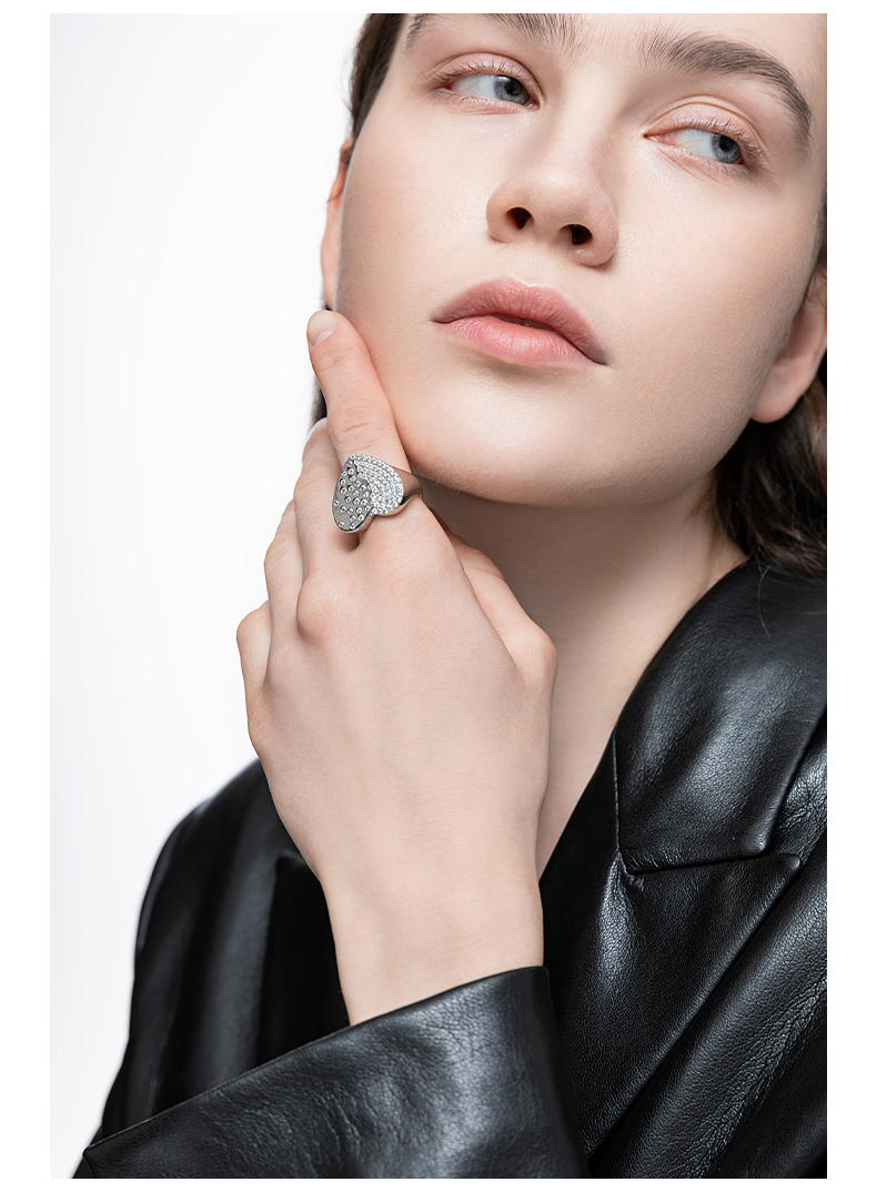 ZEGL宽面爱心戒指女ins小众设计简约气质指环时尚个性网红食指戒
