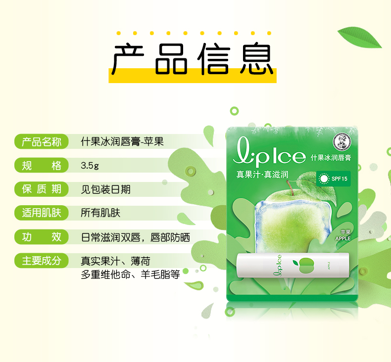 曼秀雷敦什果冰润唇膏苹果保湿滋润持久补水护唇3.5g/支
