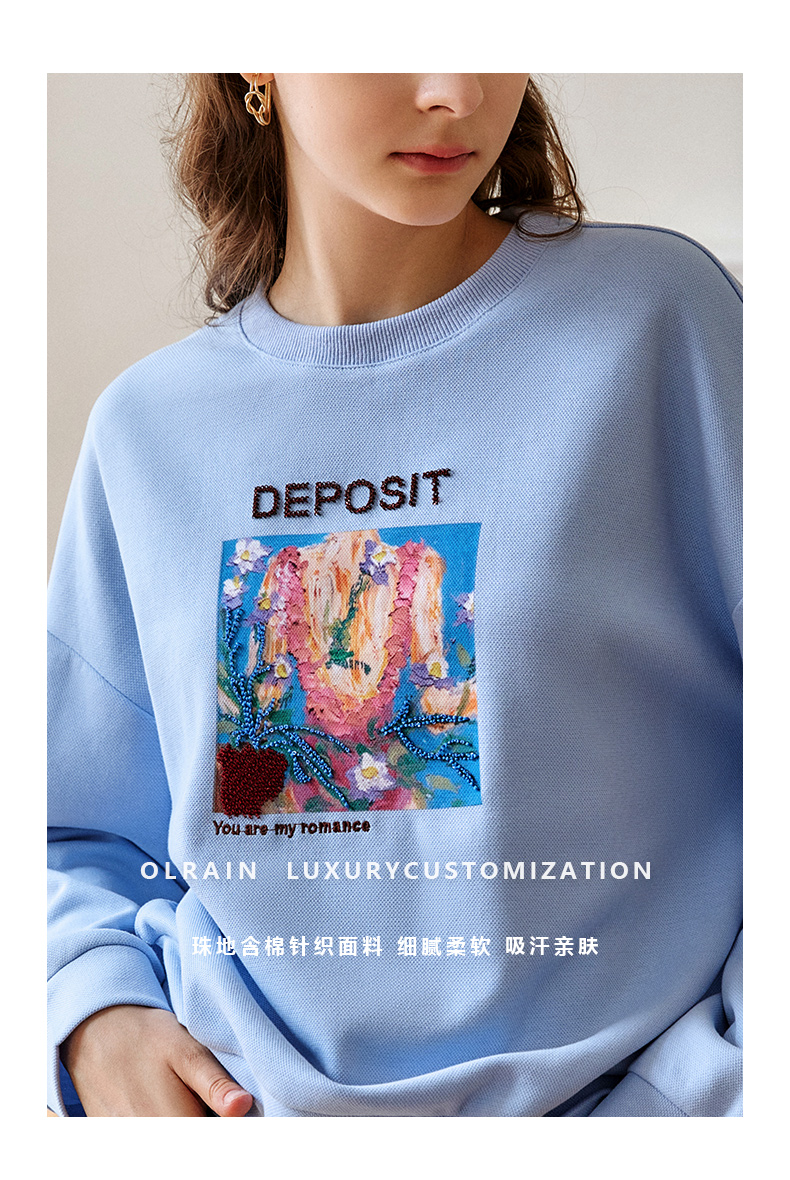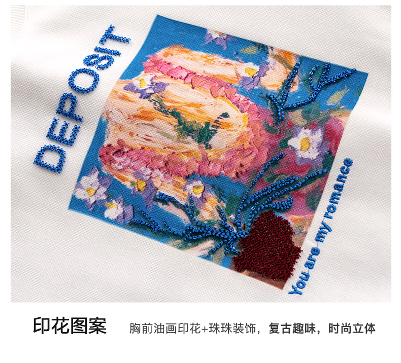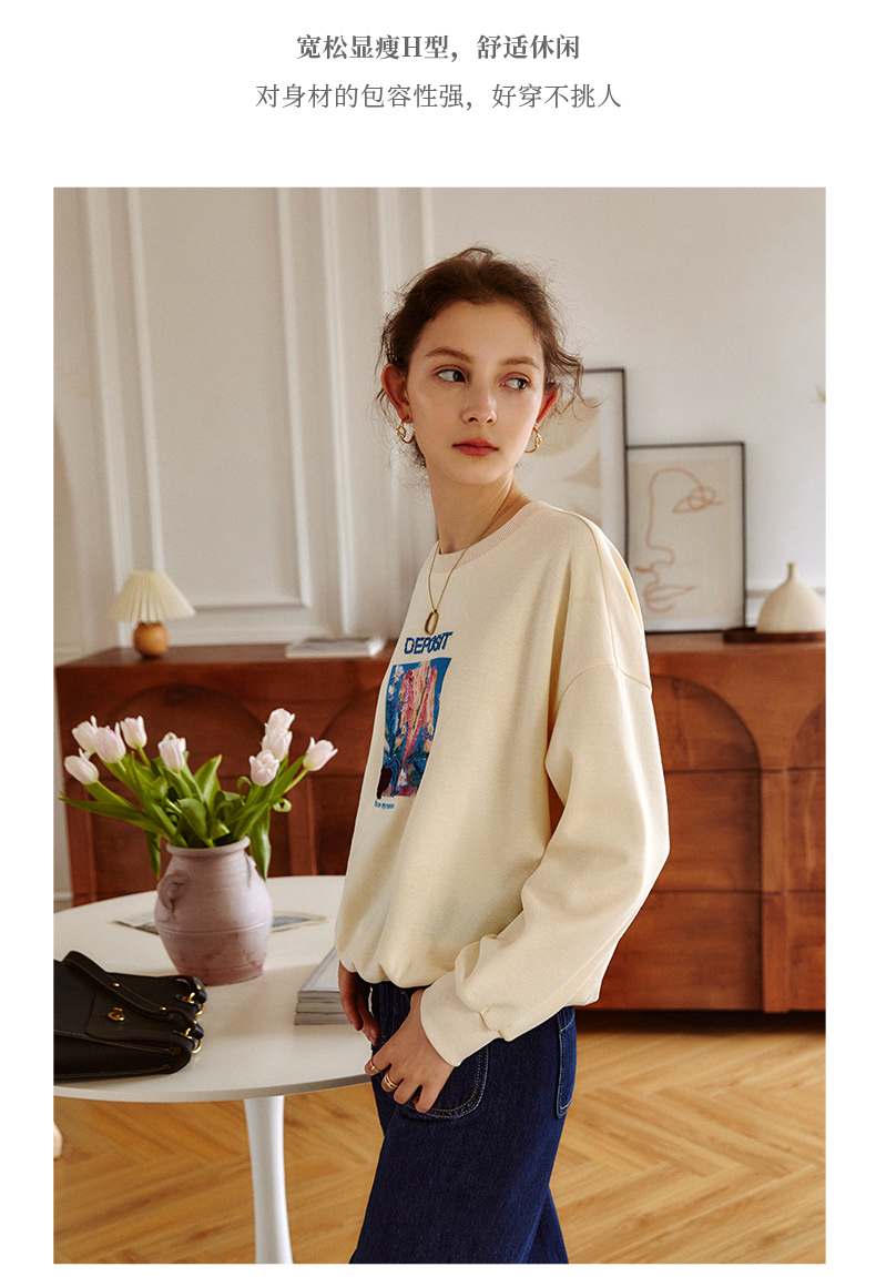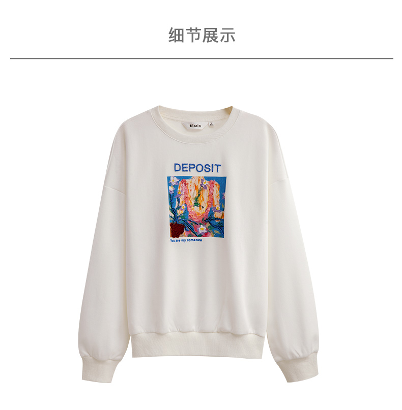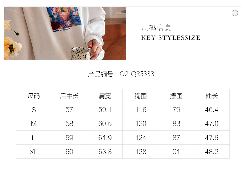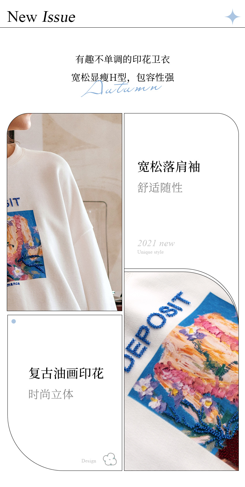 欧芮儿白色卫衣女2021年新款圆领宽松设计感ins潮套头上衣