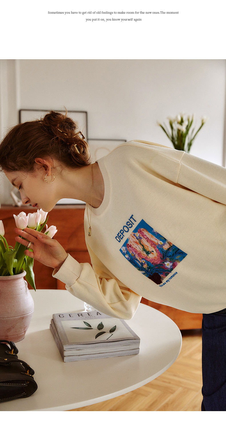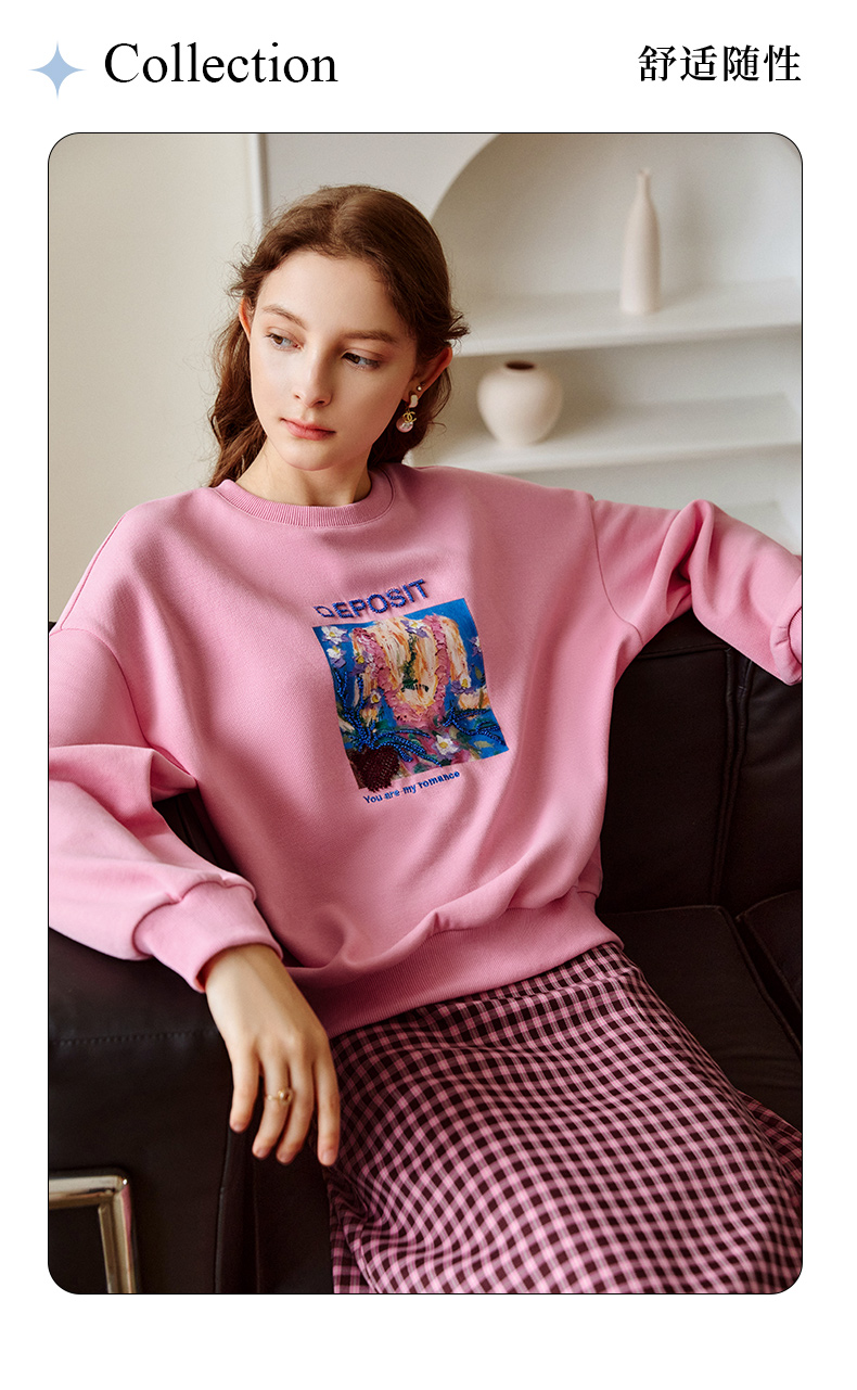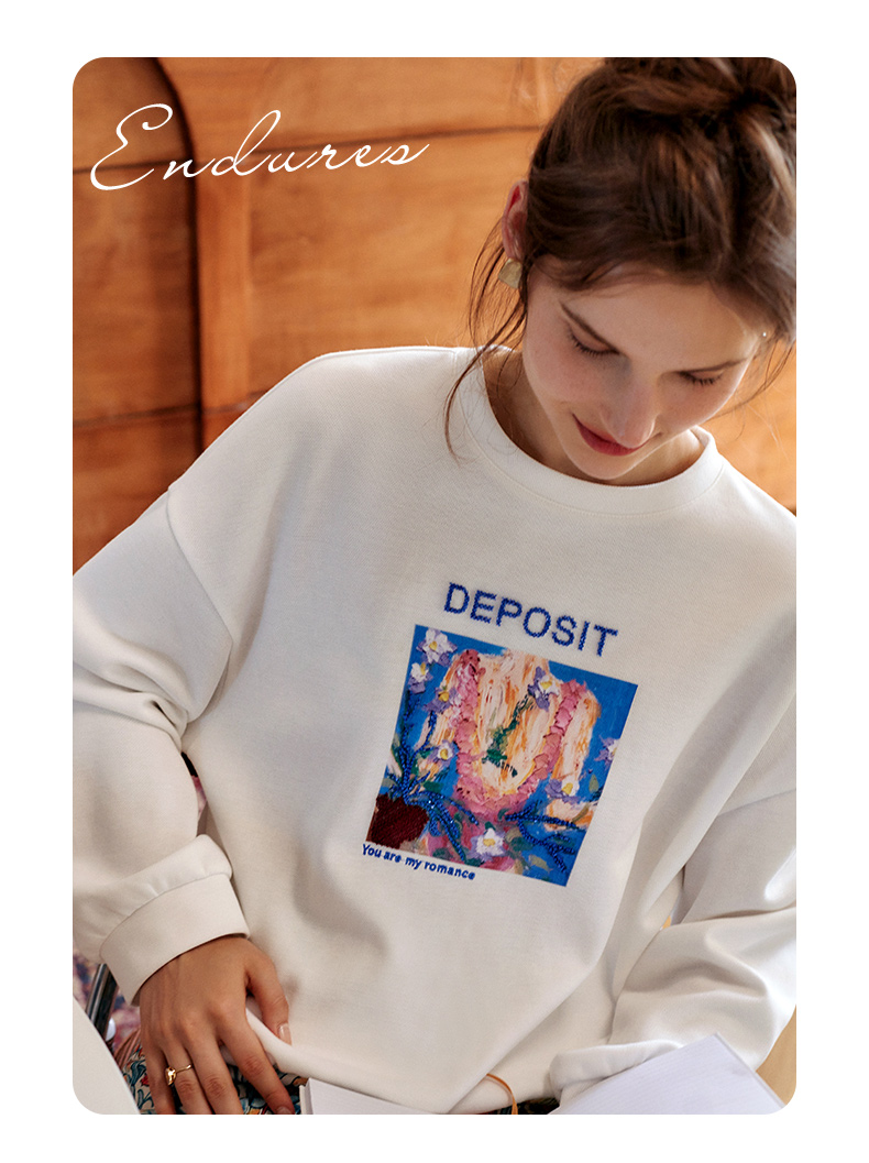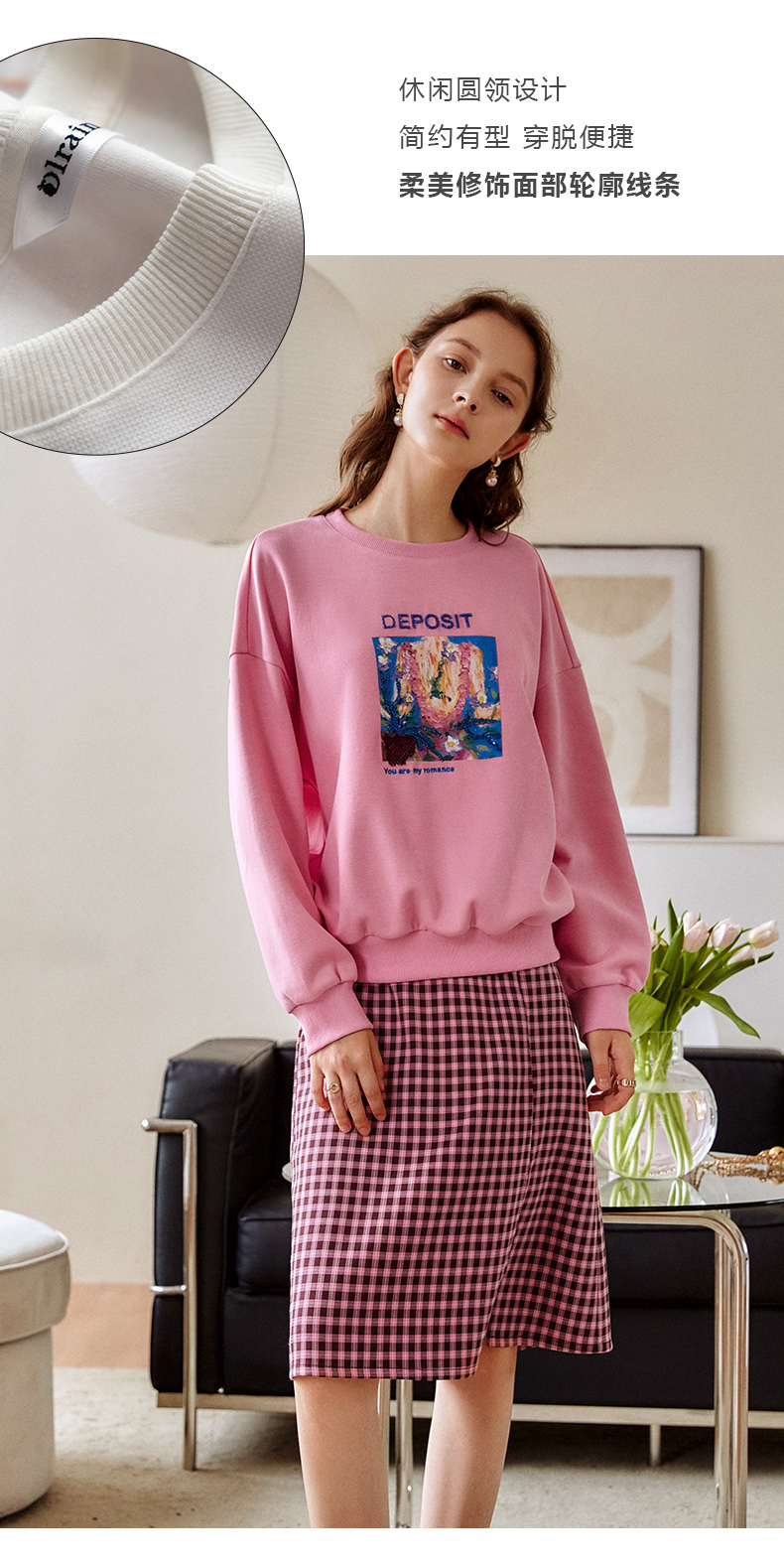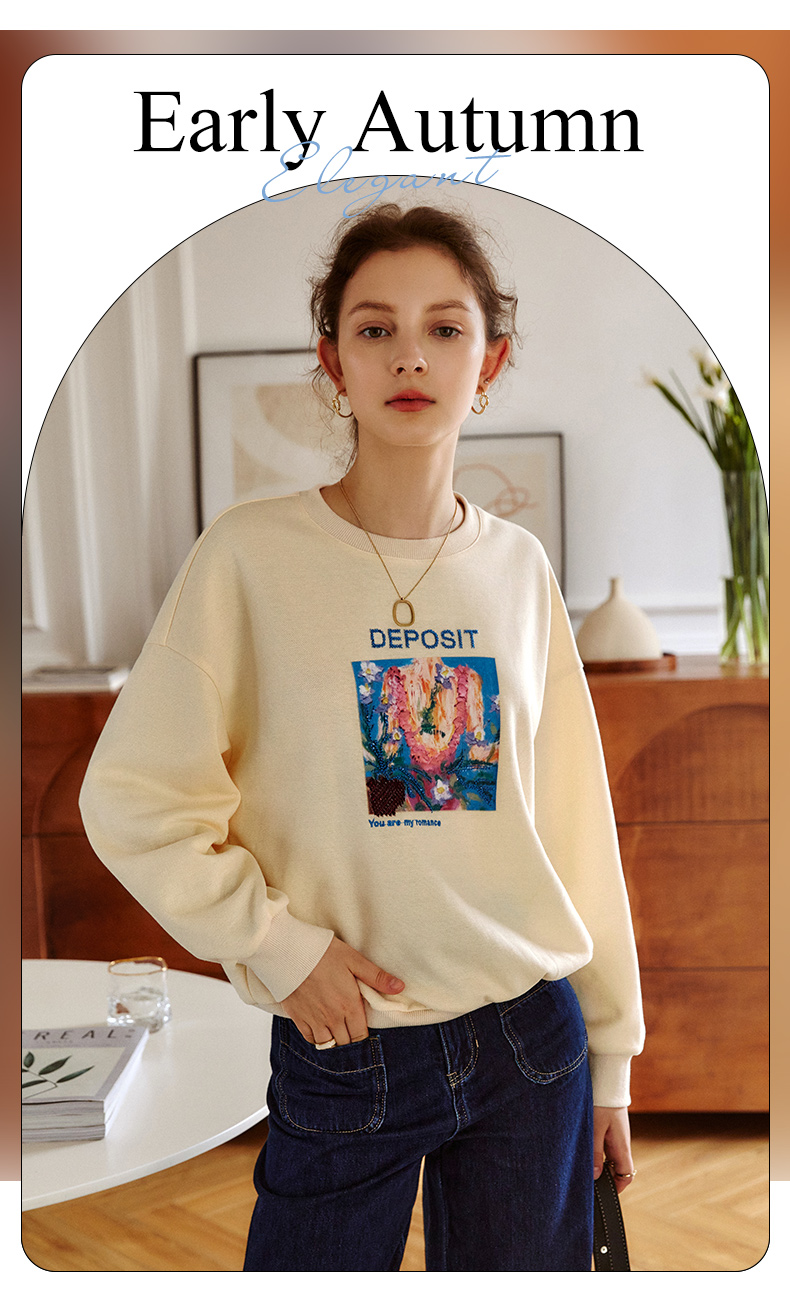 欧芮儿白色卫衣女2021年新款圆领宽松设计感ins潮套头上衣