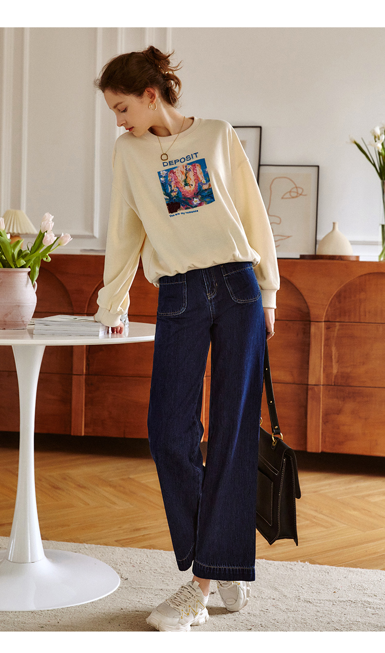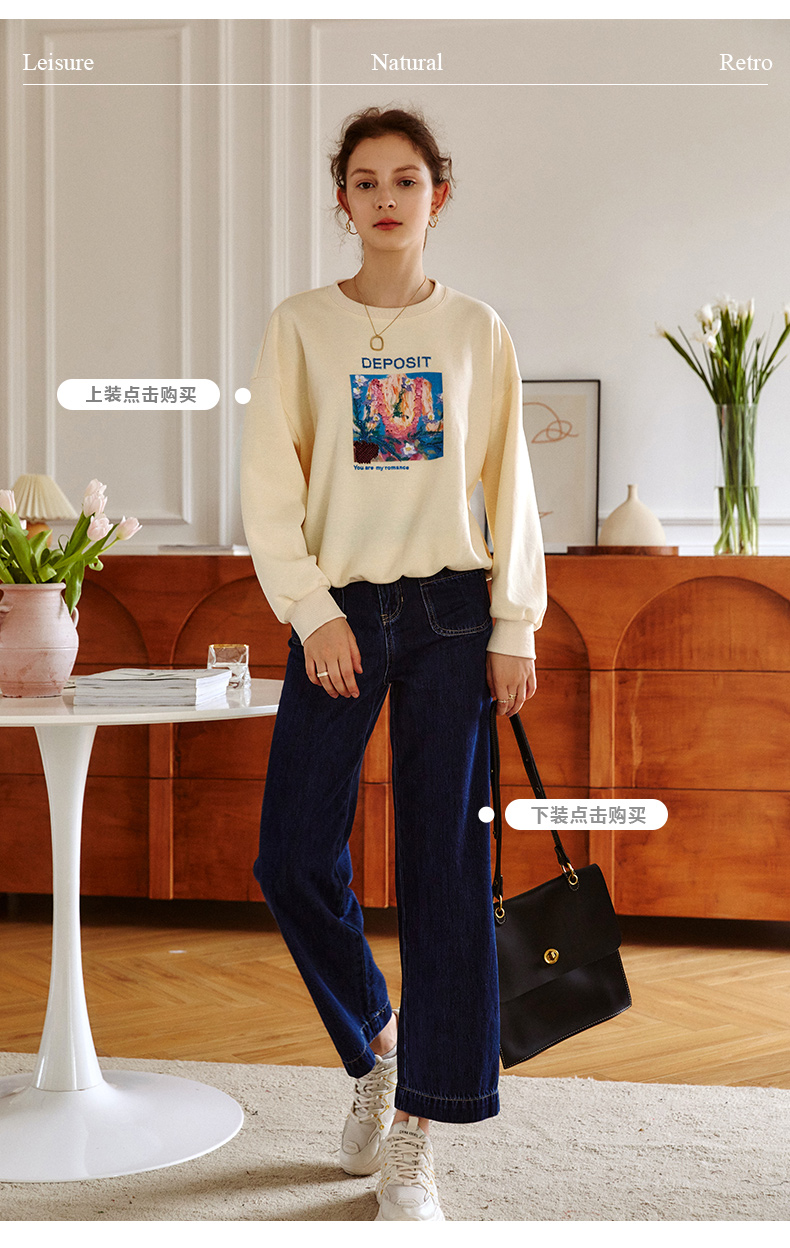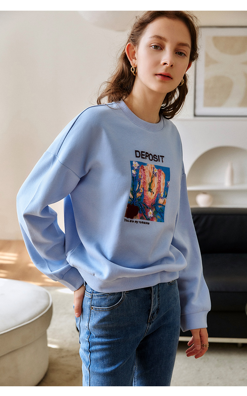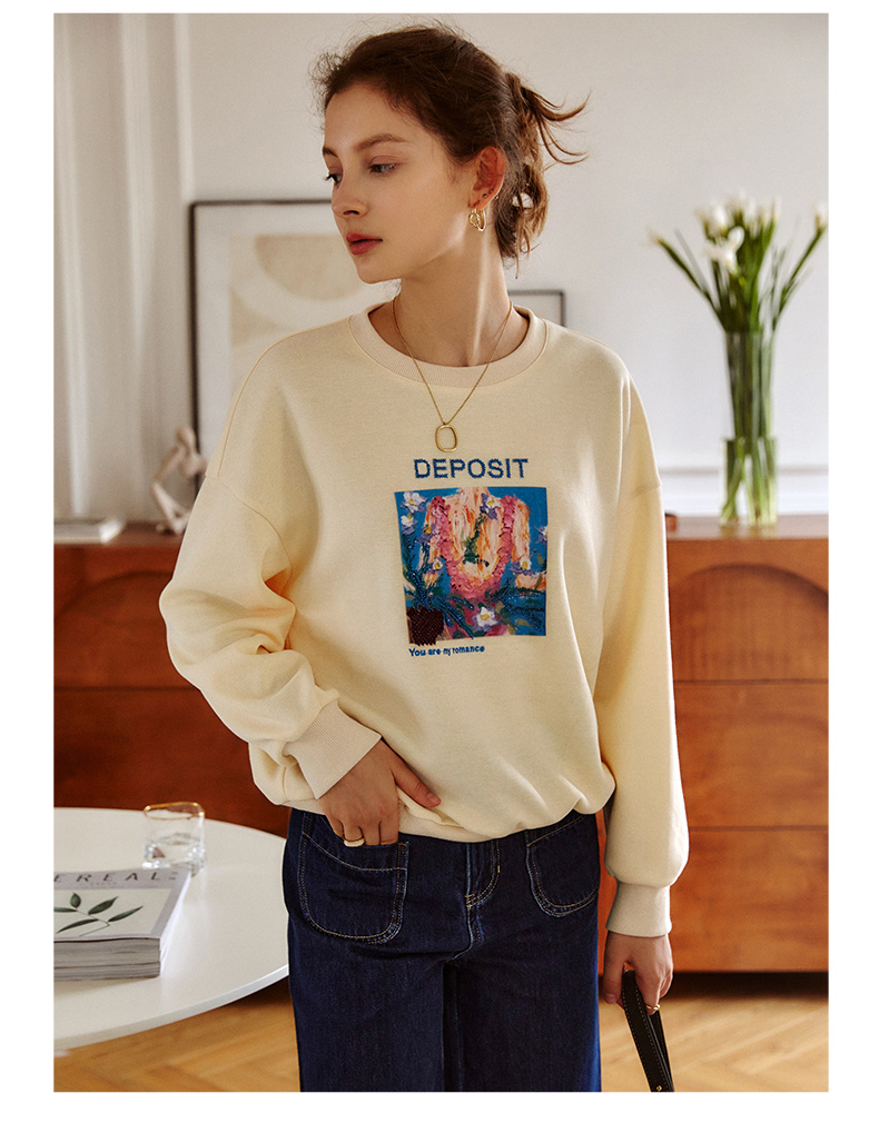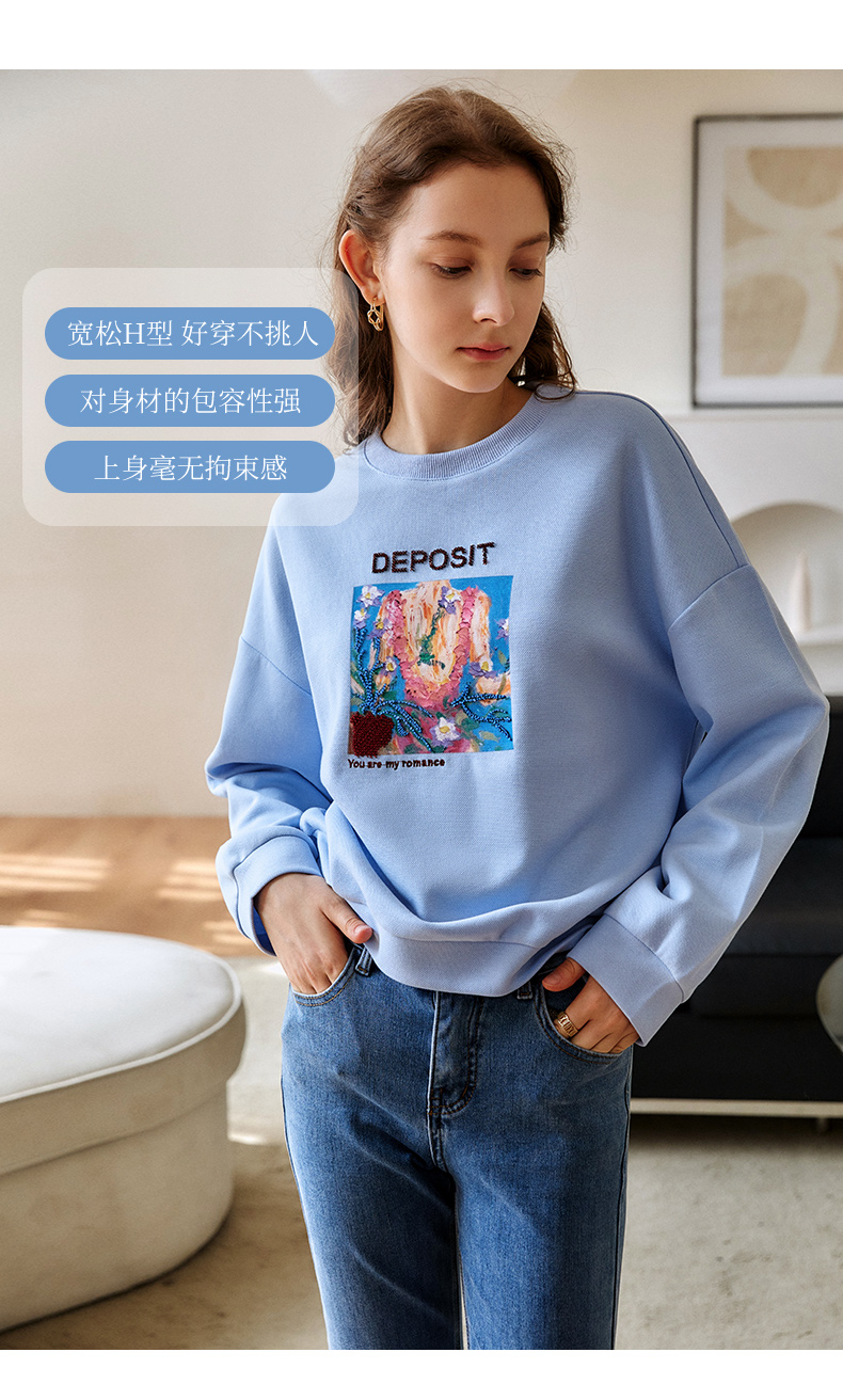 欧芮儿白色卫衣女2021年新款圆领宽松设计感ins潮套头上衣