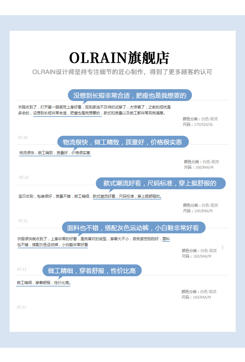 “精致”是欧芮儿olrain品牌文化的核心,欧芮儿认为,精致的女人,不但要外在动人,更要内在迷人,内外兼修,有魅力、有气质、有内涵,自信而不自傲,优雅而不矫揉,自有万种风情而不轻浮,更不故作矜持。